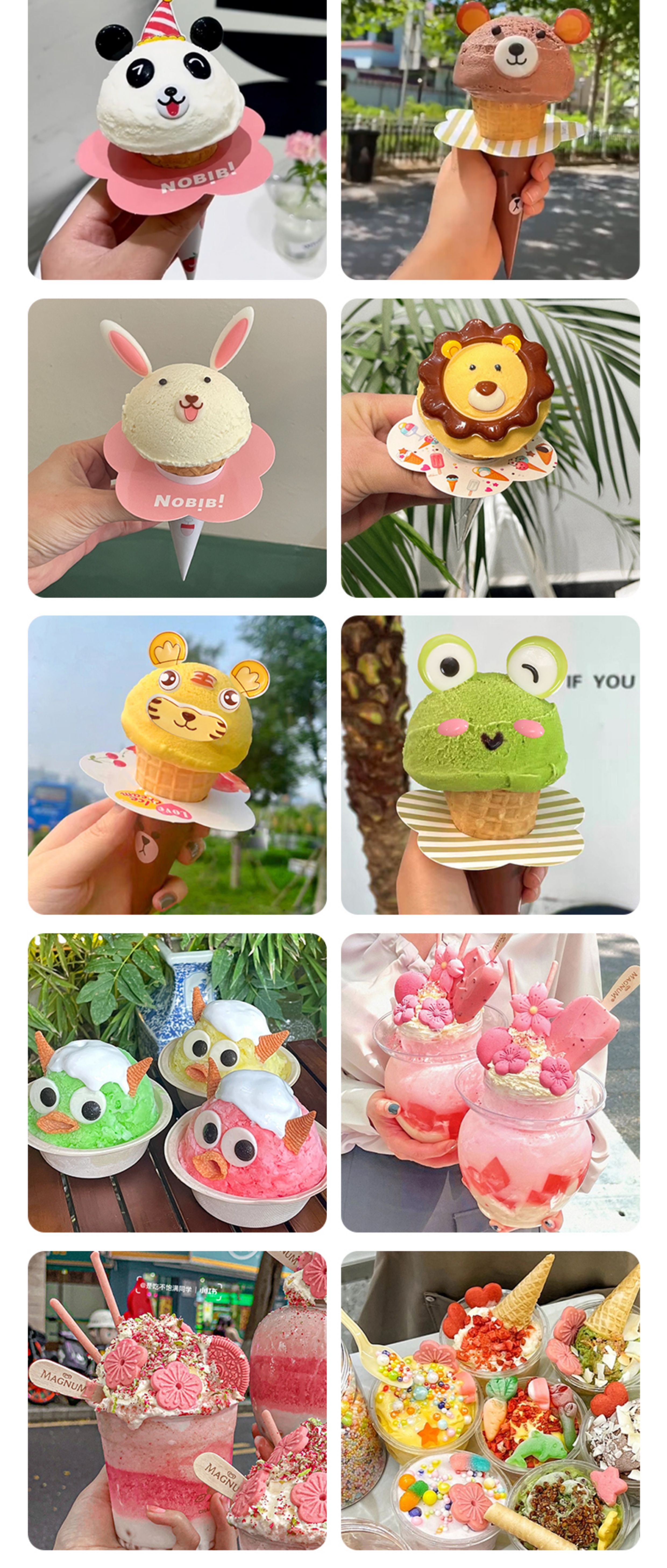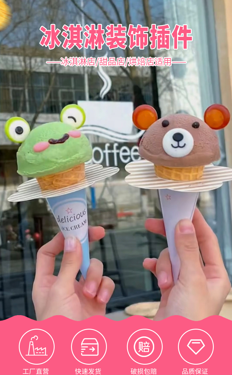 小动物冰淇淋巧克力蛋糕装饰饼干网红卡通插件夏季冰激凌甜品摆件