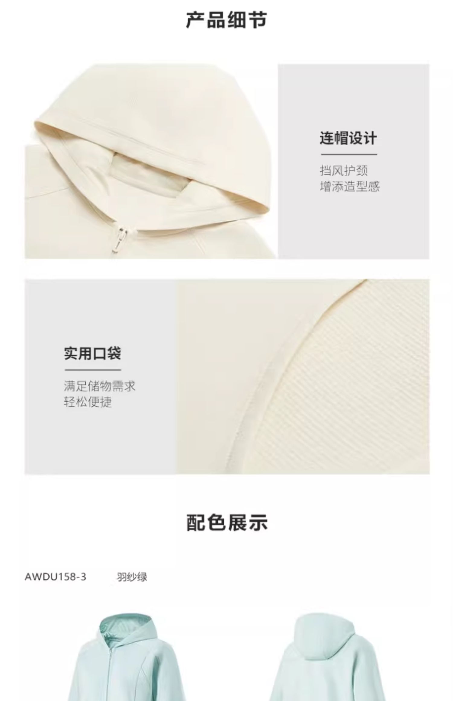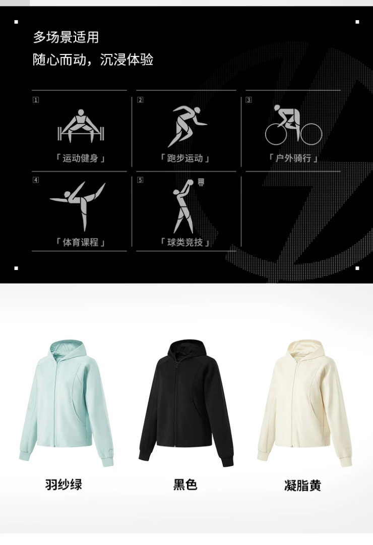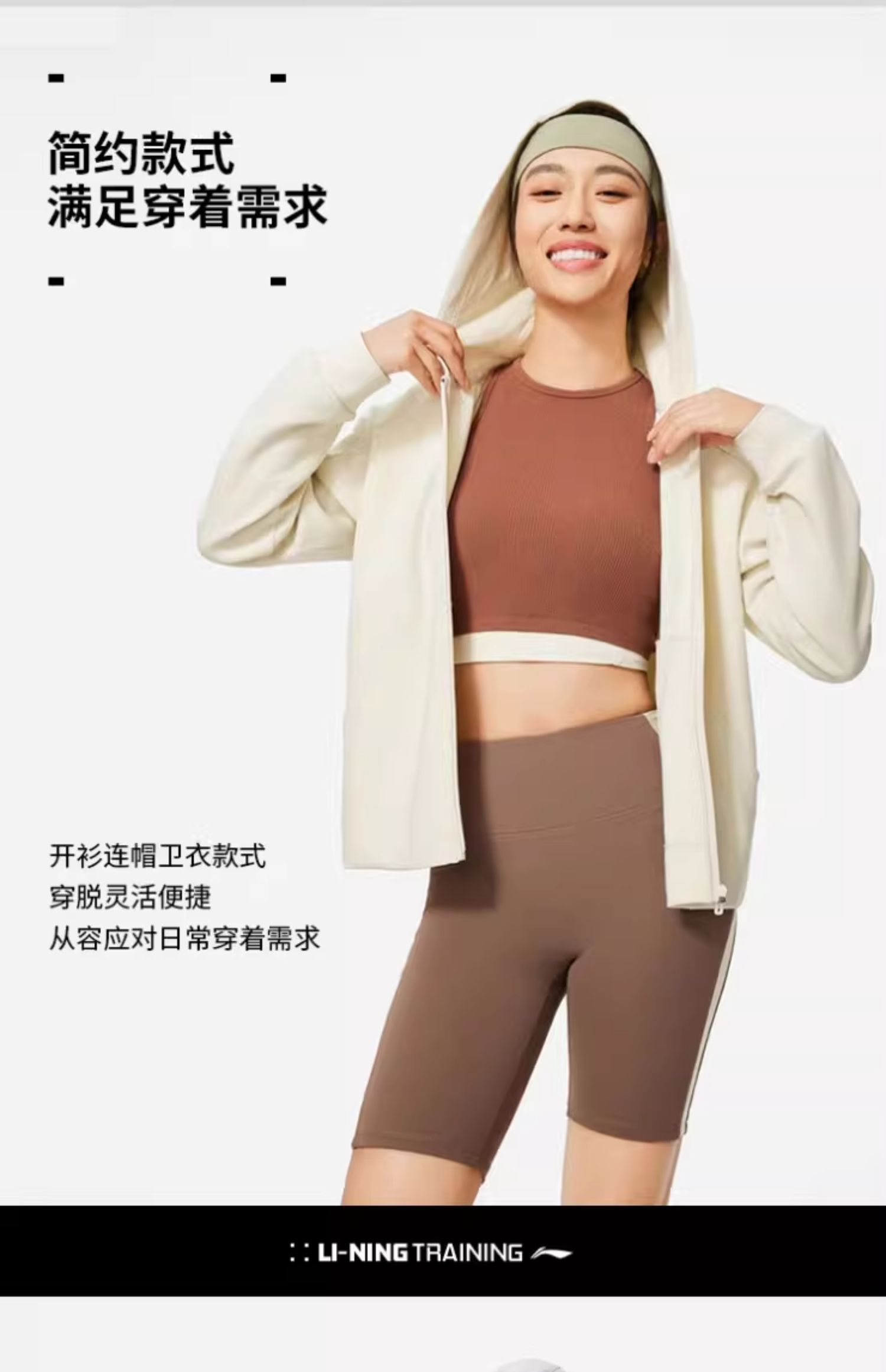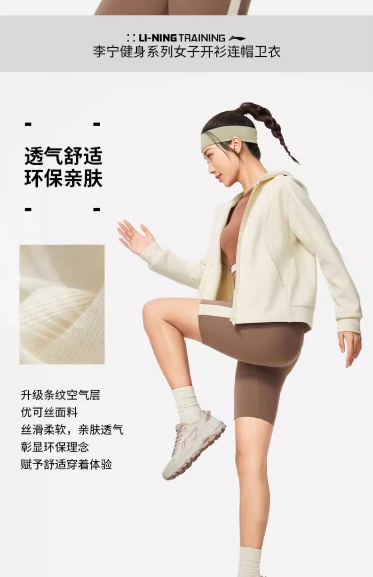 李宁外套女子2025春秋新款健身系列开衫舒适运动连帽卫衣AWDU158