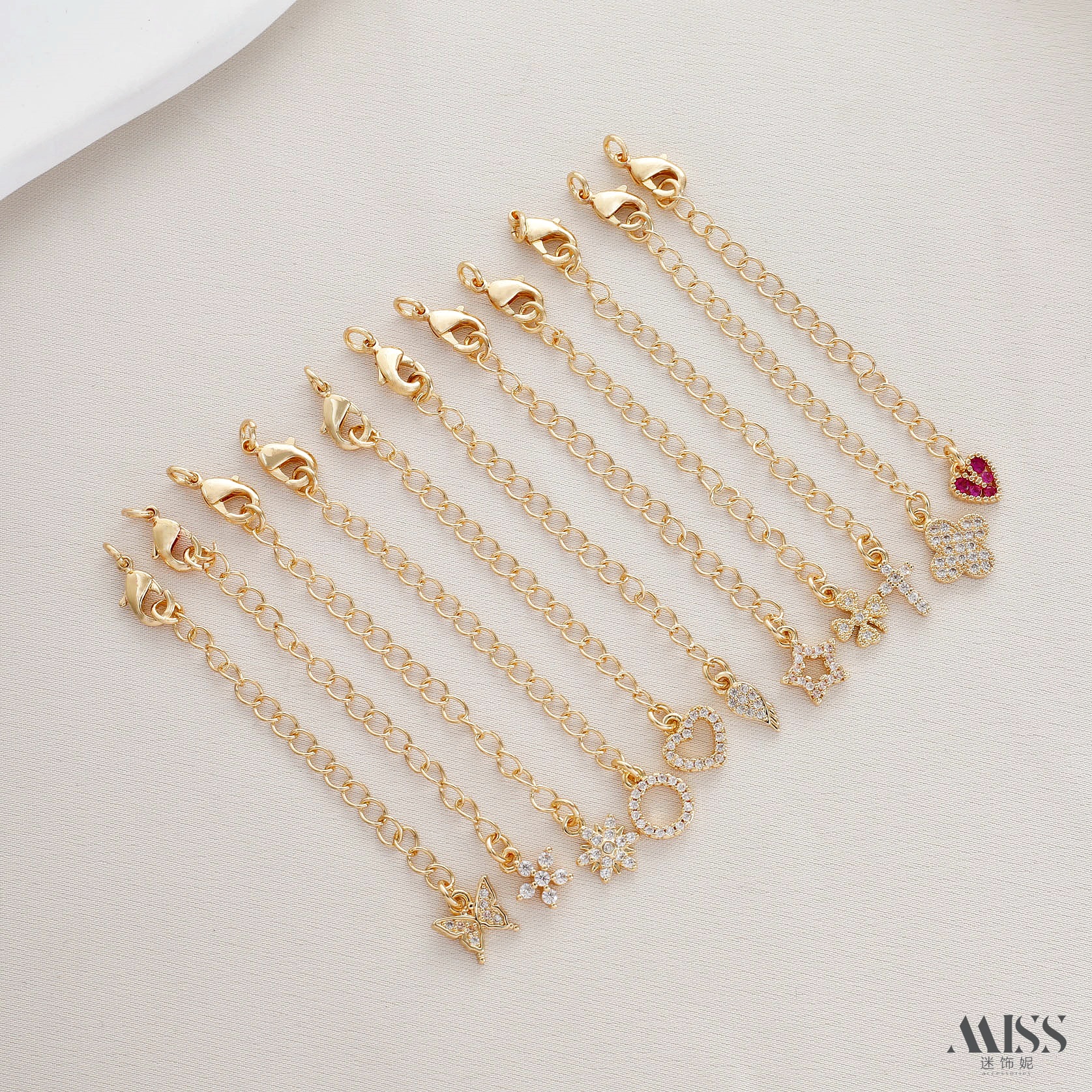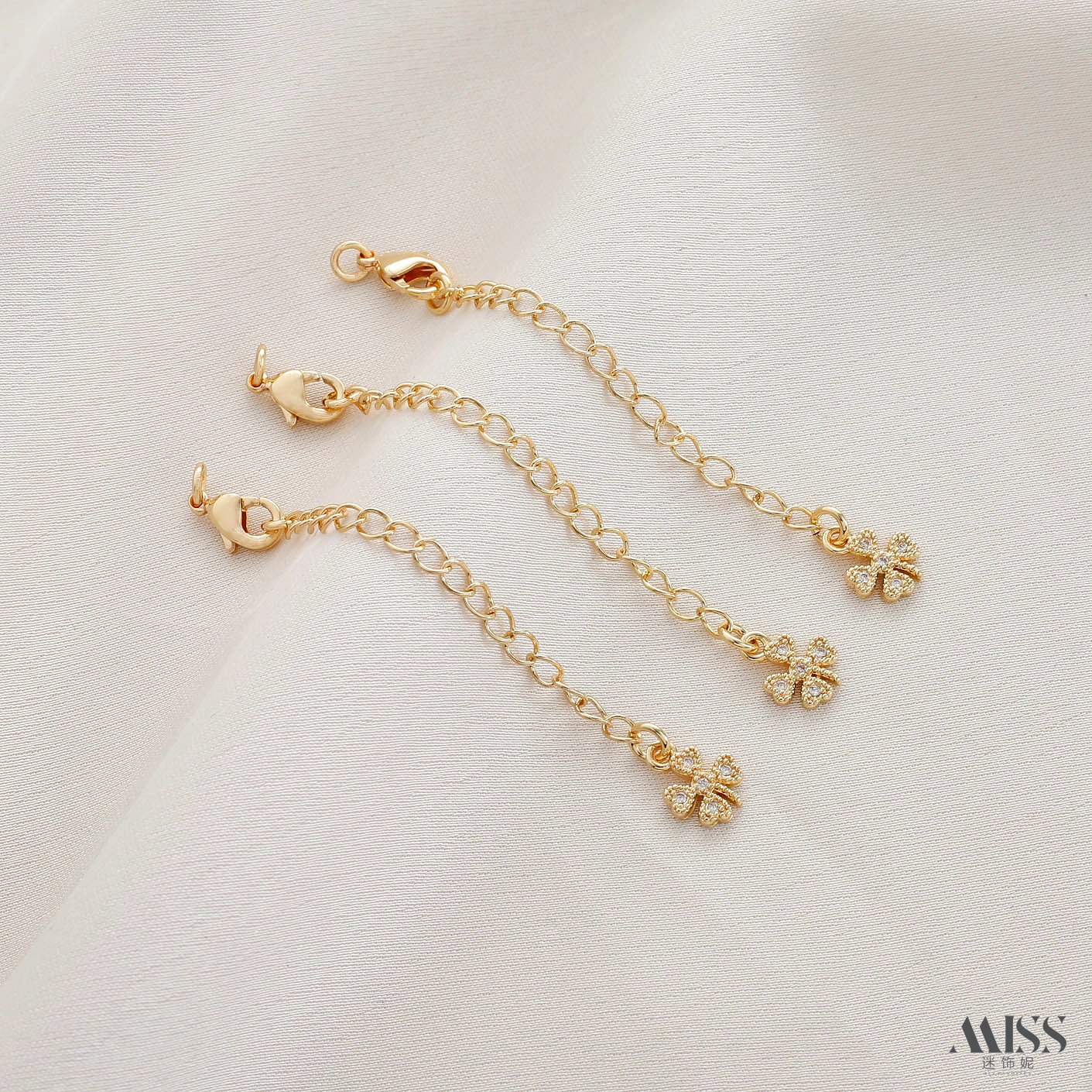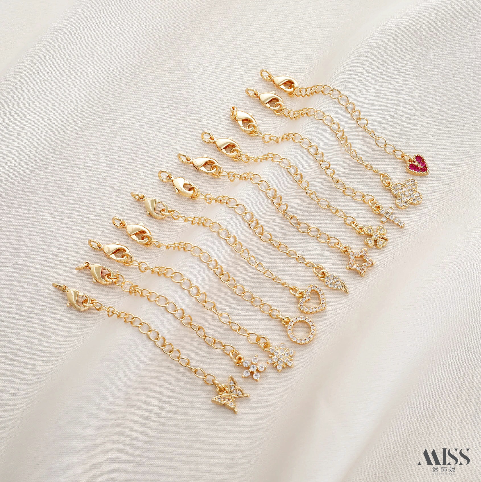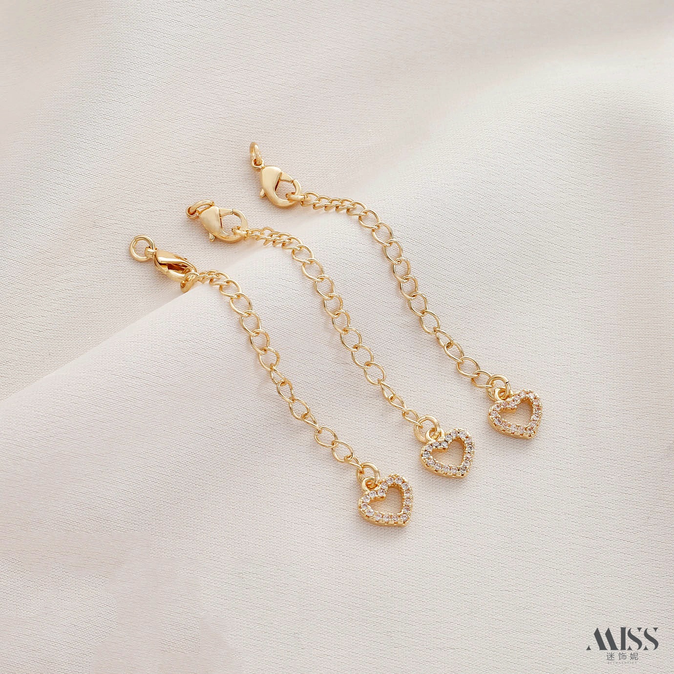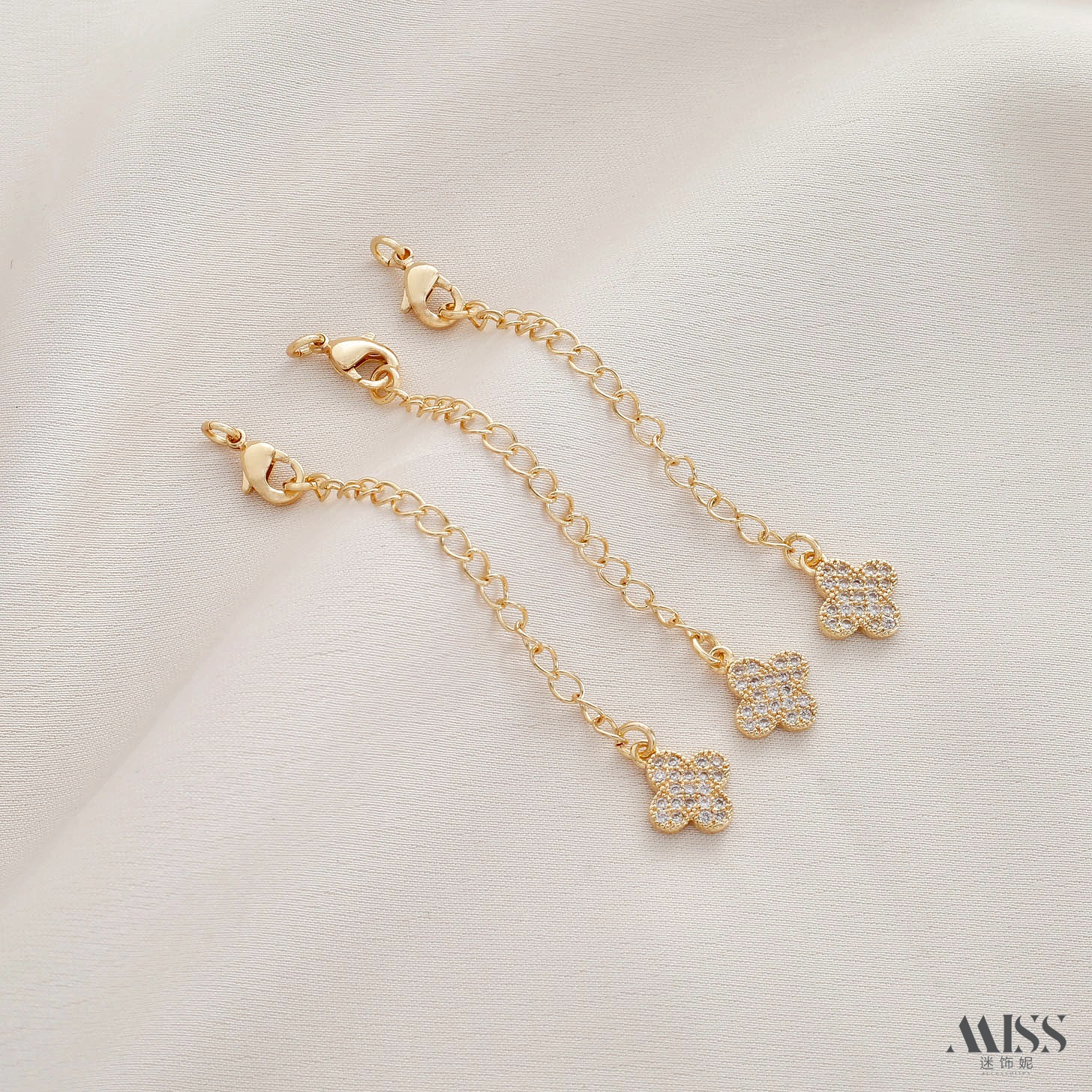 14K包金保色镶锆石桃心四叶草吊坠延长链尾链diy手链项链加长配件
