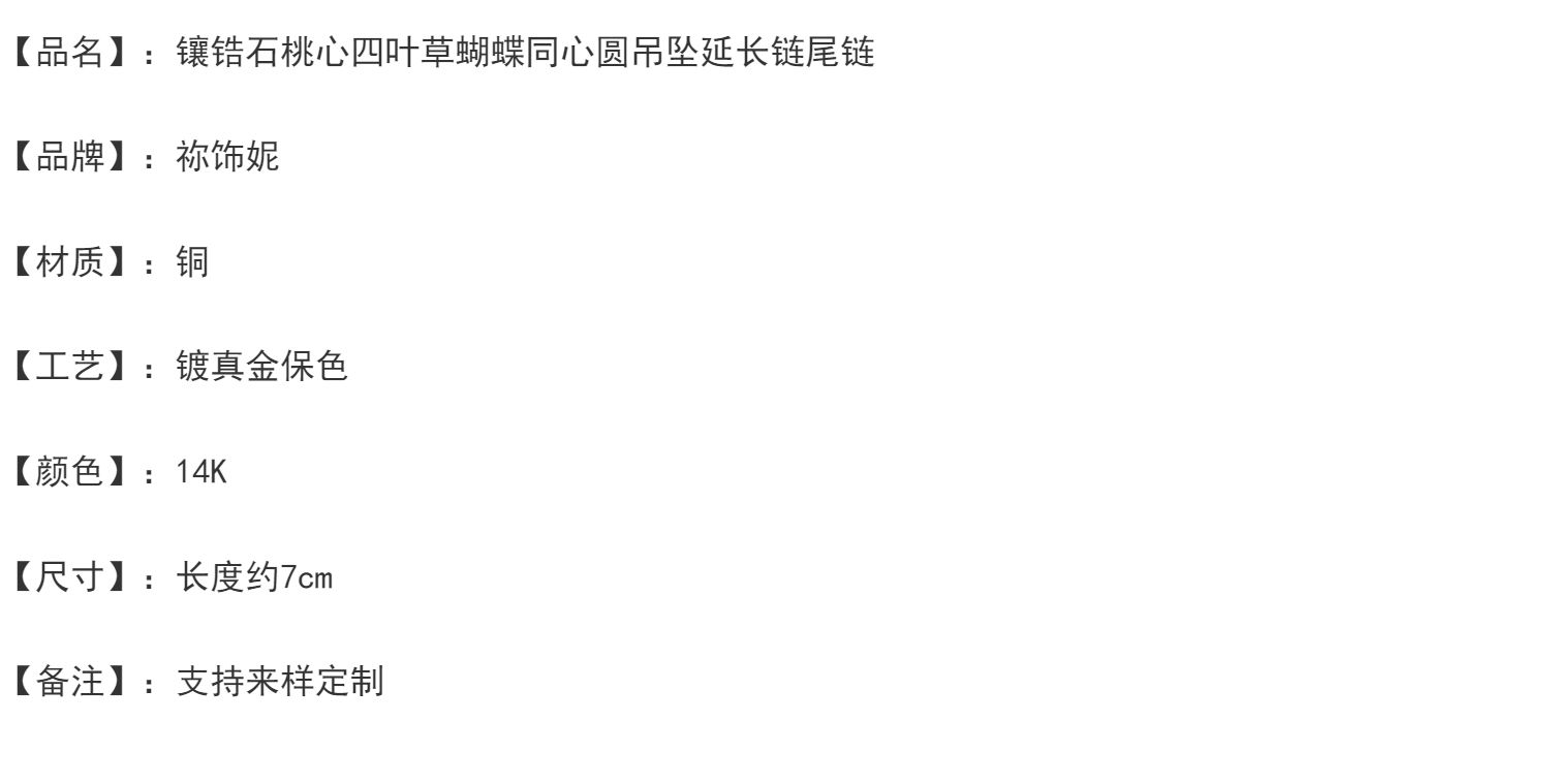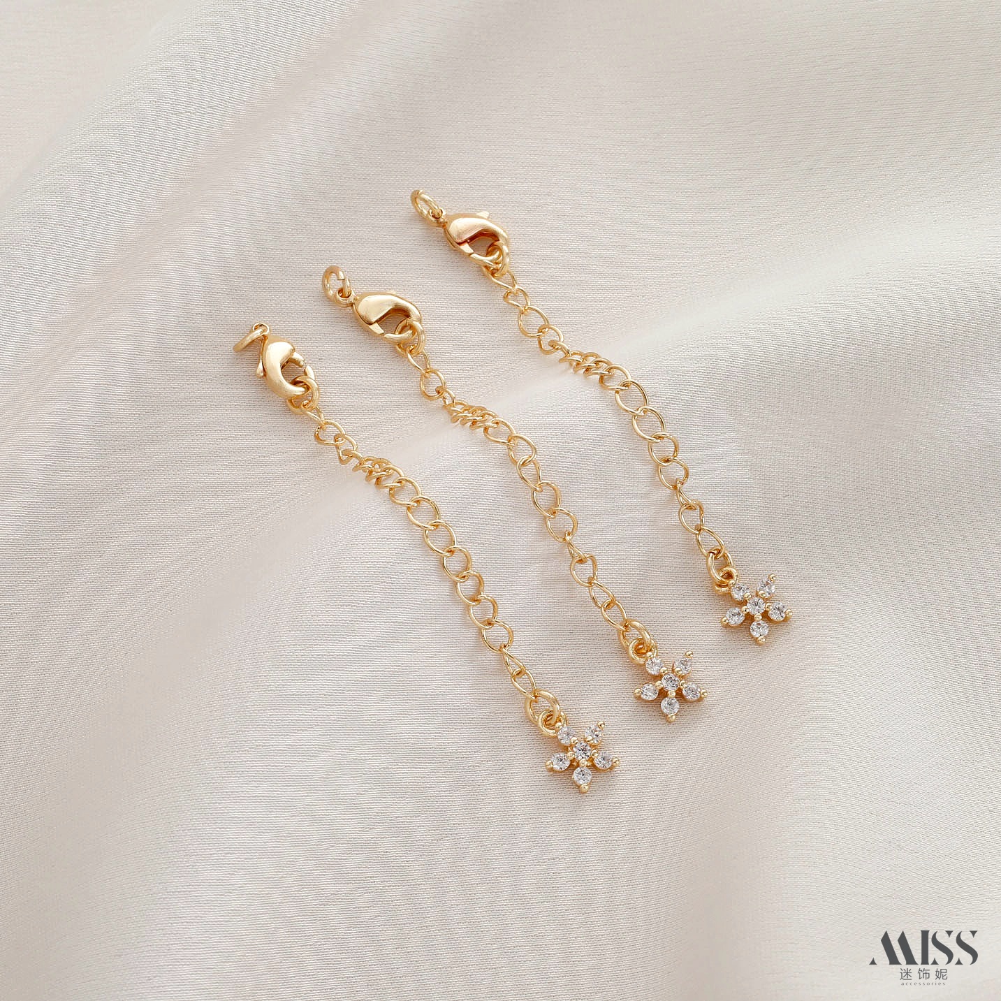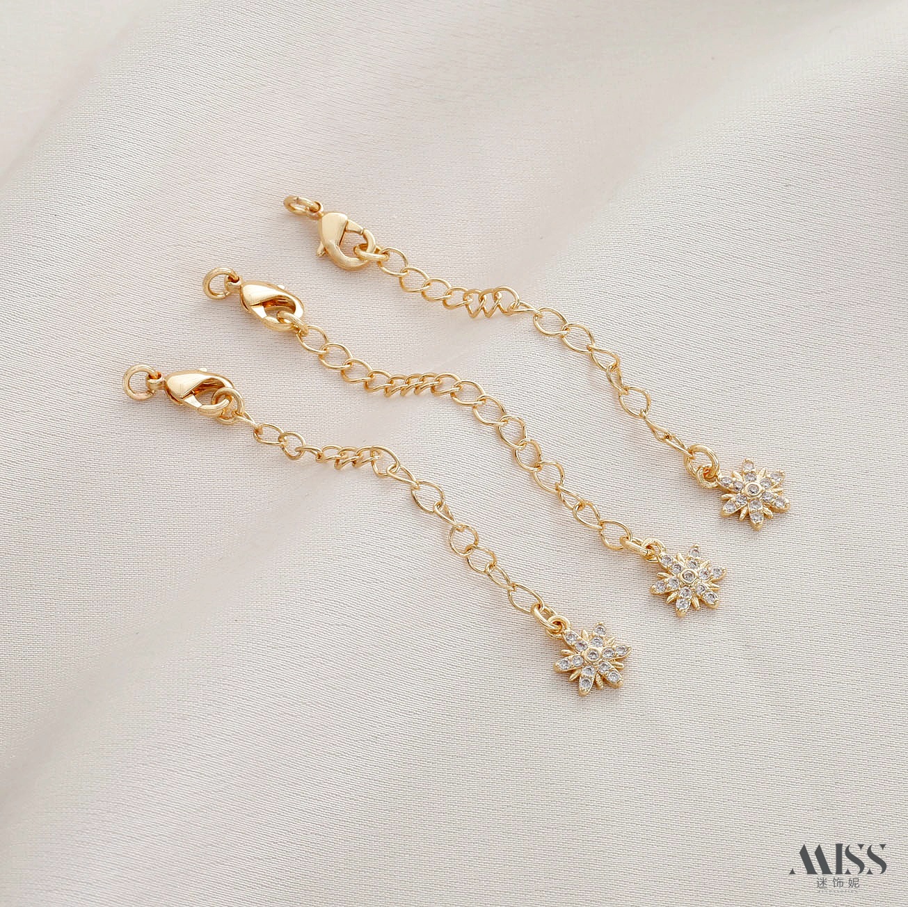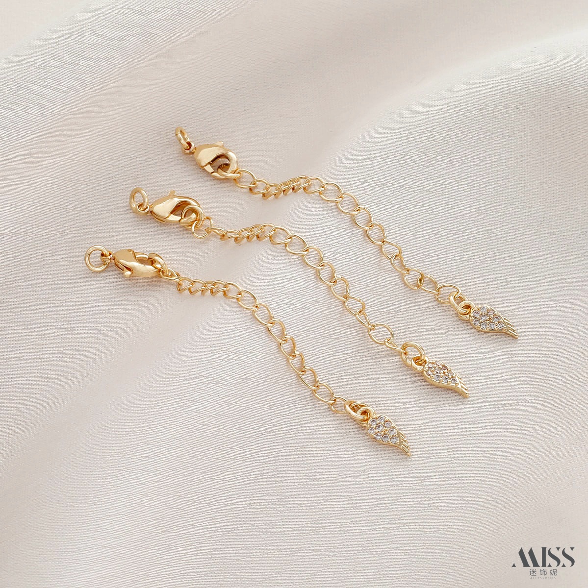 14K包金保色镶锆石桃心四叶草吊坠延长链尾链diy手链项链加长配件