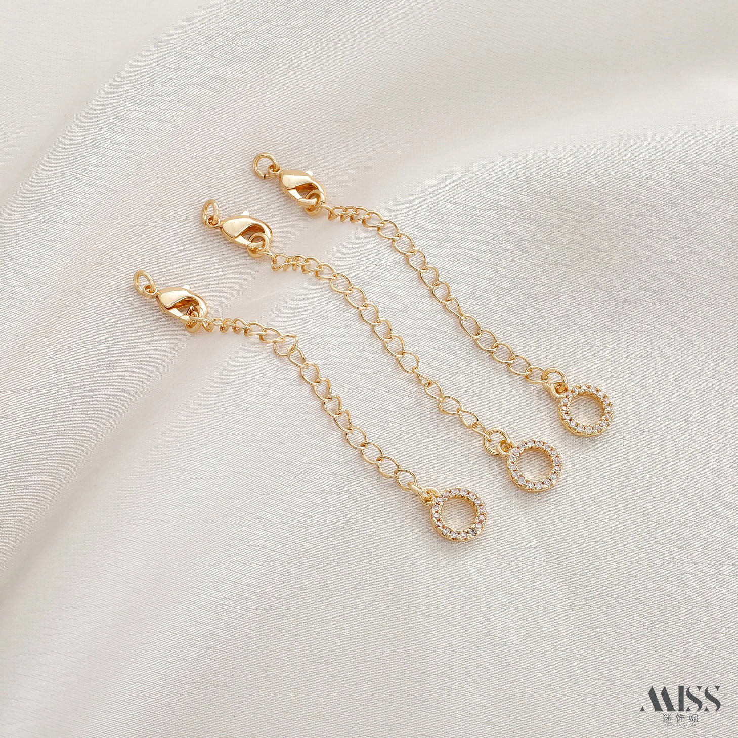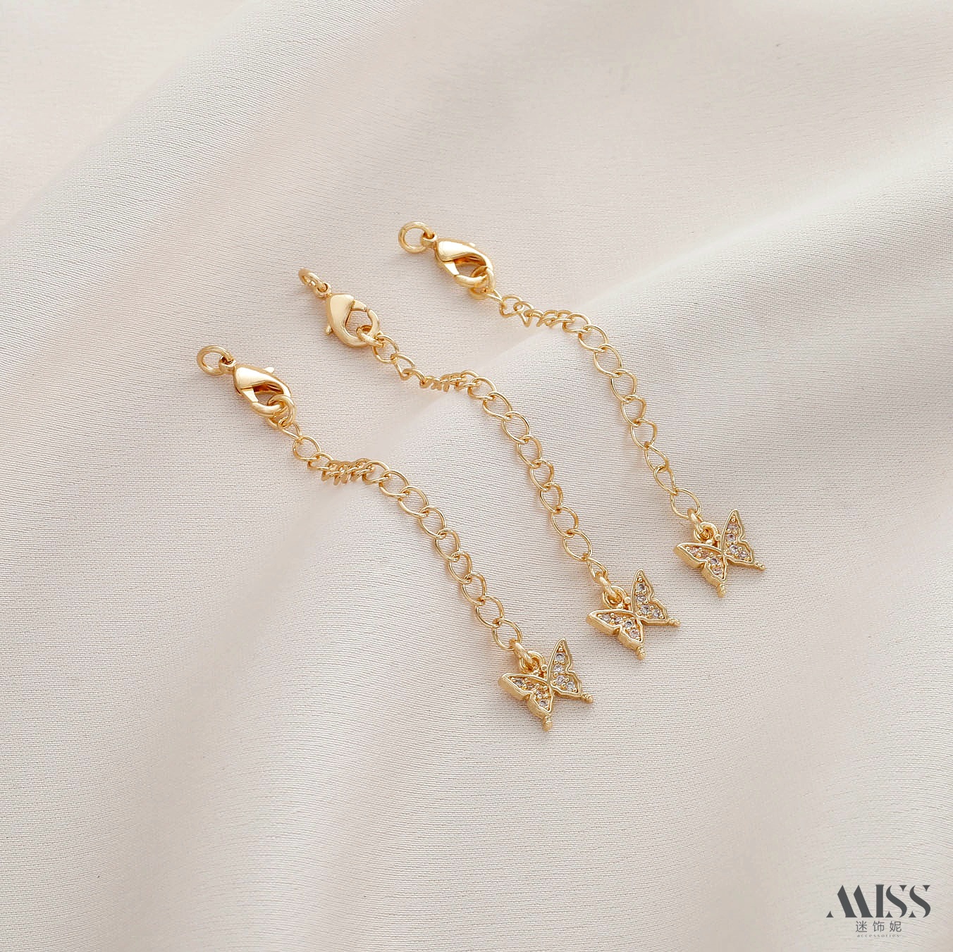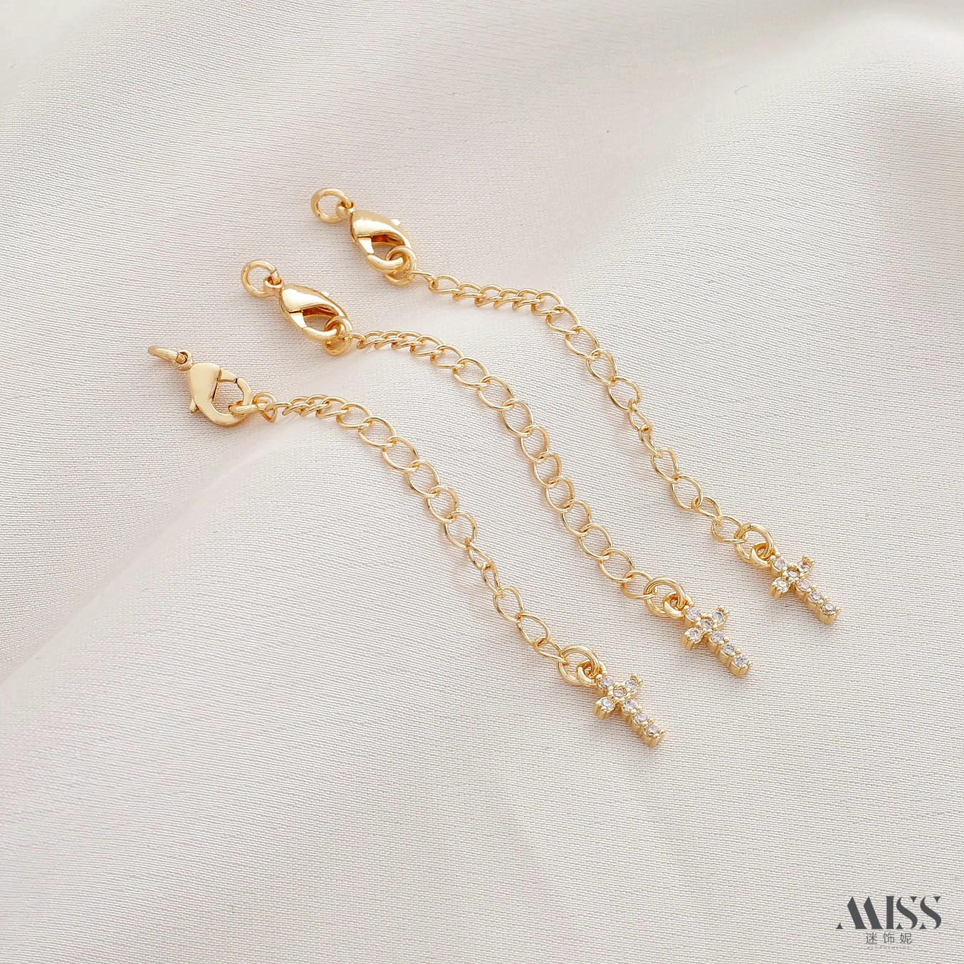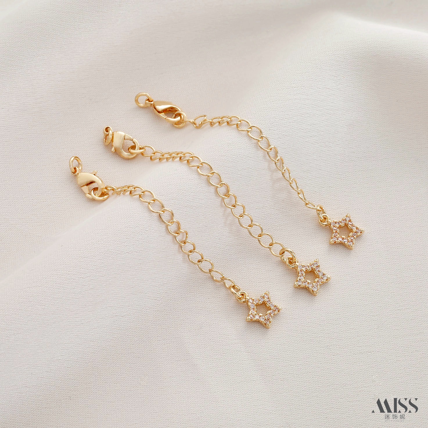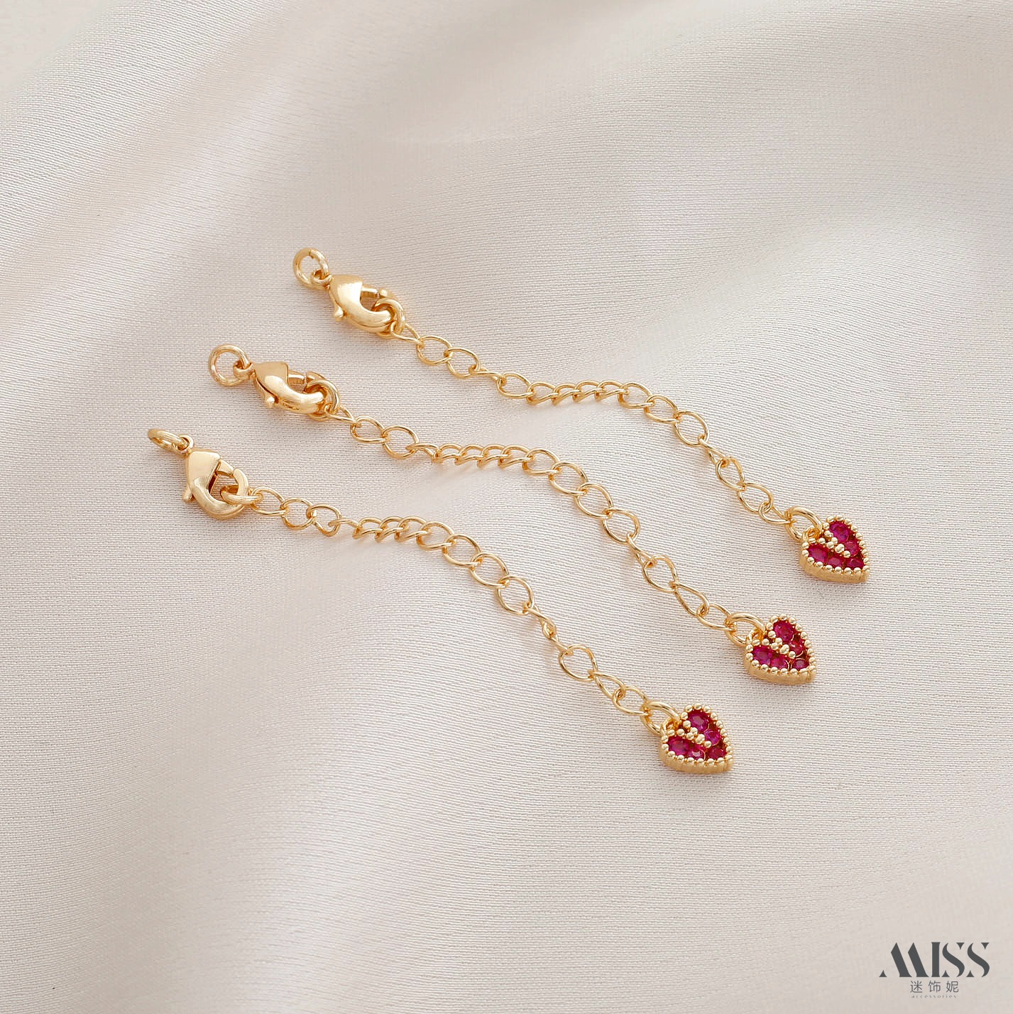 14K包金保色镶锆石桃心四叶草吊坠延长链尾链diy手链项链加长配件