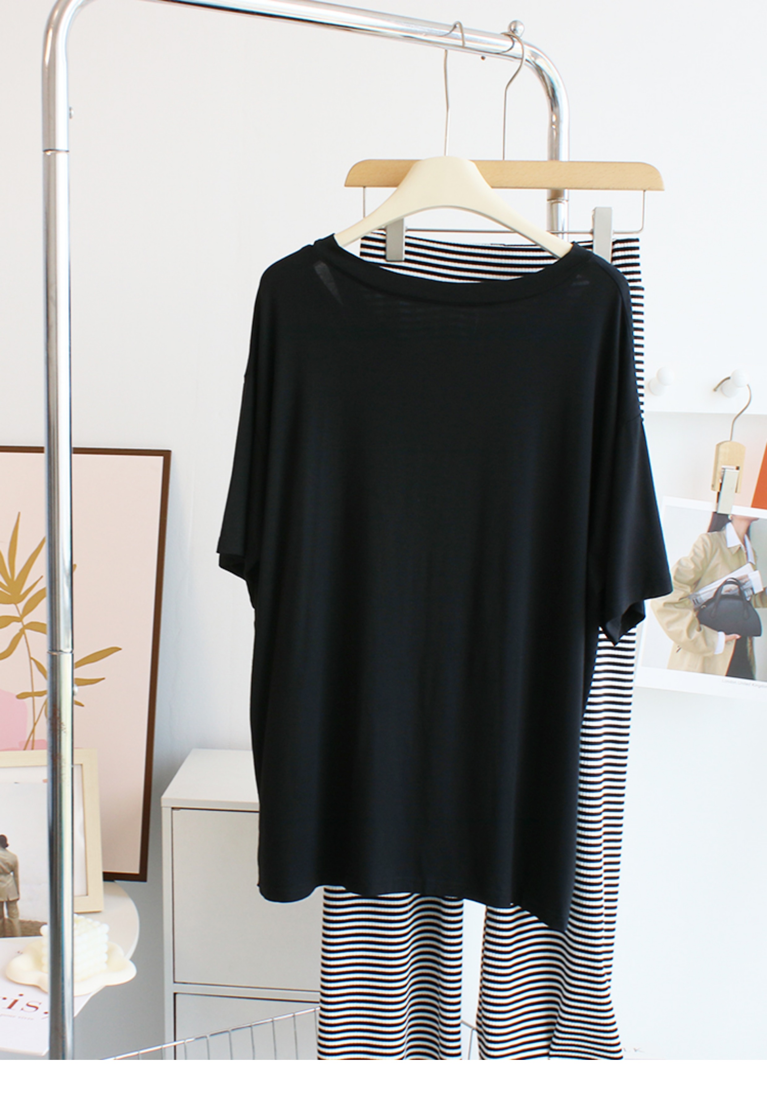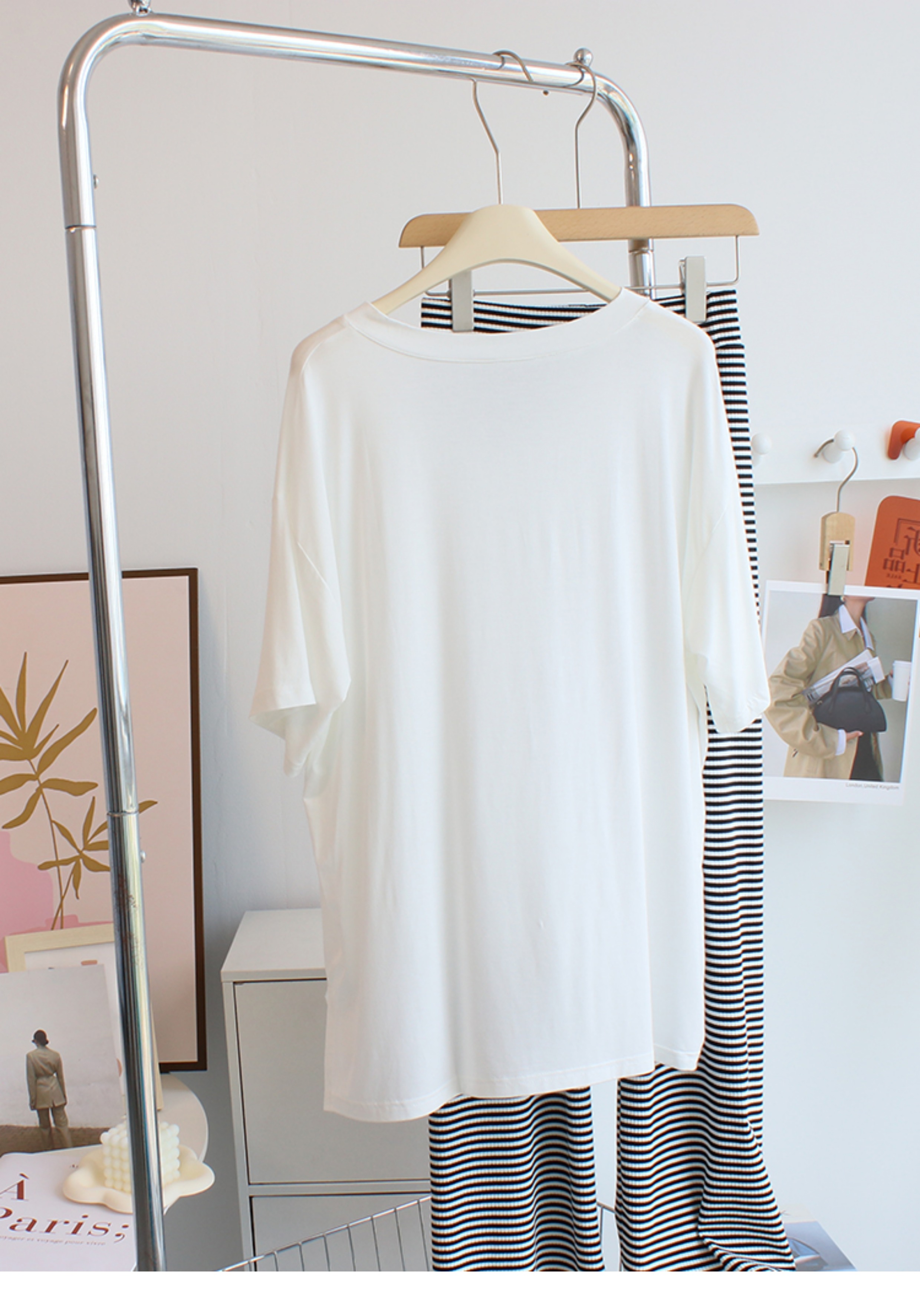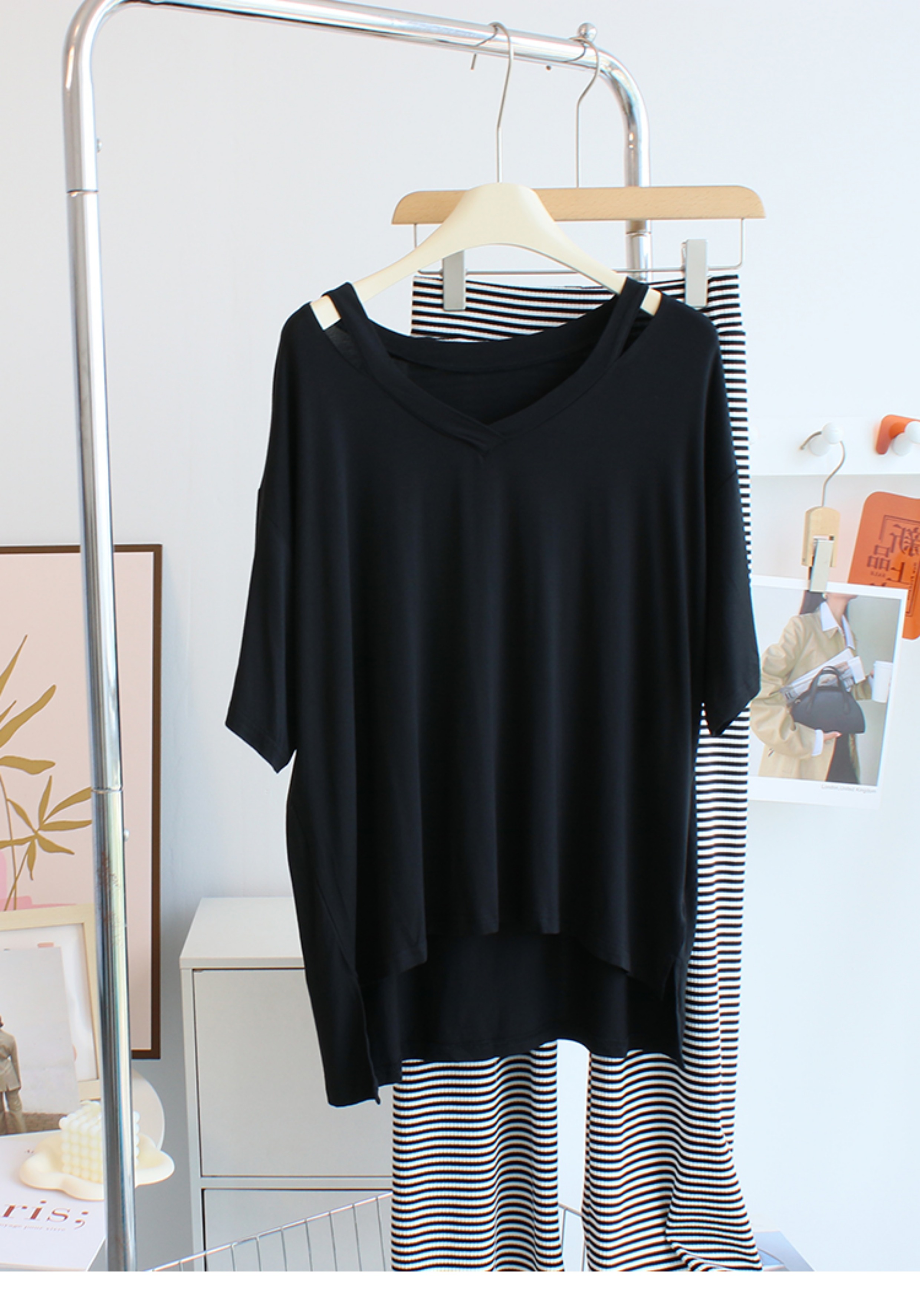 设计感~柔软V领莫代尔t恤女夏季薄款宽松短袖体恤衫开叉运动上衣