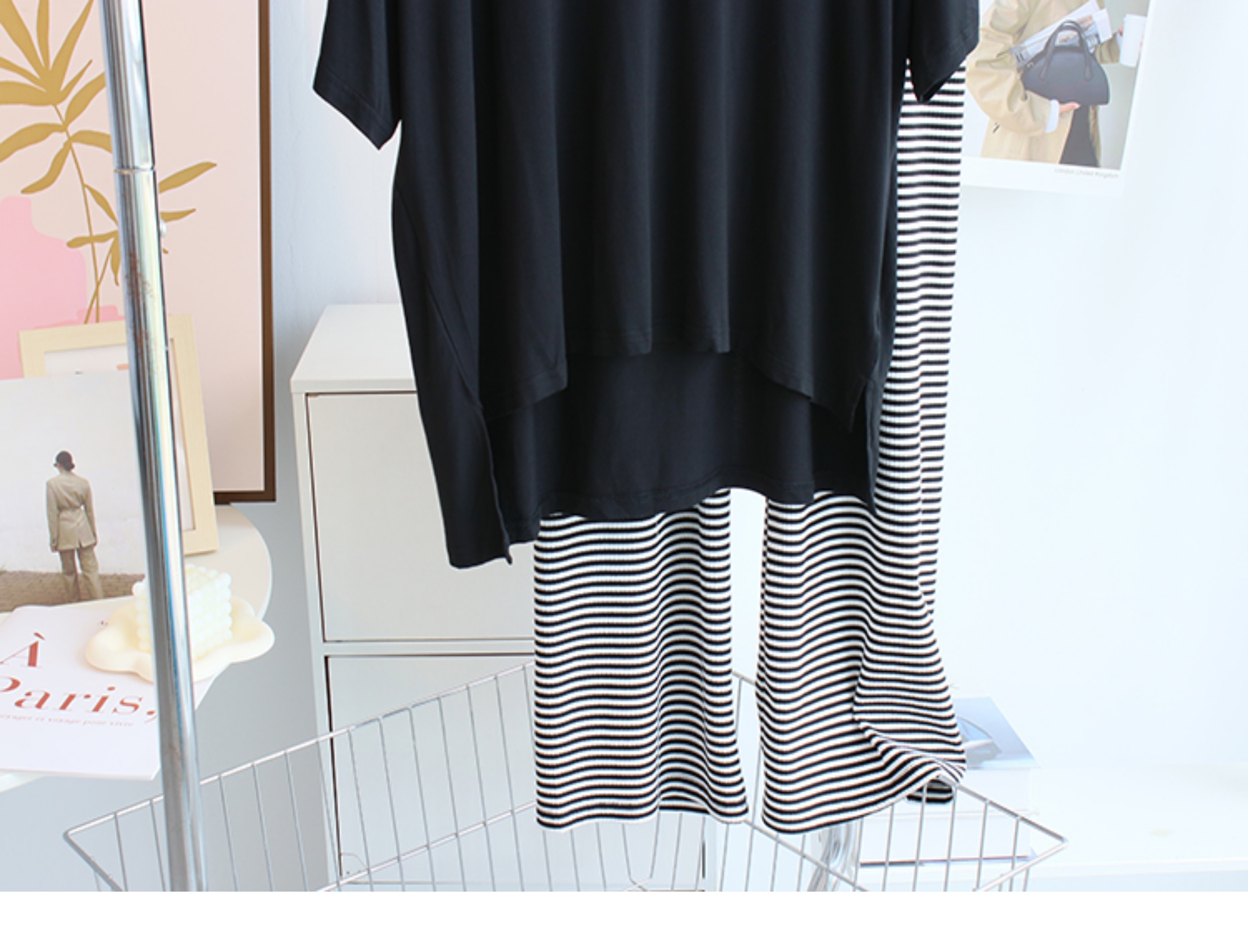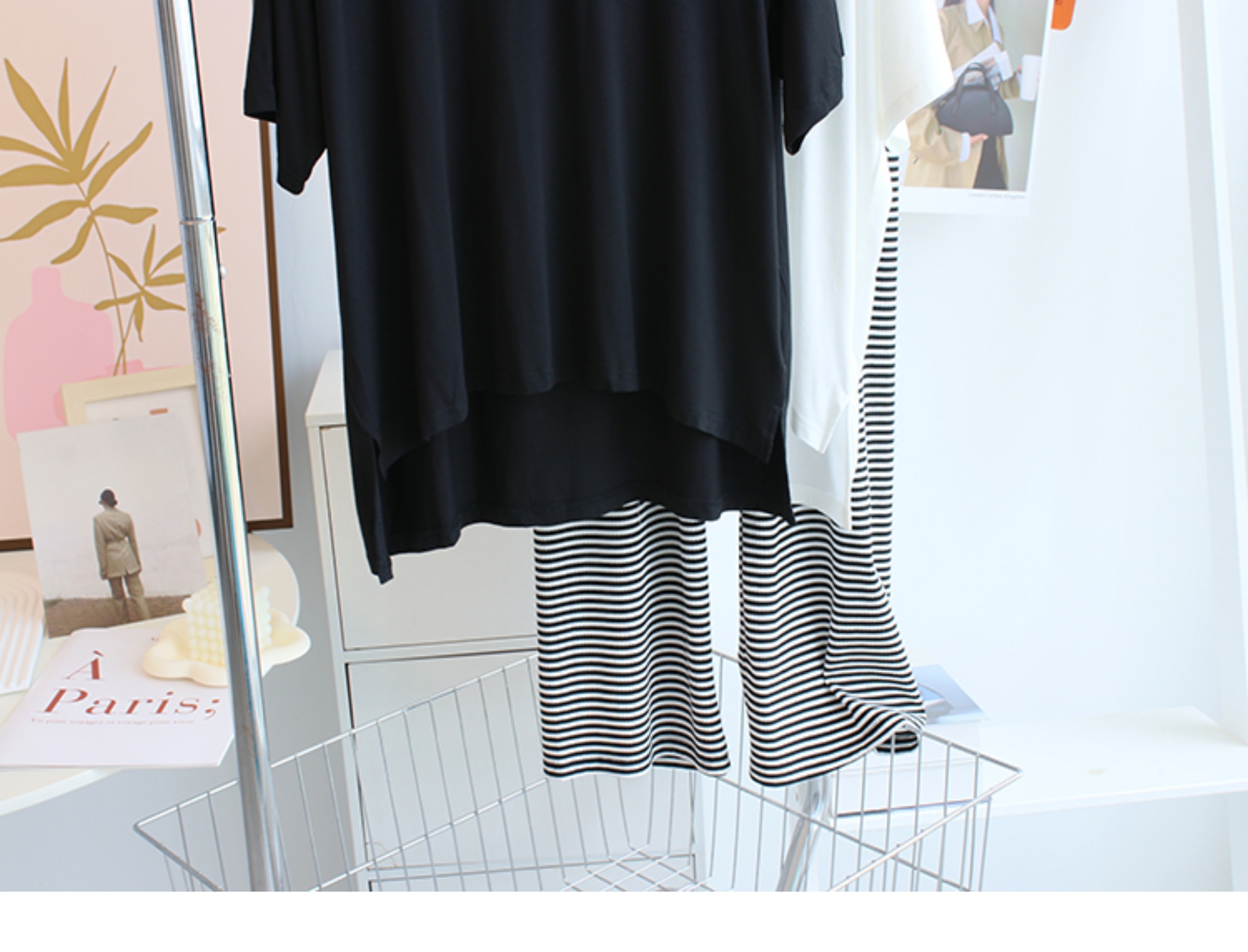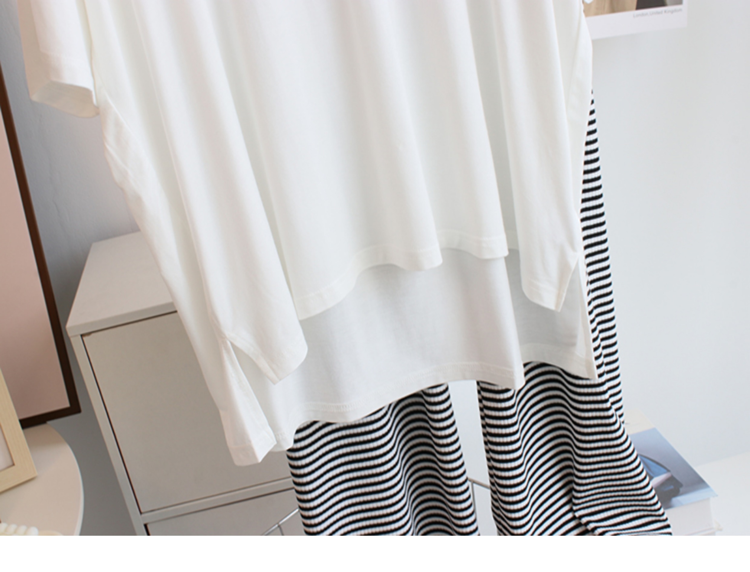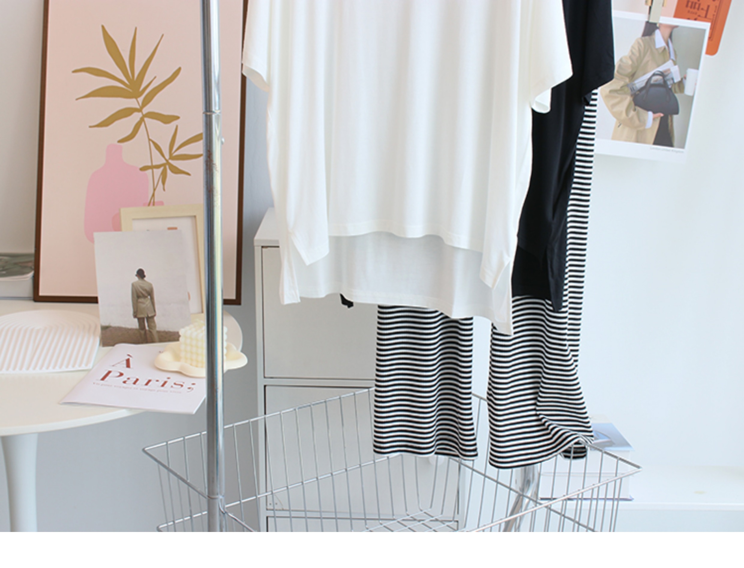 设计感~柔软V领莫代尔t恤女夏季薄款宽松短袖体恤衫开叉运动上衣