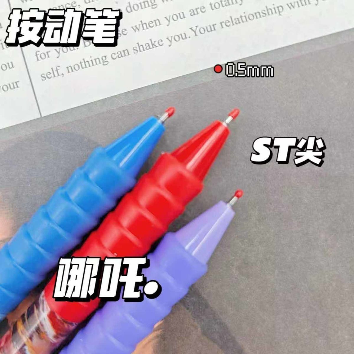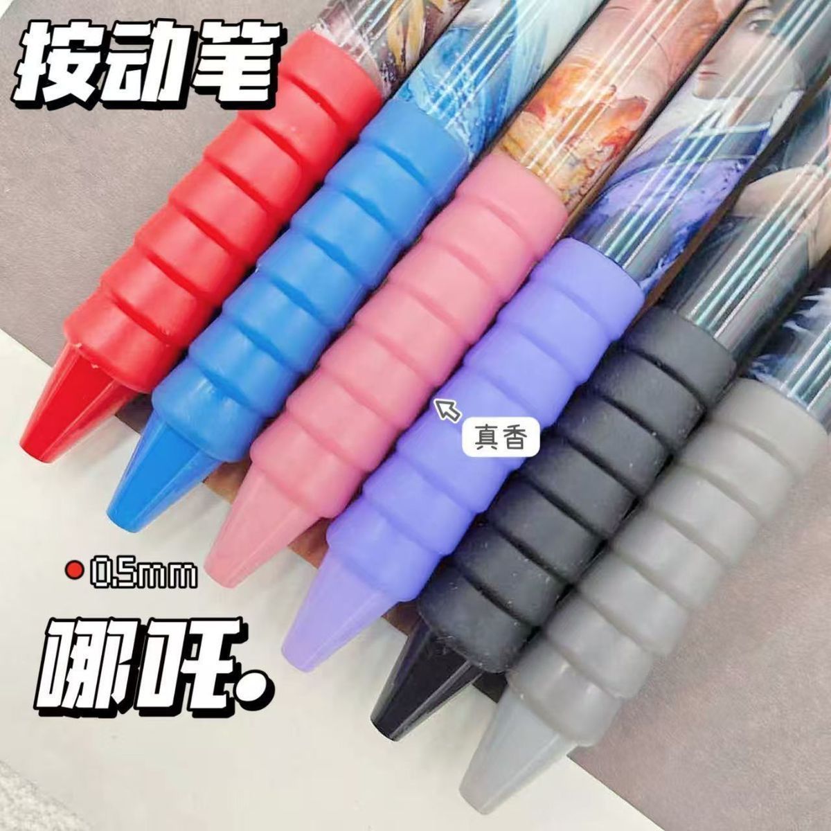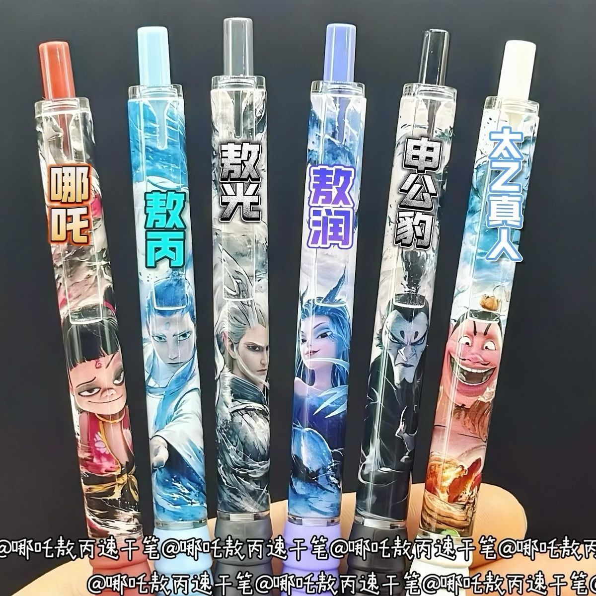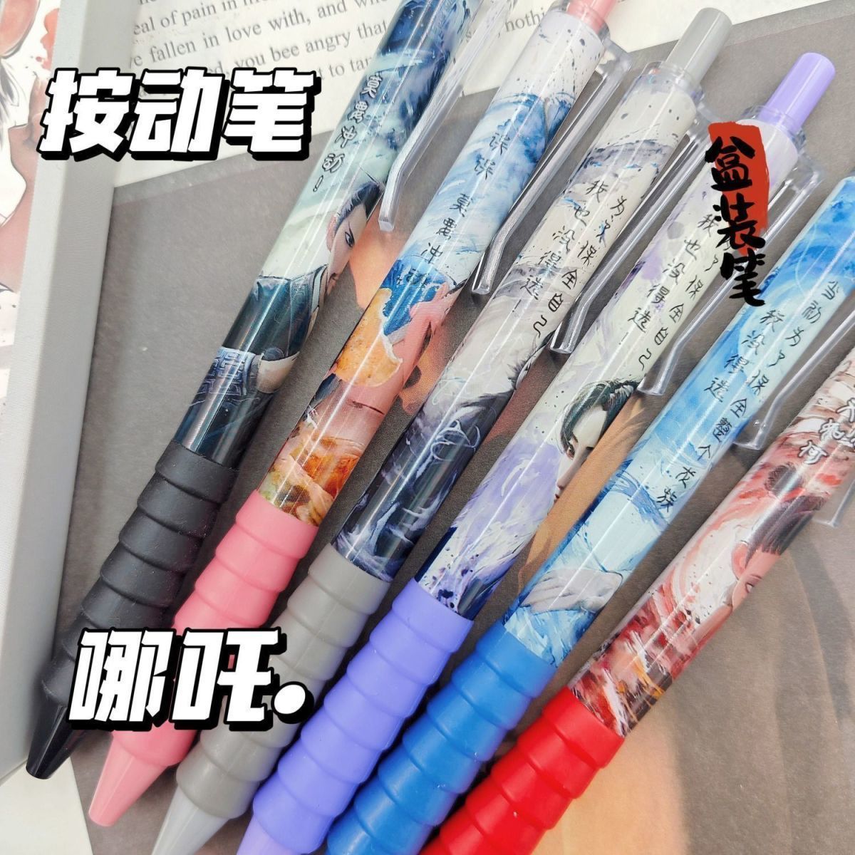 新款超值哪吒盲盒笔按动式中性笔高颜值速干黑色水笔学生哪吒笔
