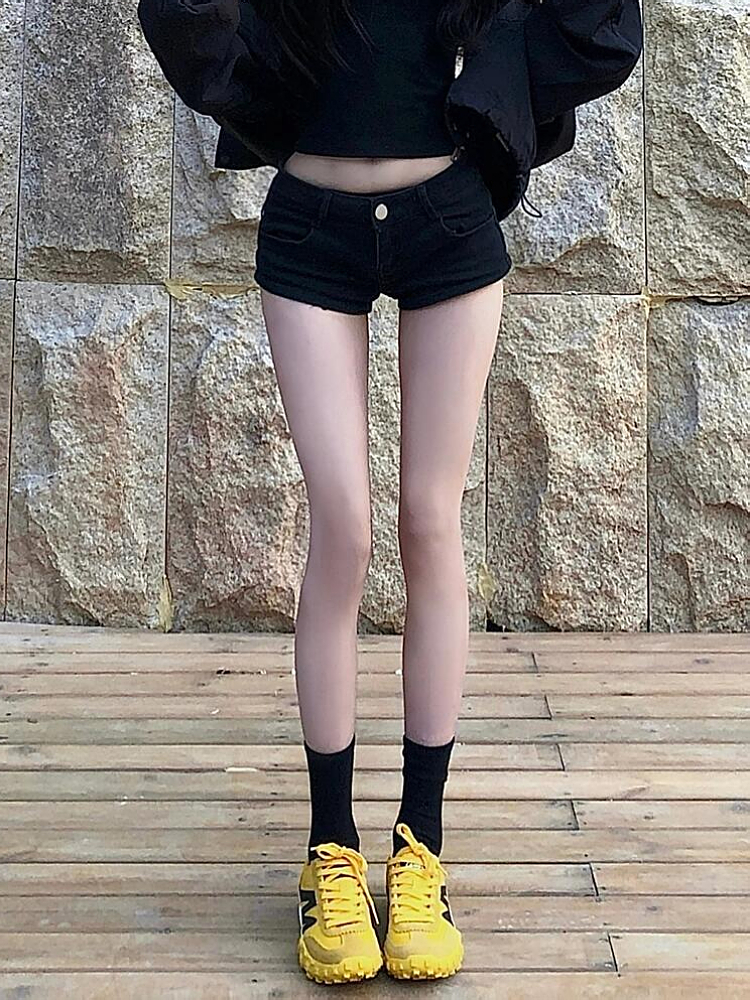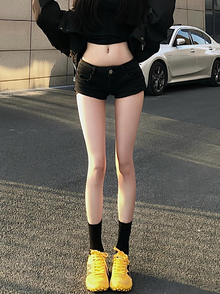 大码美式辣妹黑色低腰牛仔超短裤女2025夏季百搭弹力紧身包臀热裤
