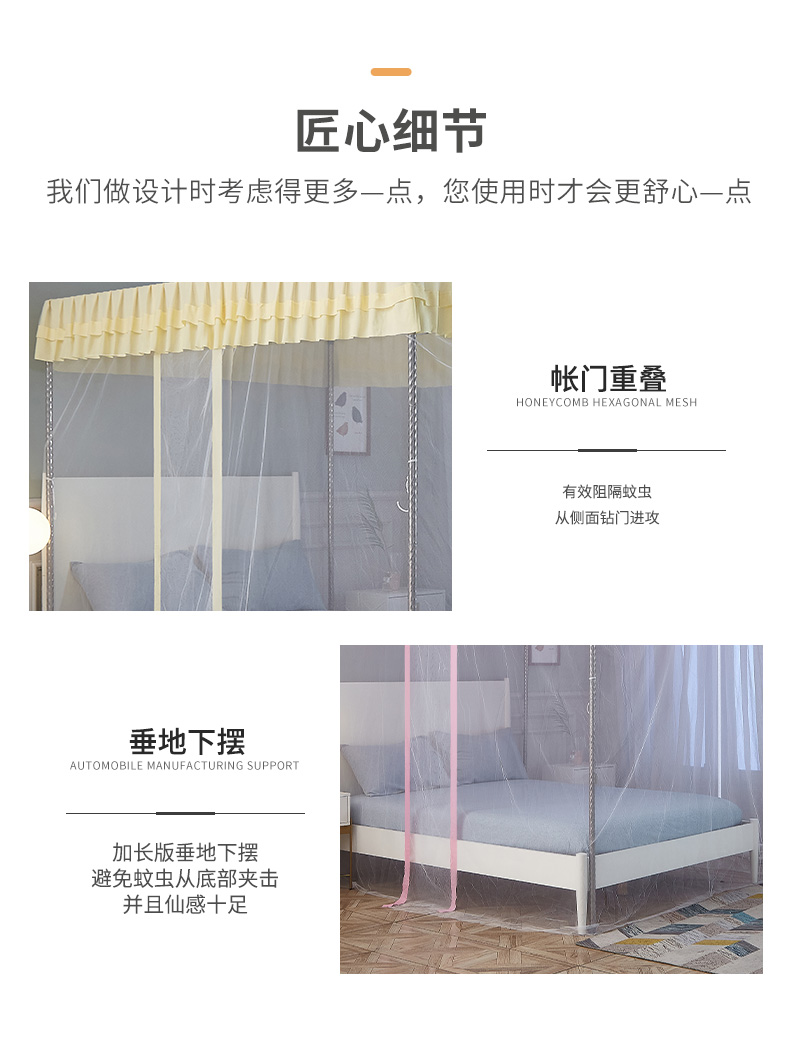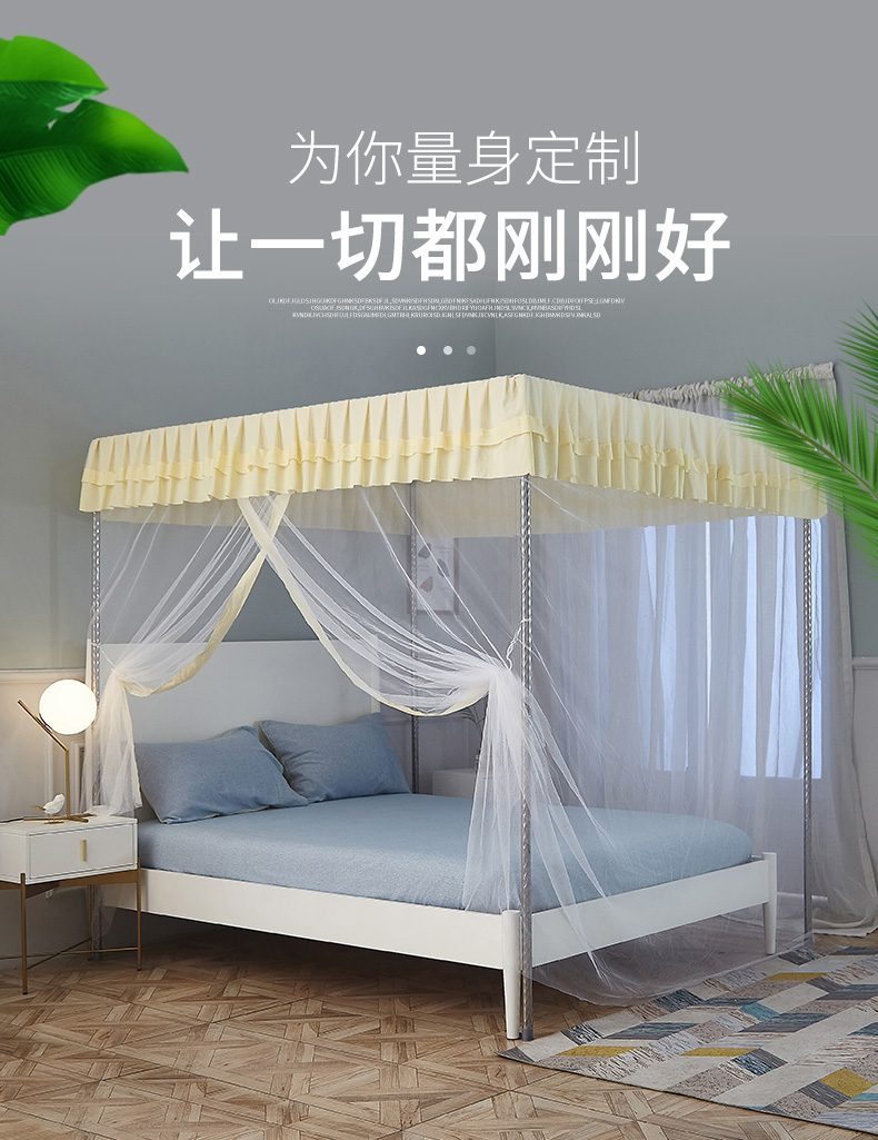 新款落地蚊帐防尘单开门1.8M床双人家用1.5加厚加密1/1.2/2米支架