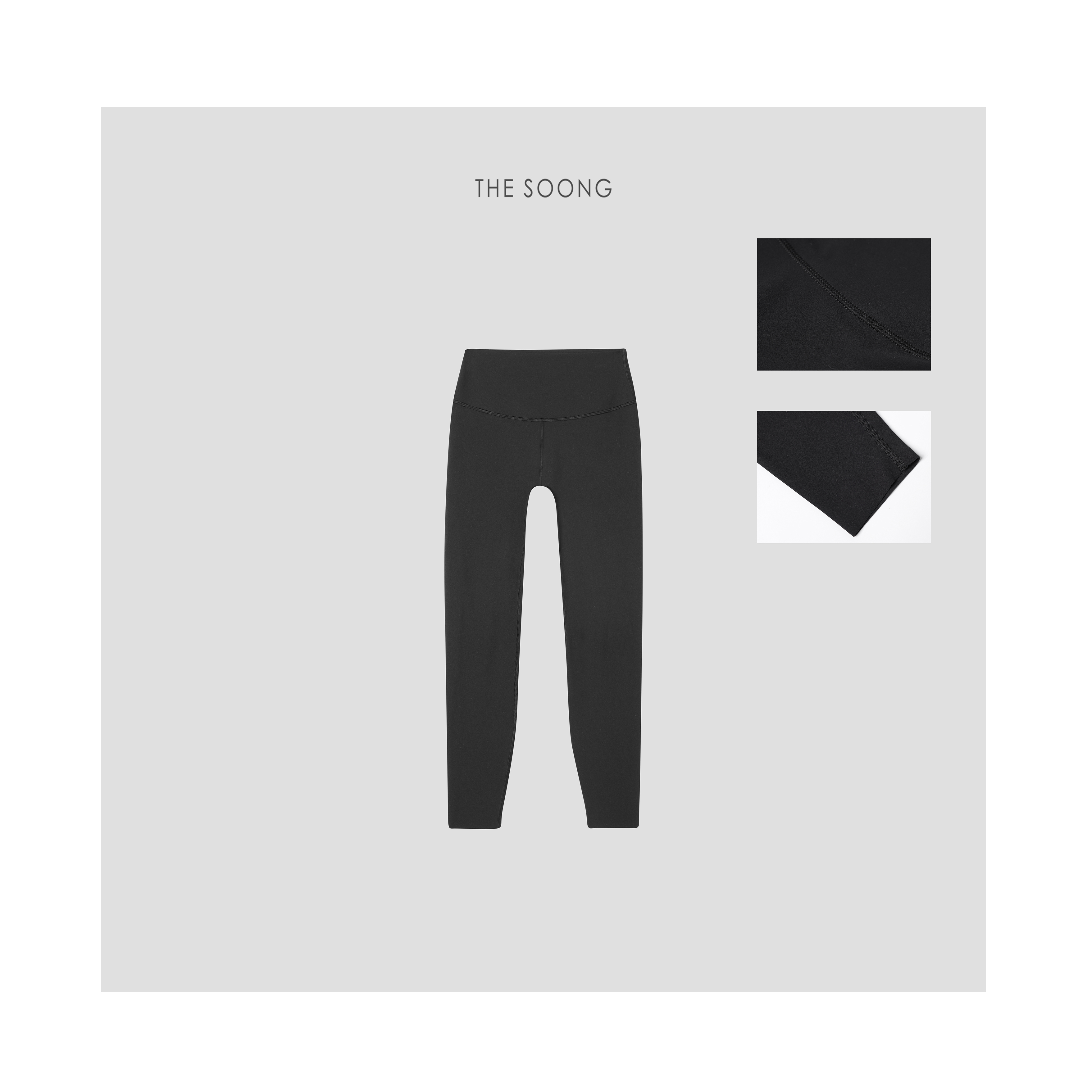 THESOONG/一片式裁剪瑜伽裤裸感收腰无T线丝滑无痕黑色打底健身裤