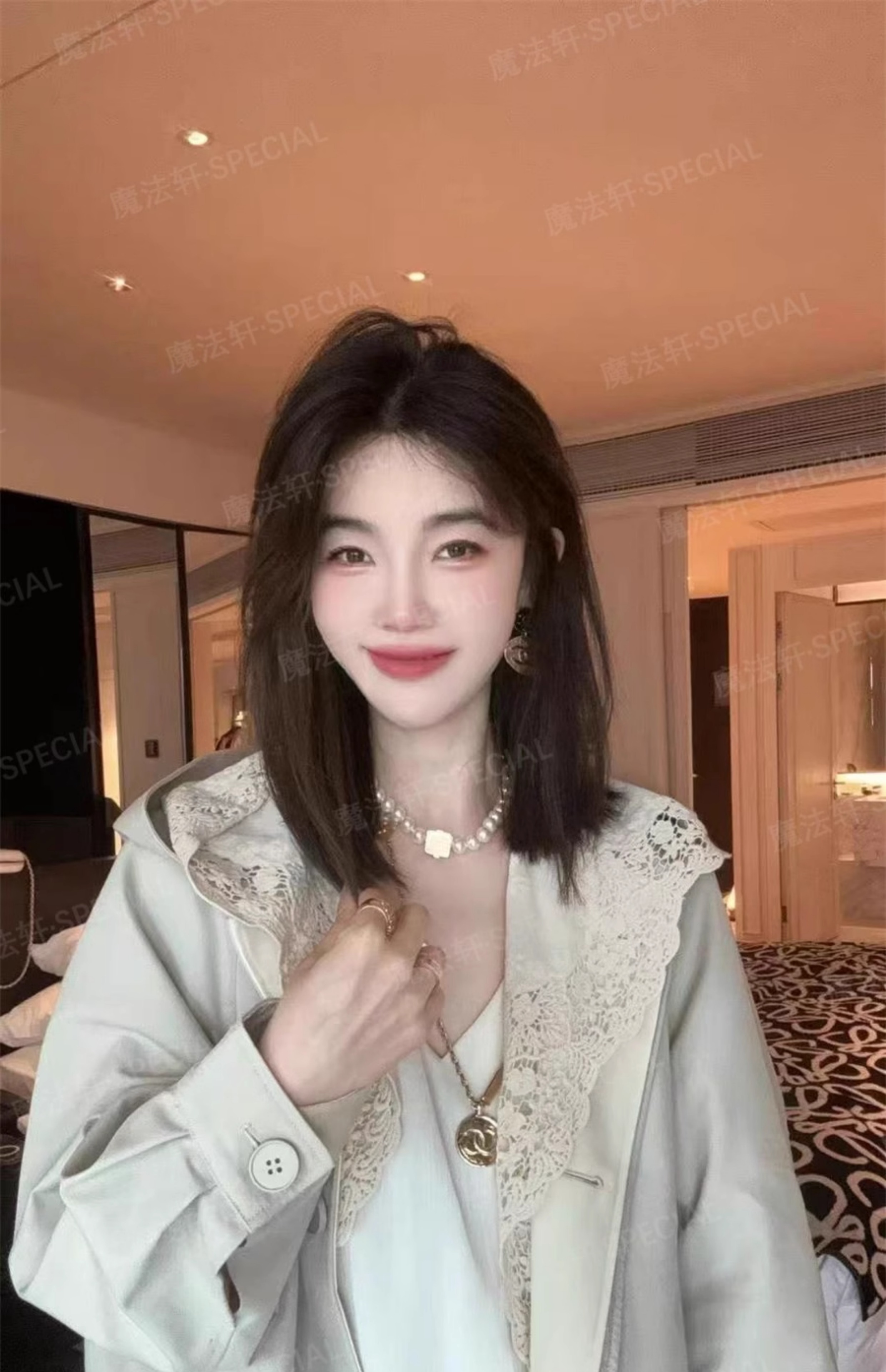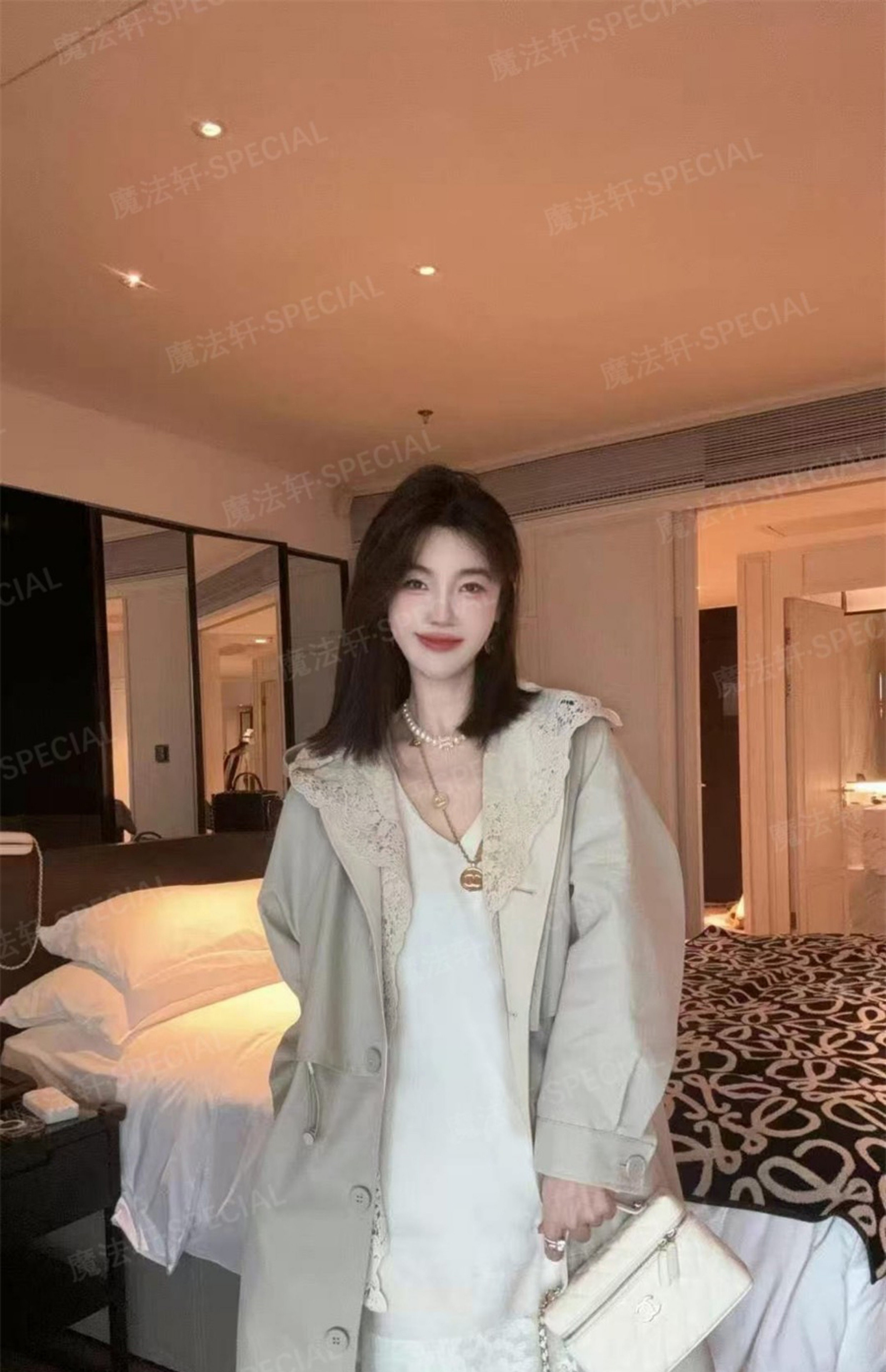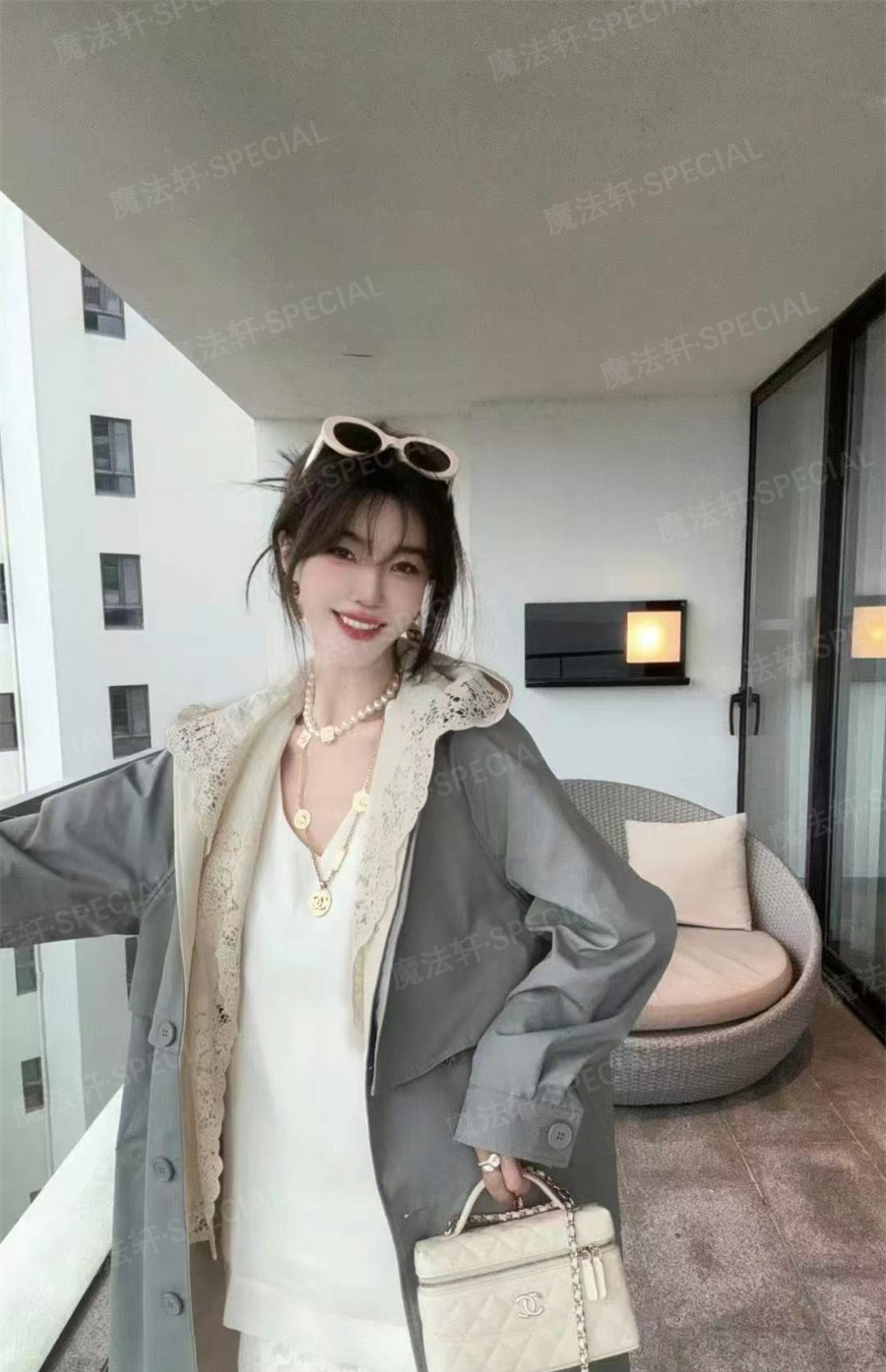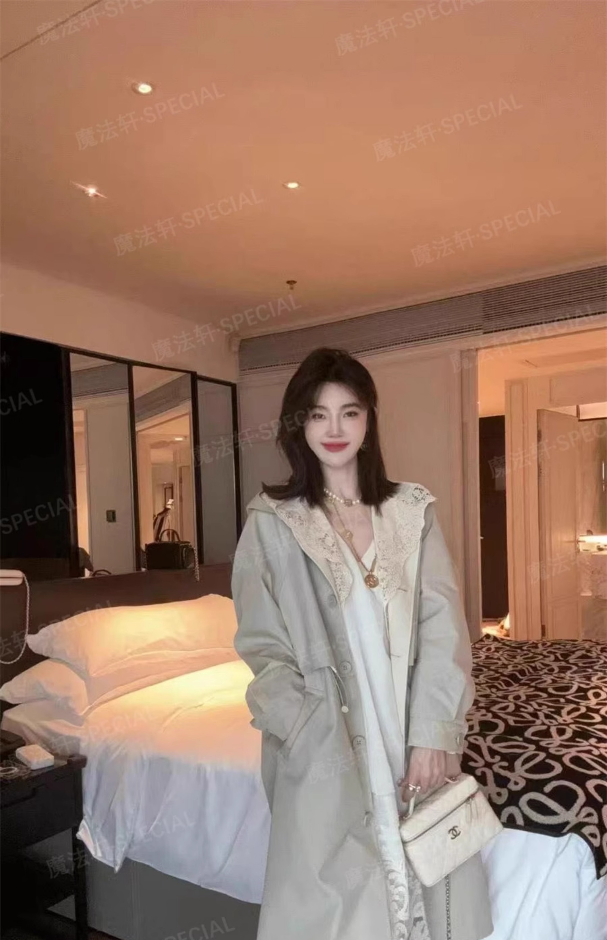 拼色蕾丝假两件风衣外套女2025早春新款连帽中长款上衣欧洲站潮q