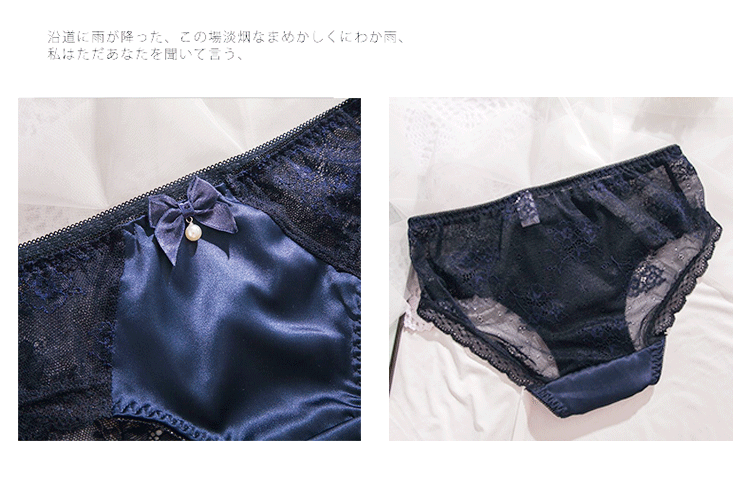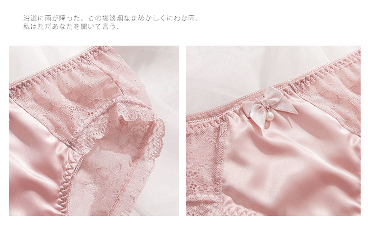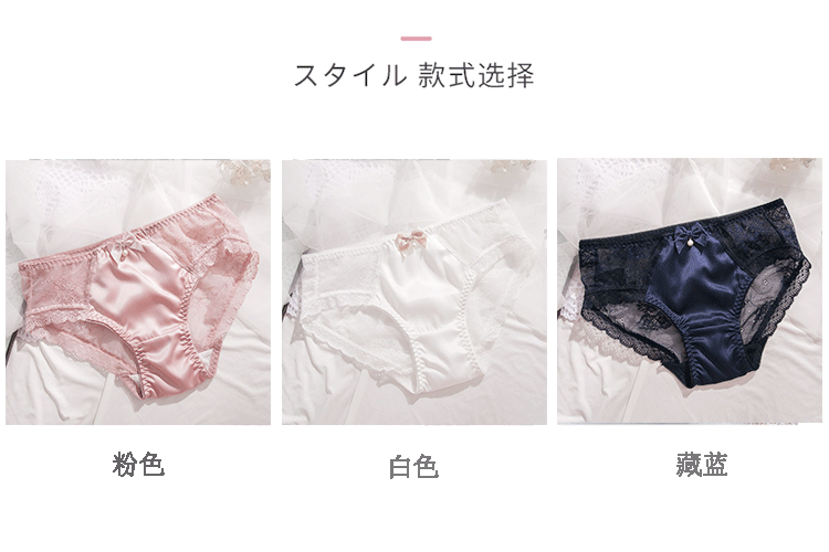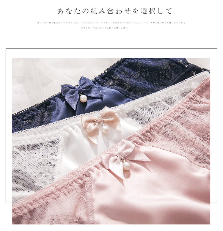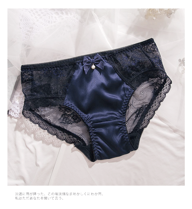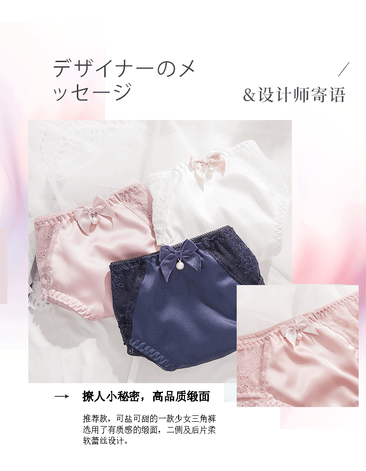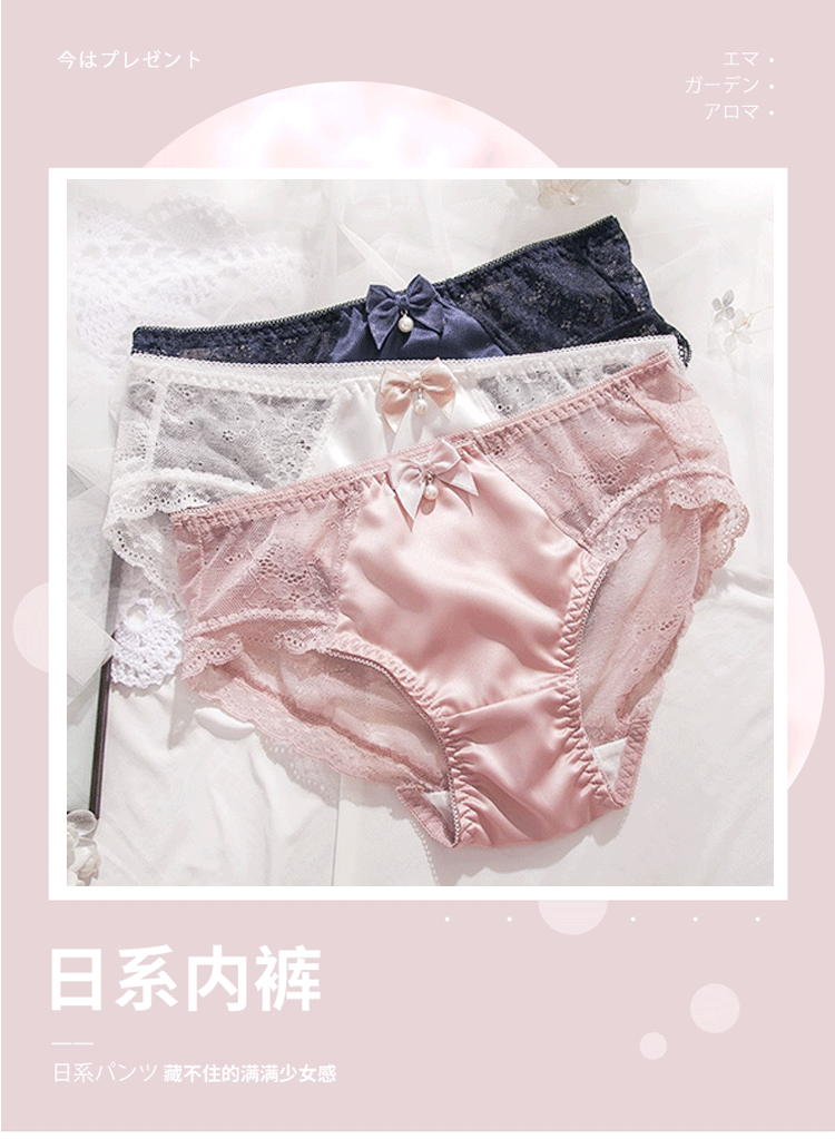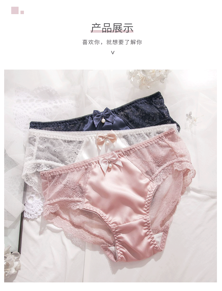 高弹日系性感蝴蝶结内裤女士色丁缎面蕾丝花边透气棉裤中腰三角裤