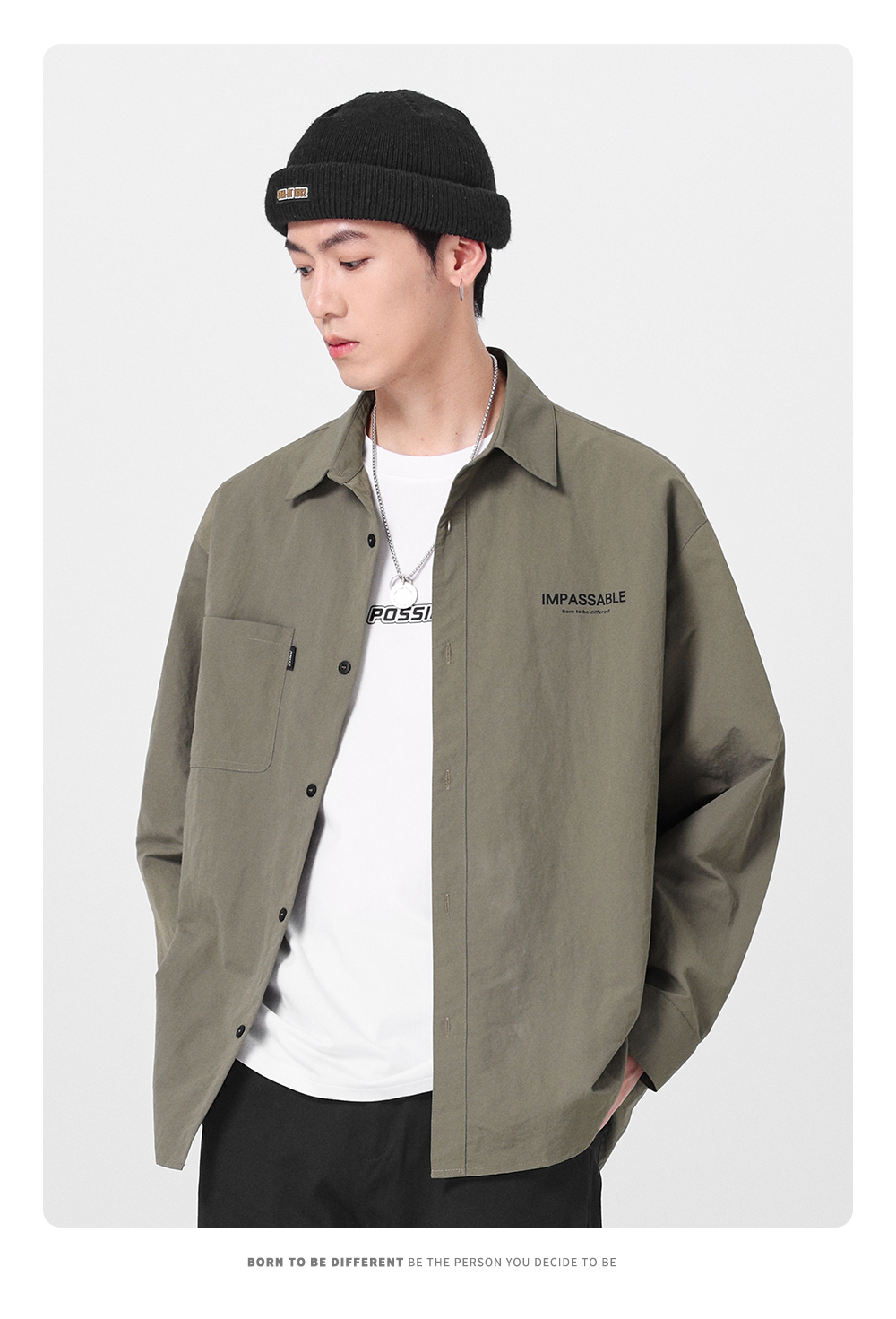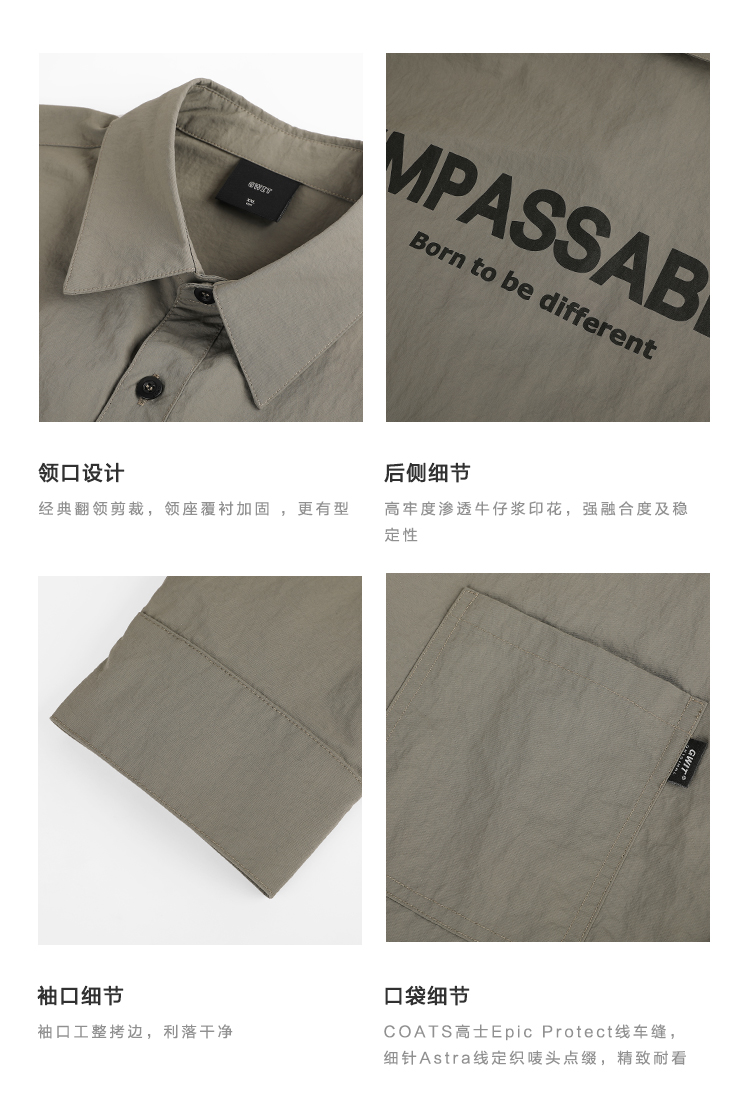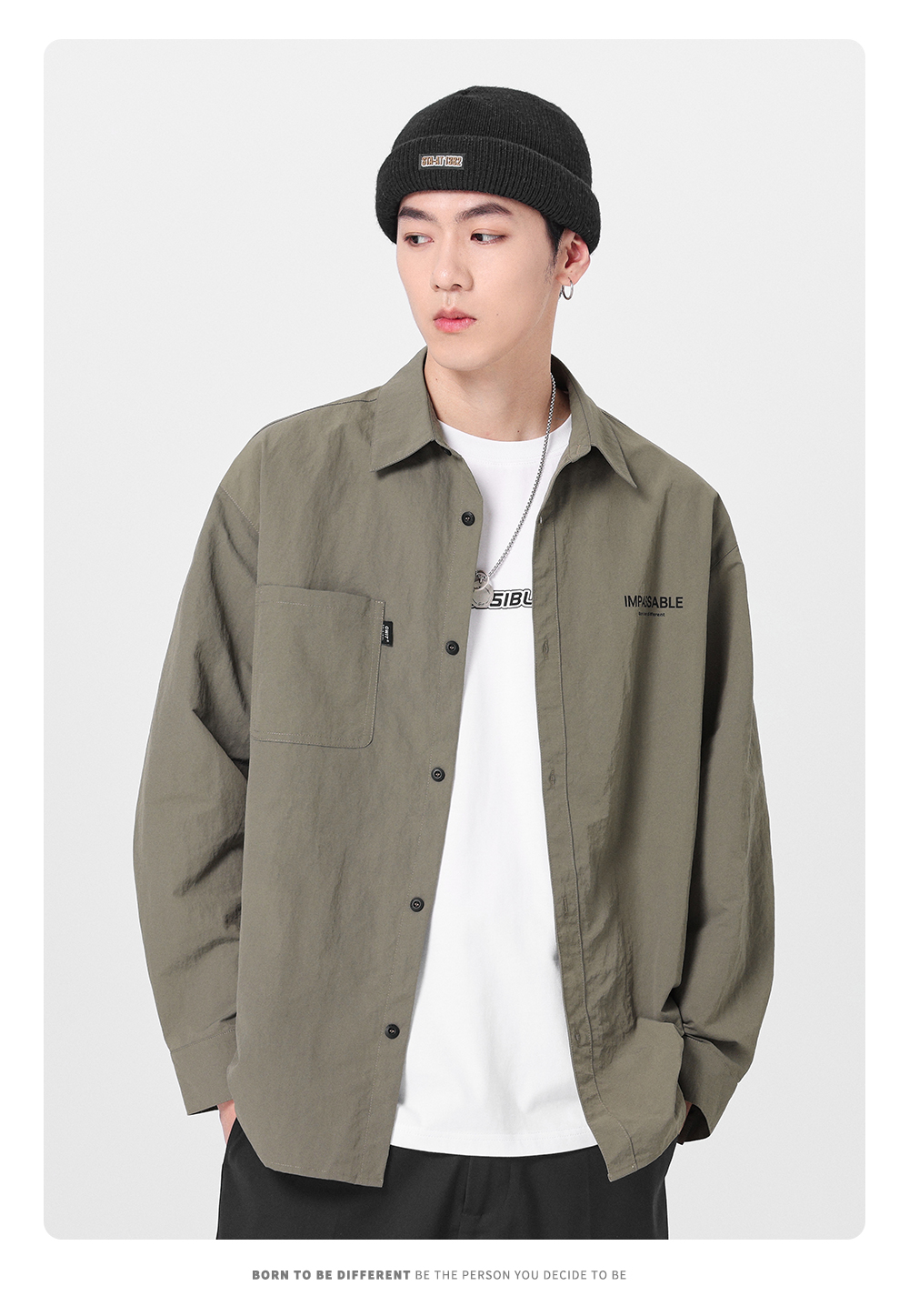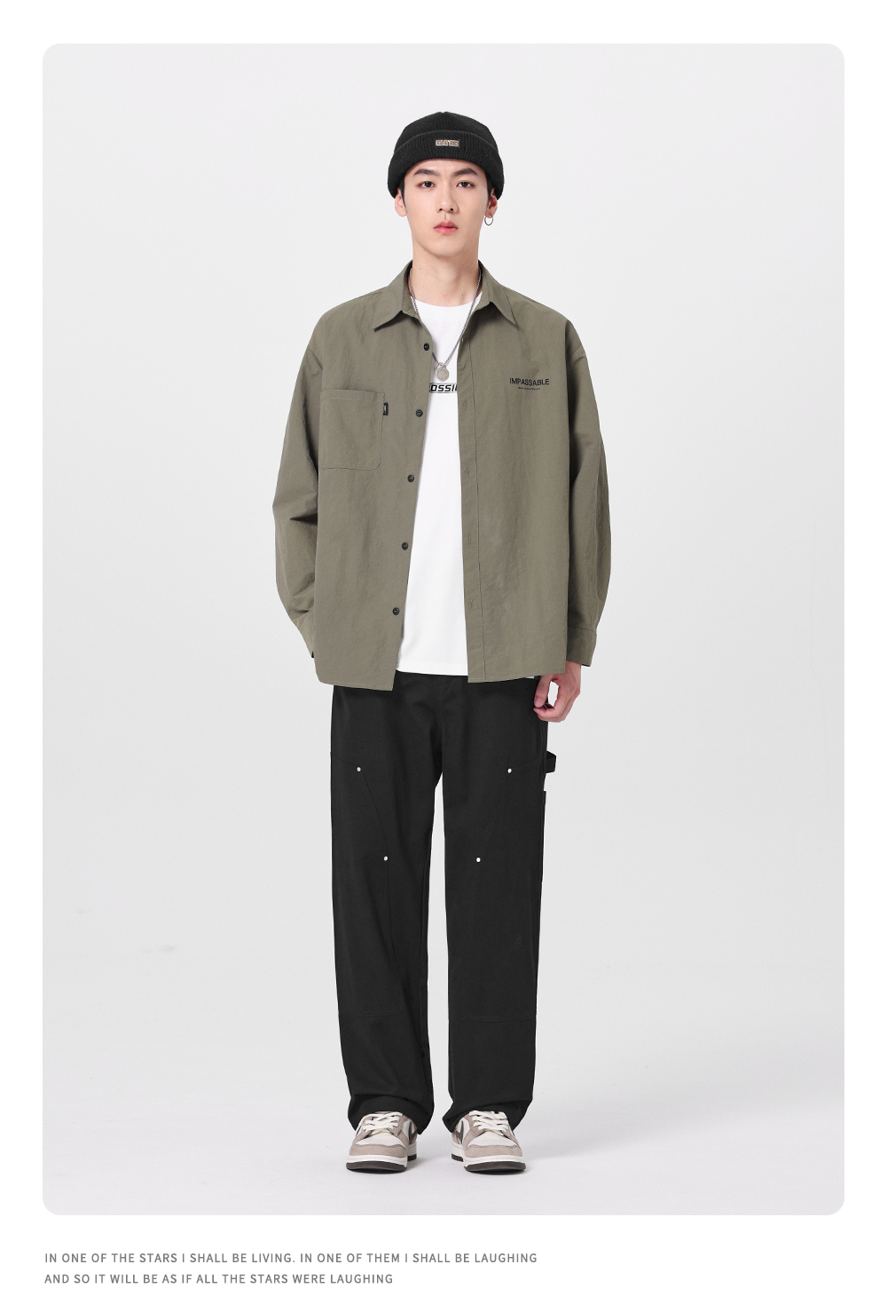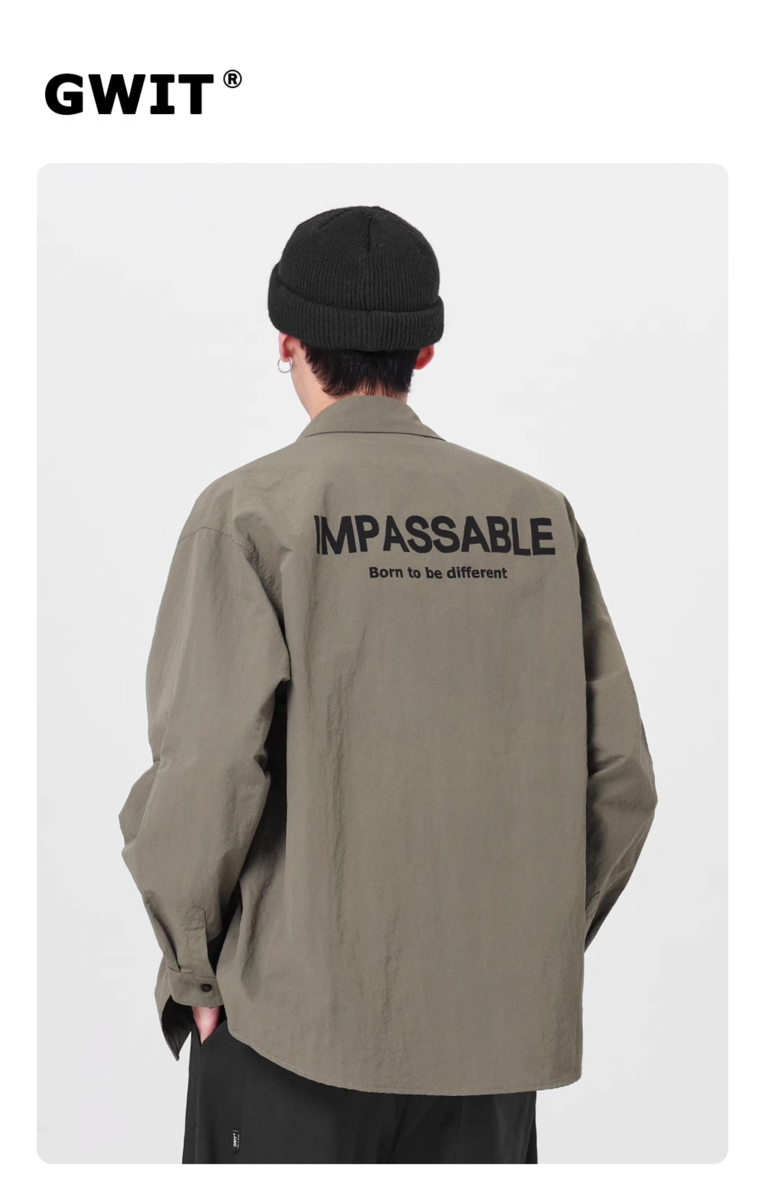 GWIT 美式复古上衣寸衫外套春秋长袖衬衣高街潮牌休闲工装衬衫男