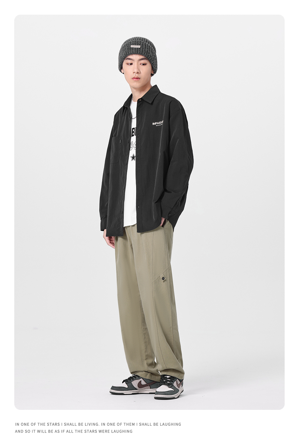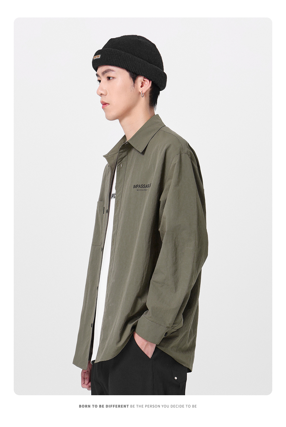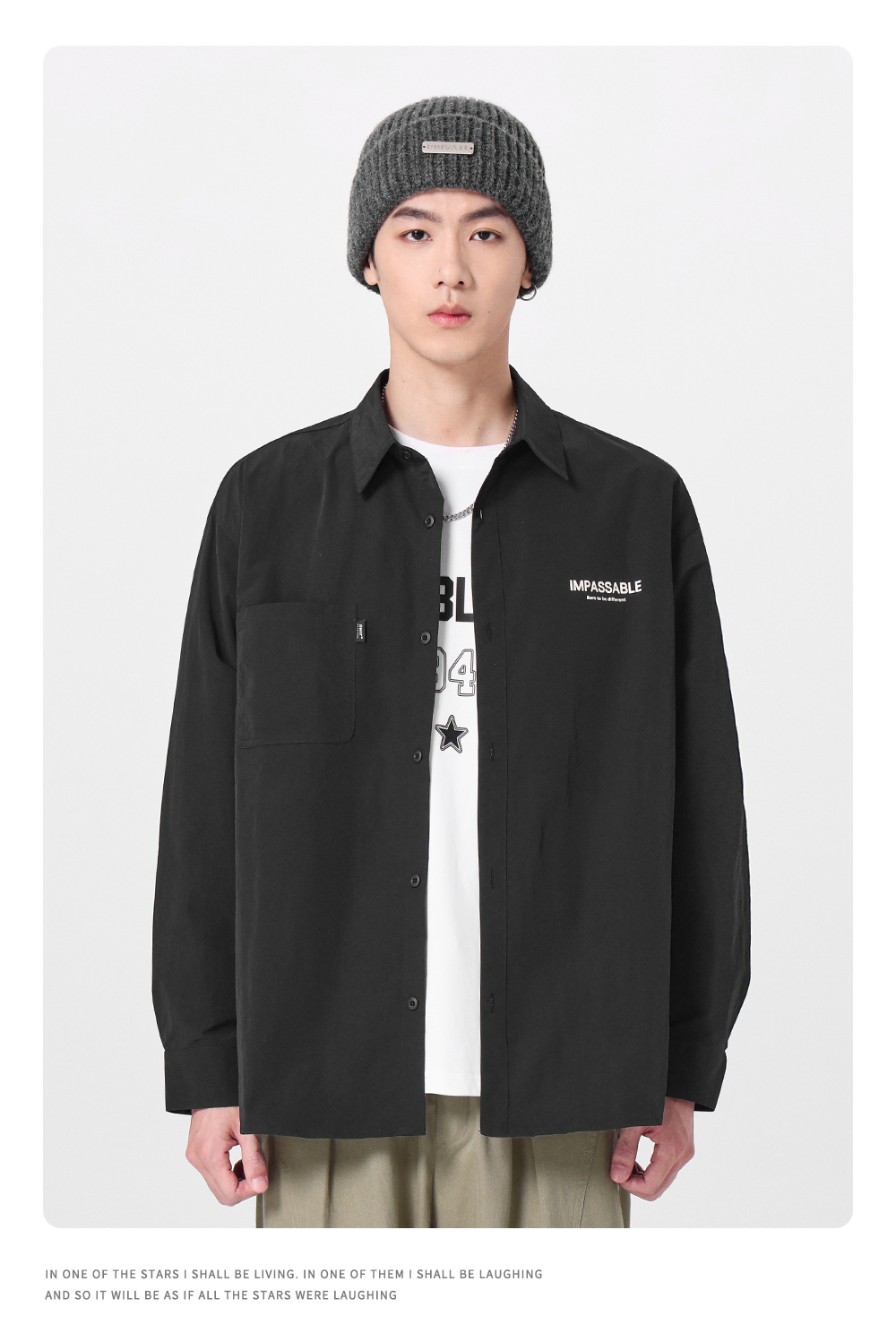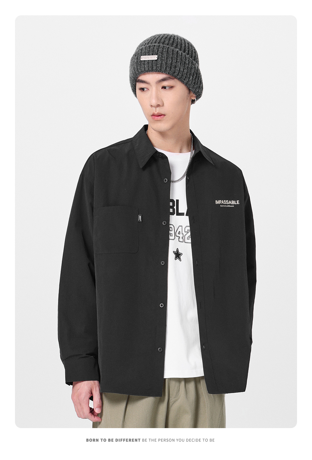 GWIT 美式复古上衣寸衫外套春秋长袖衬衣高街潮牌休闲工装衬衫男