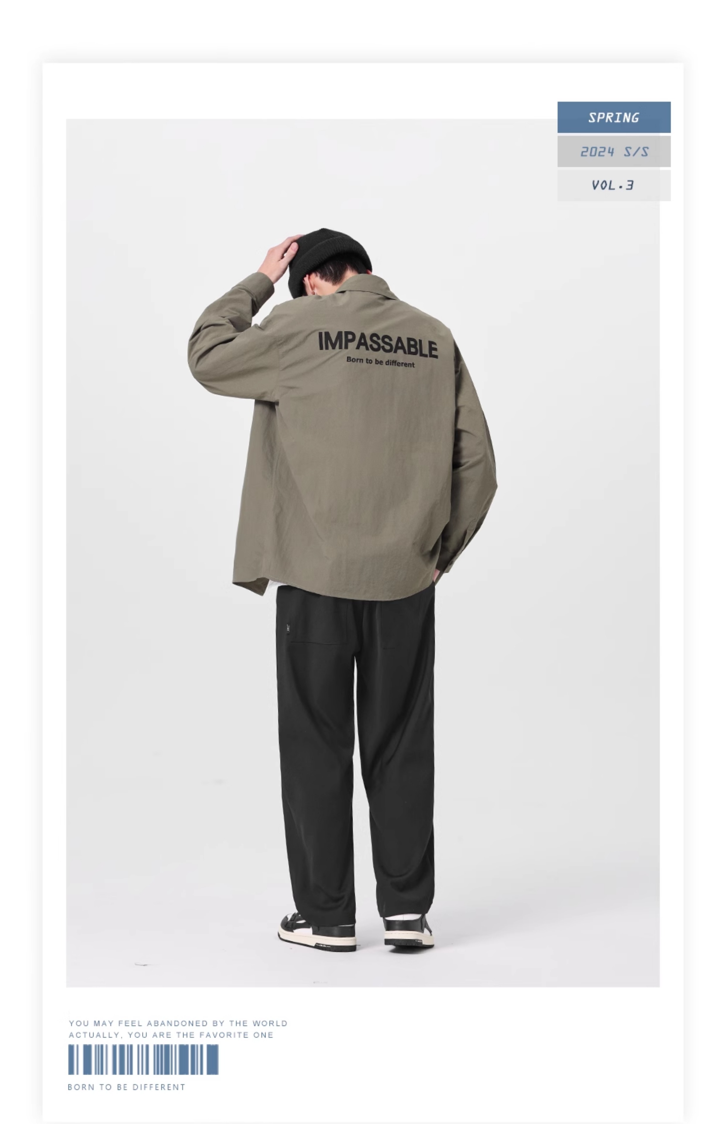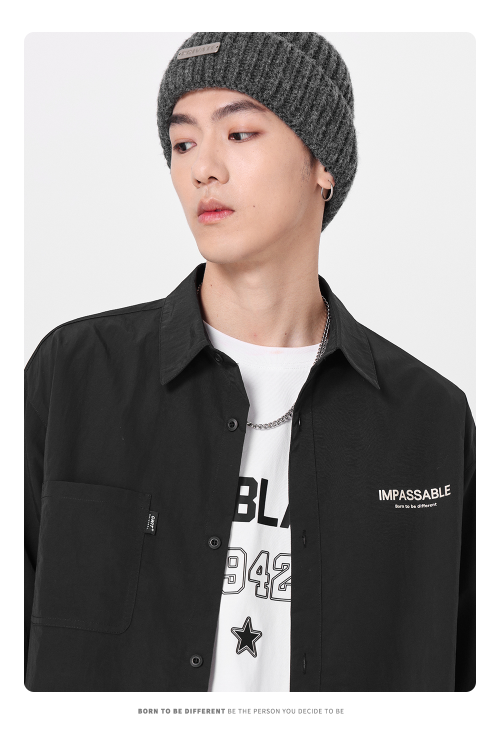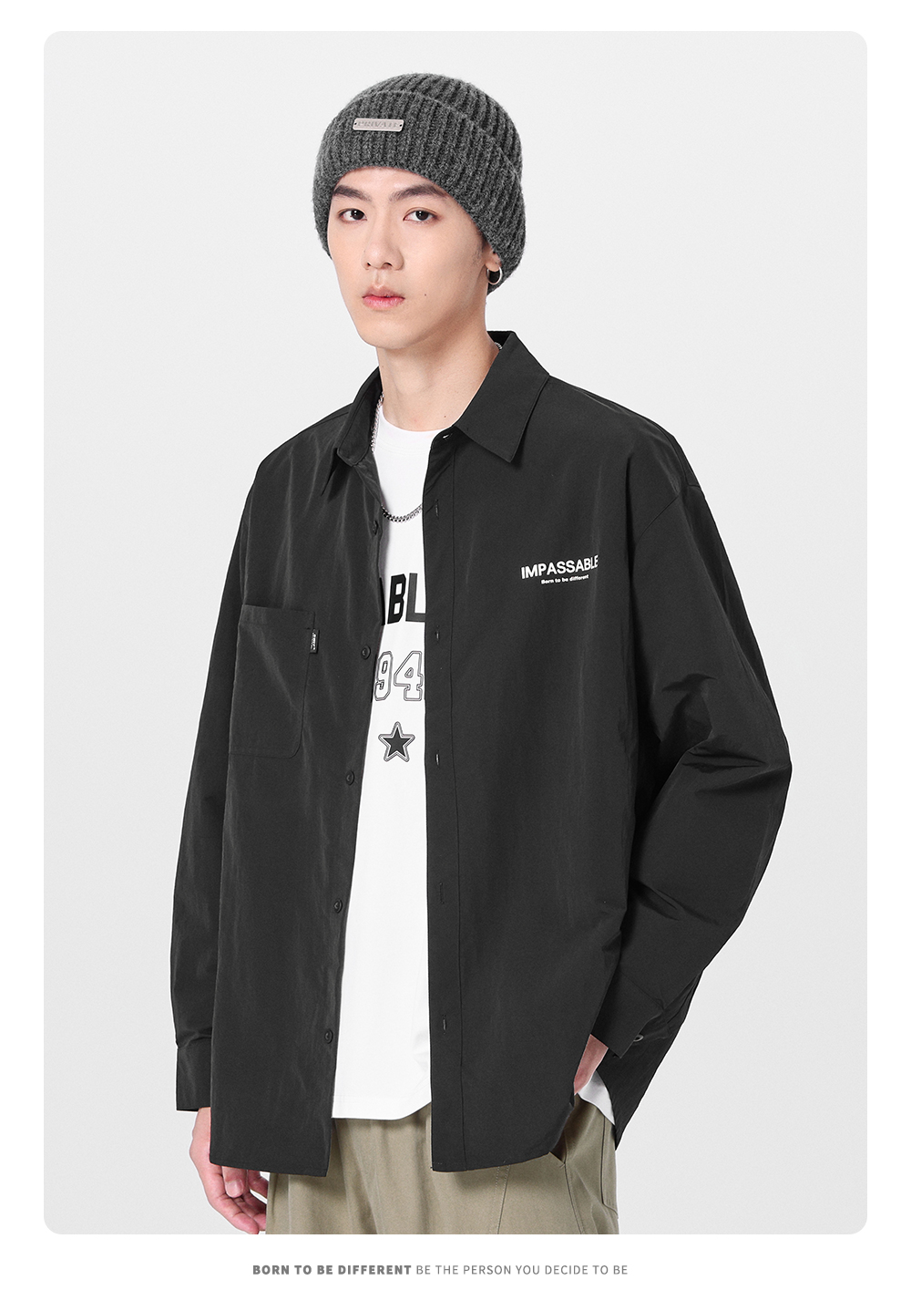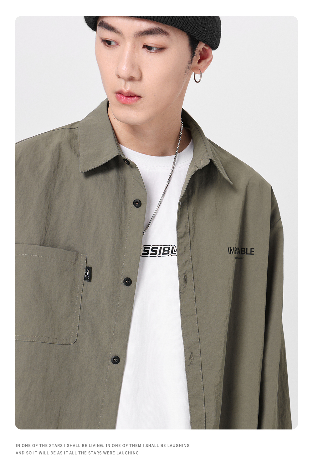 GWIT 美式复古上衣寸衫外套春秋长袖衬衣高街潮牌休闲工装衬衫男