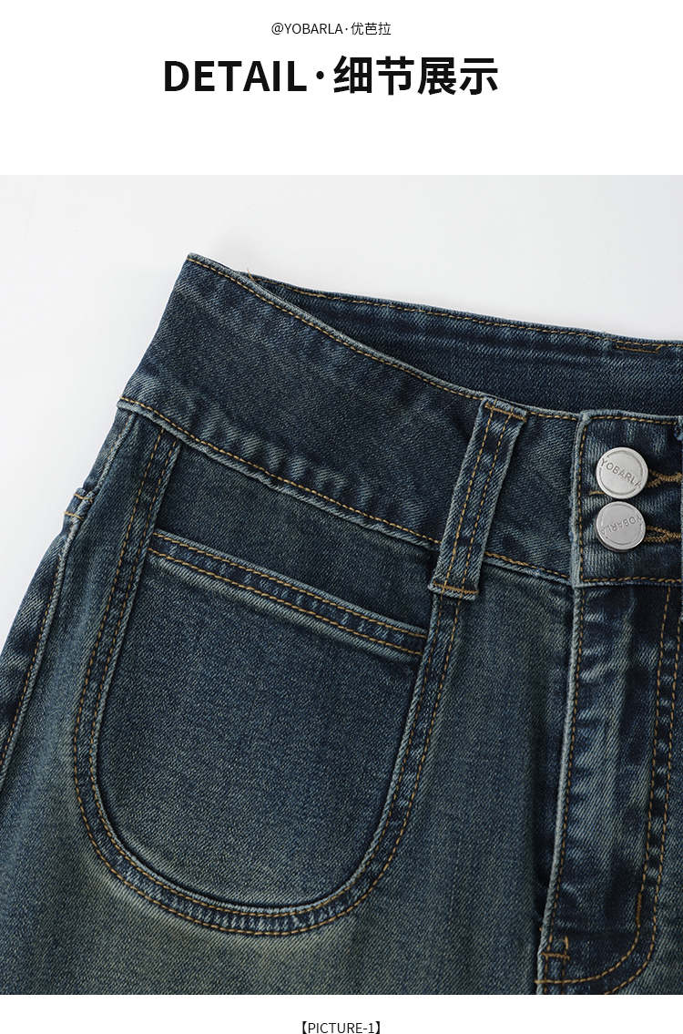 复古蓝直筒牛仔裤女夏季新款高腰胖mm大码宽松显瘦梨形身材阔腿裤