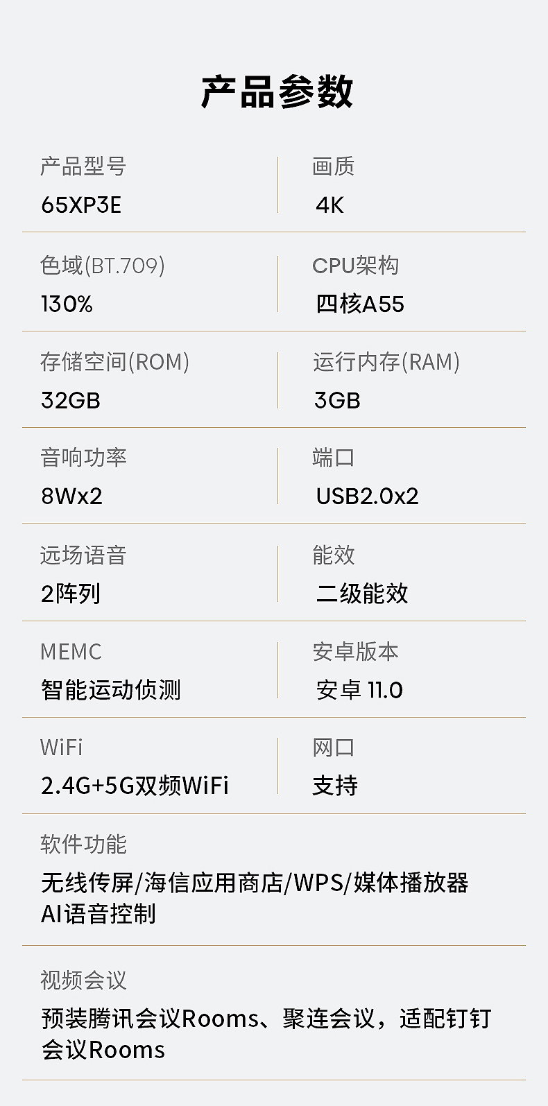 海信会议电视XP3E系列85英寸会议平板会议电视4K直播显示屏广告机办公投影仪液晶电视机非触摸