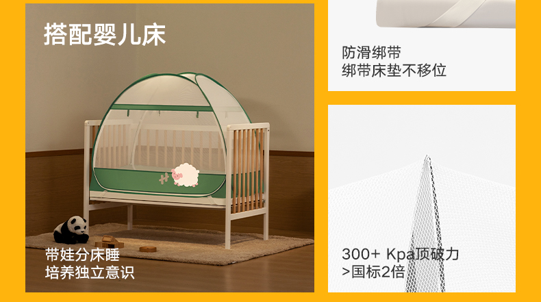 美朵嘉2025新款卡通婴儿床蚊帐宝宝免安装蒙古包拼接床儿童小蚊帐