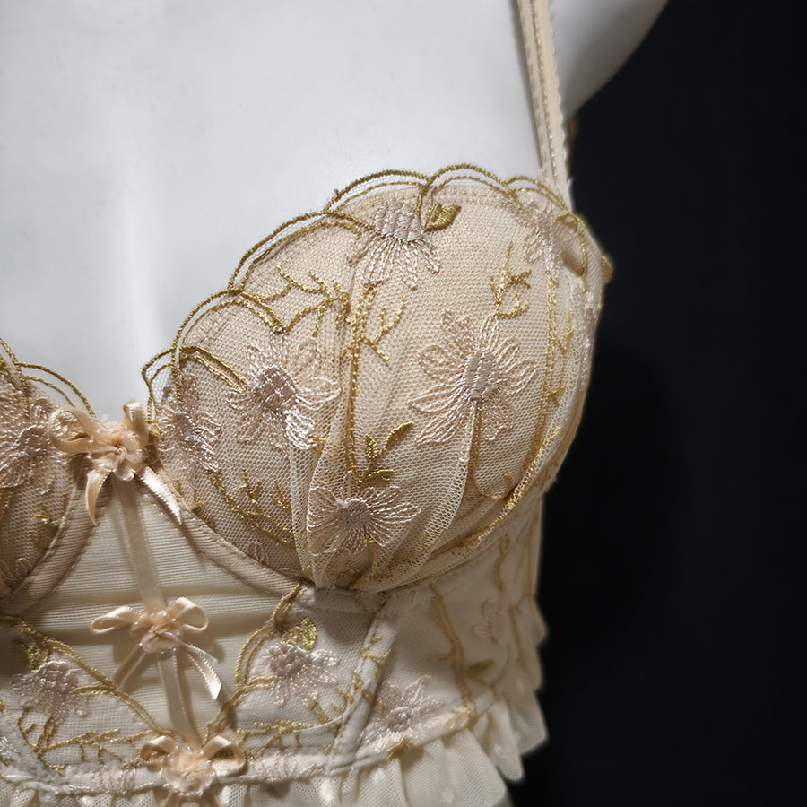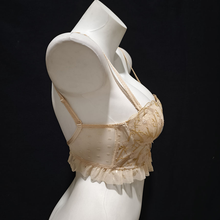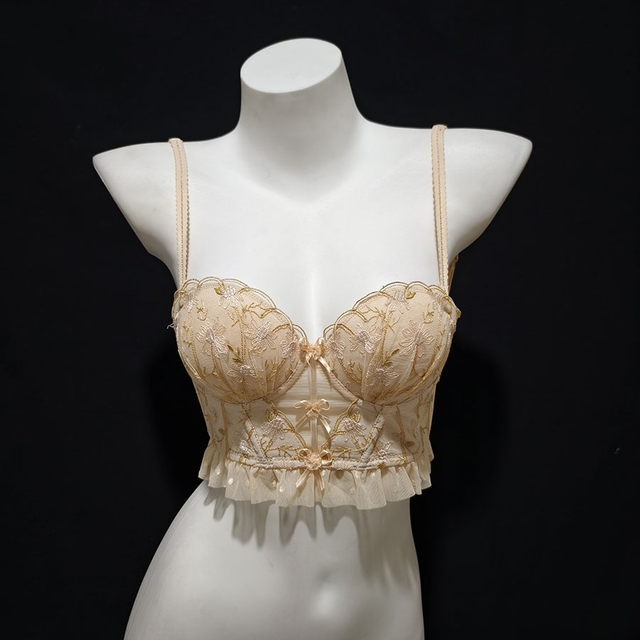 性感鱼骨胸衣上薄下厚小胸聚拢内衣蕾丝薄款平胸吊带美背文胸塑身