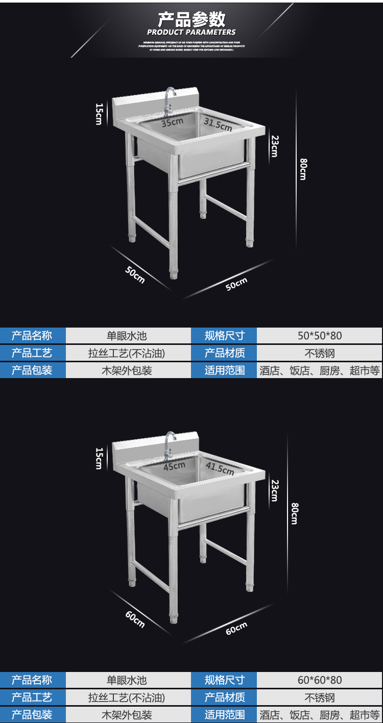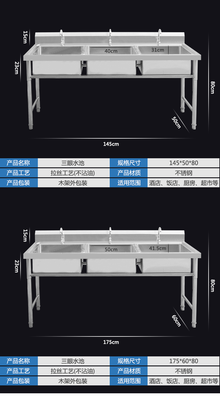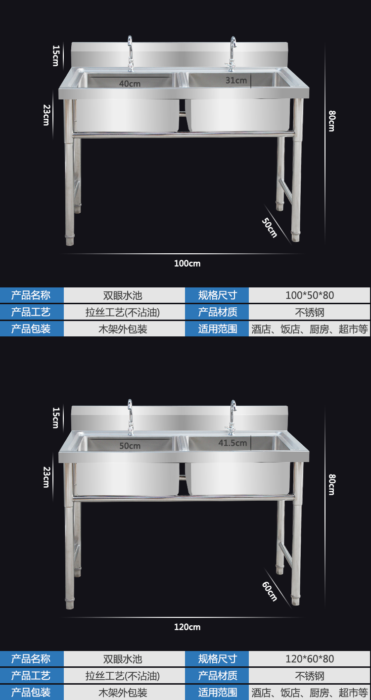 商用不锈钢水槽套餐洗手盆厨房双槽洗碗池双盆饭馆食堂洗菜盆水池