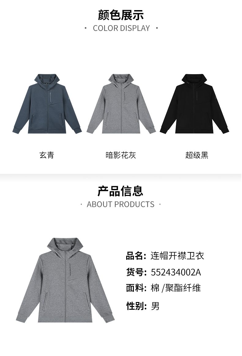 361卫衣外套男子春季新款运动跑步开衫连帽针织上衣
