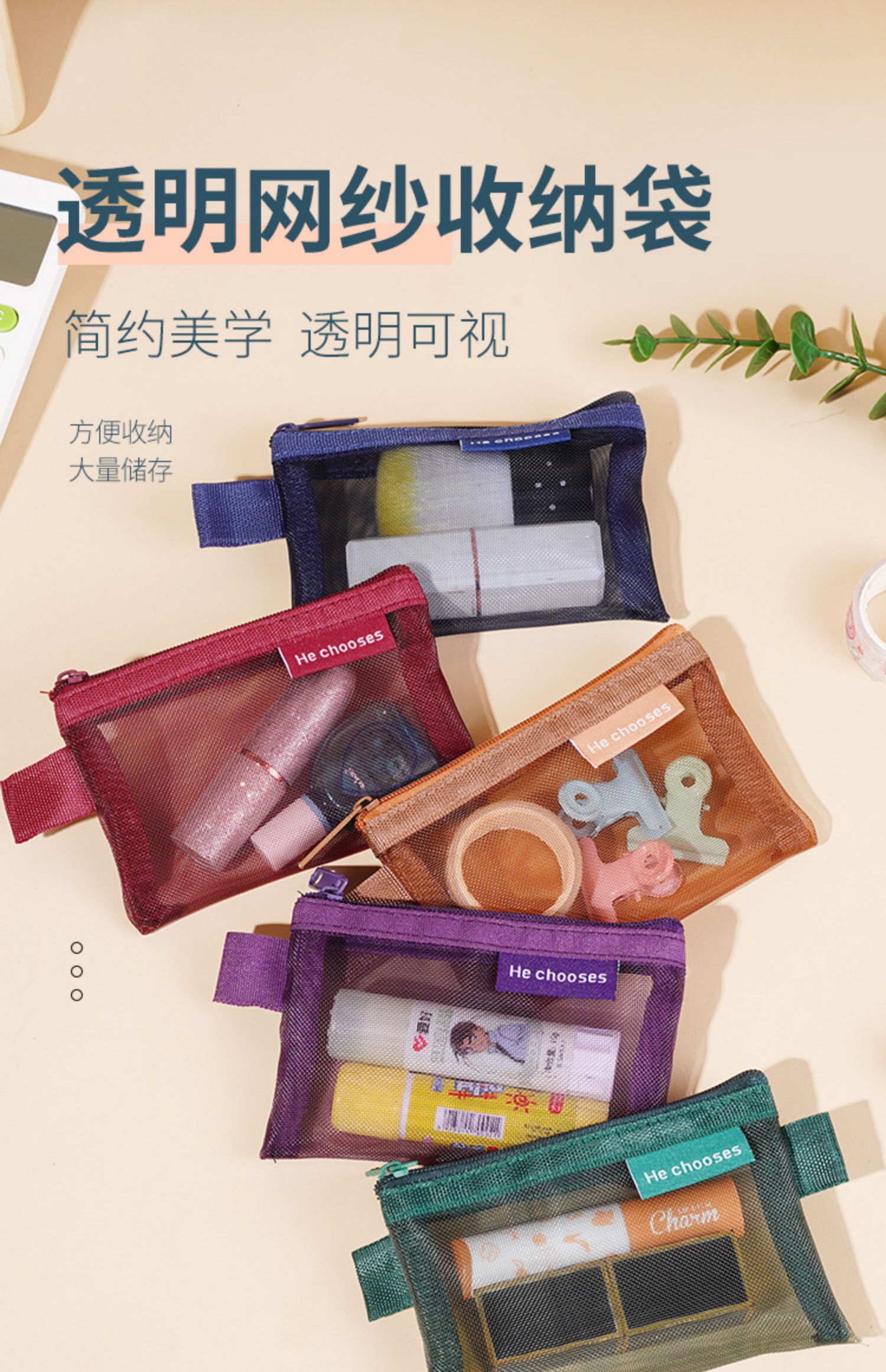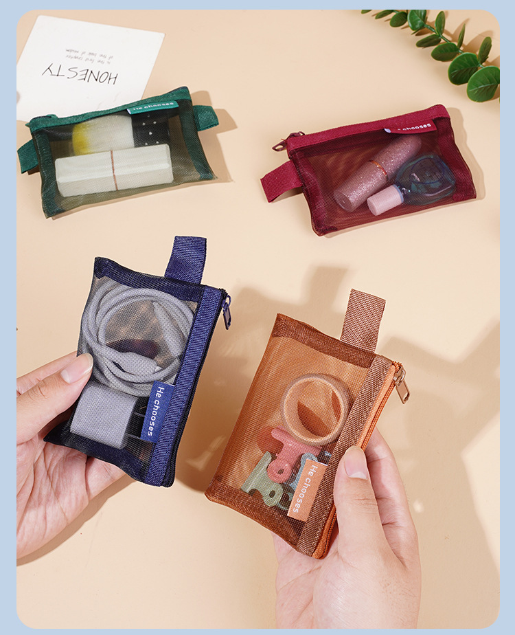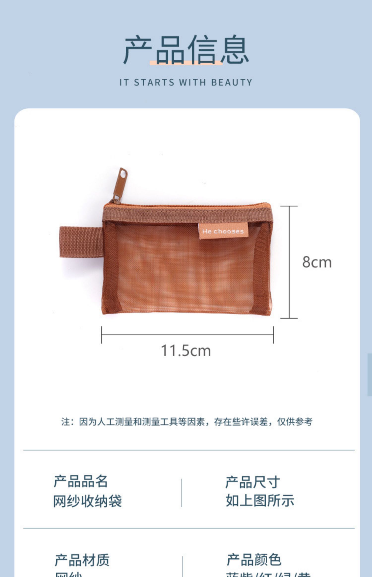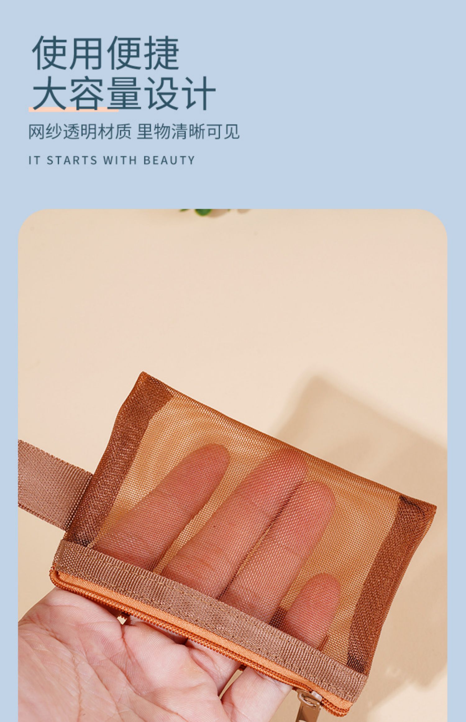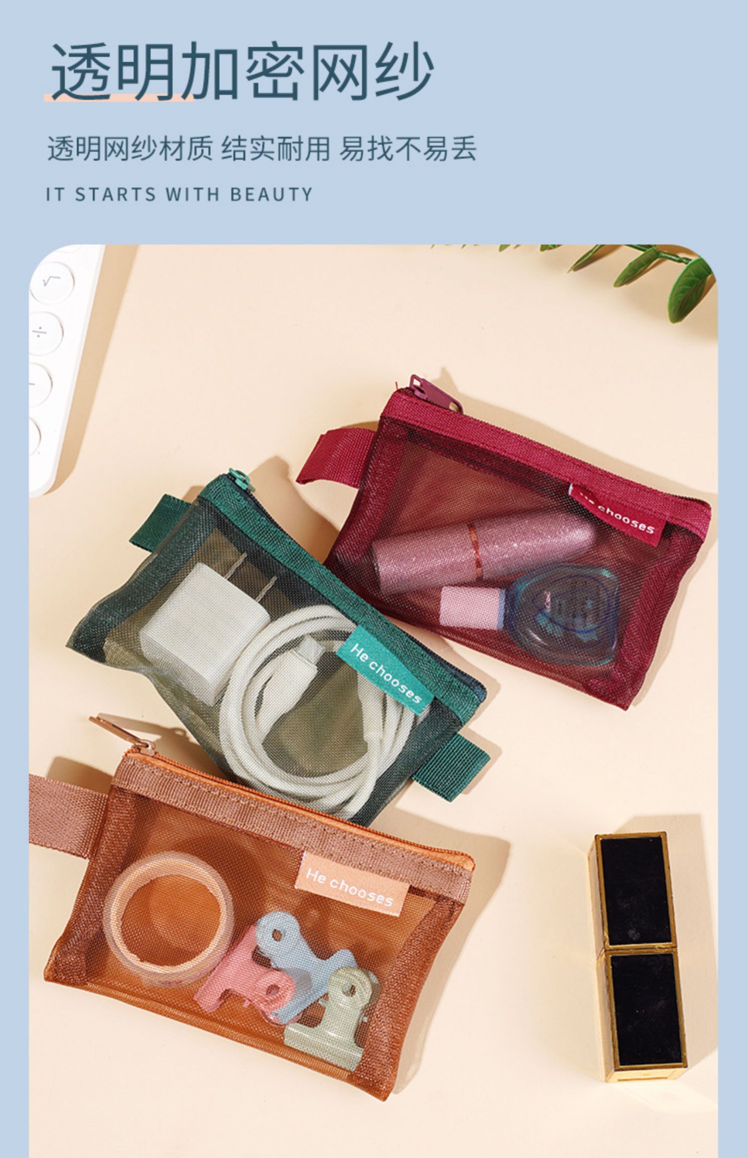 透明网纱收纳袋复古色零钱包分装卡片小包钥匙公交卡口红化妆品尼龙便携大容量时尚迷你身份证袋数据线耳机女