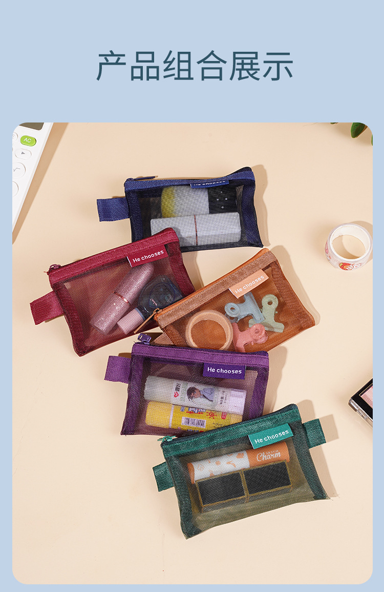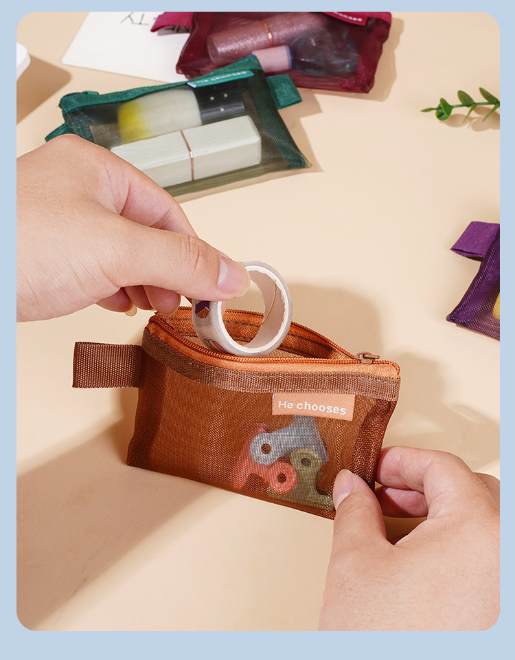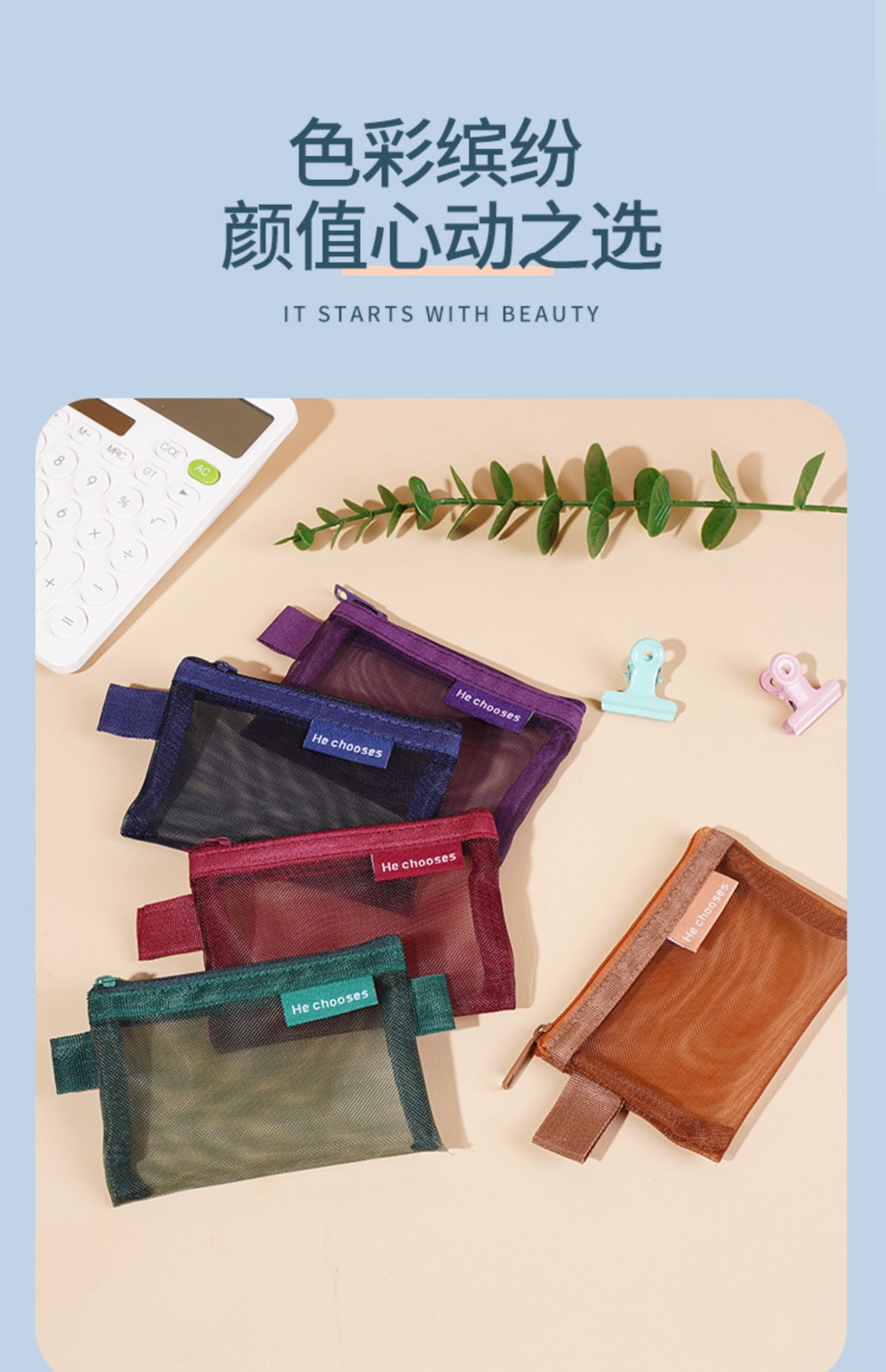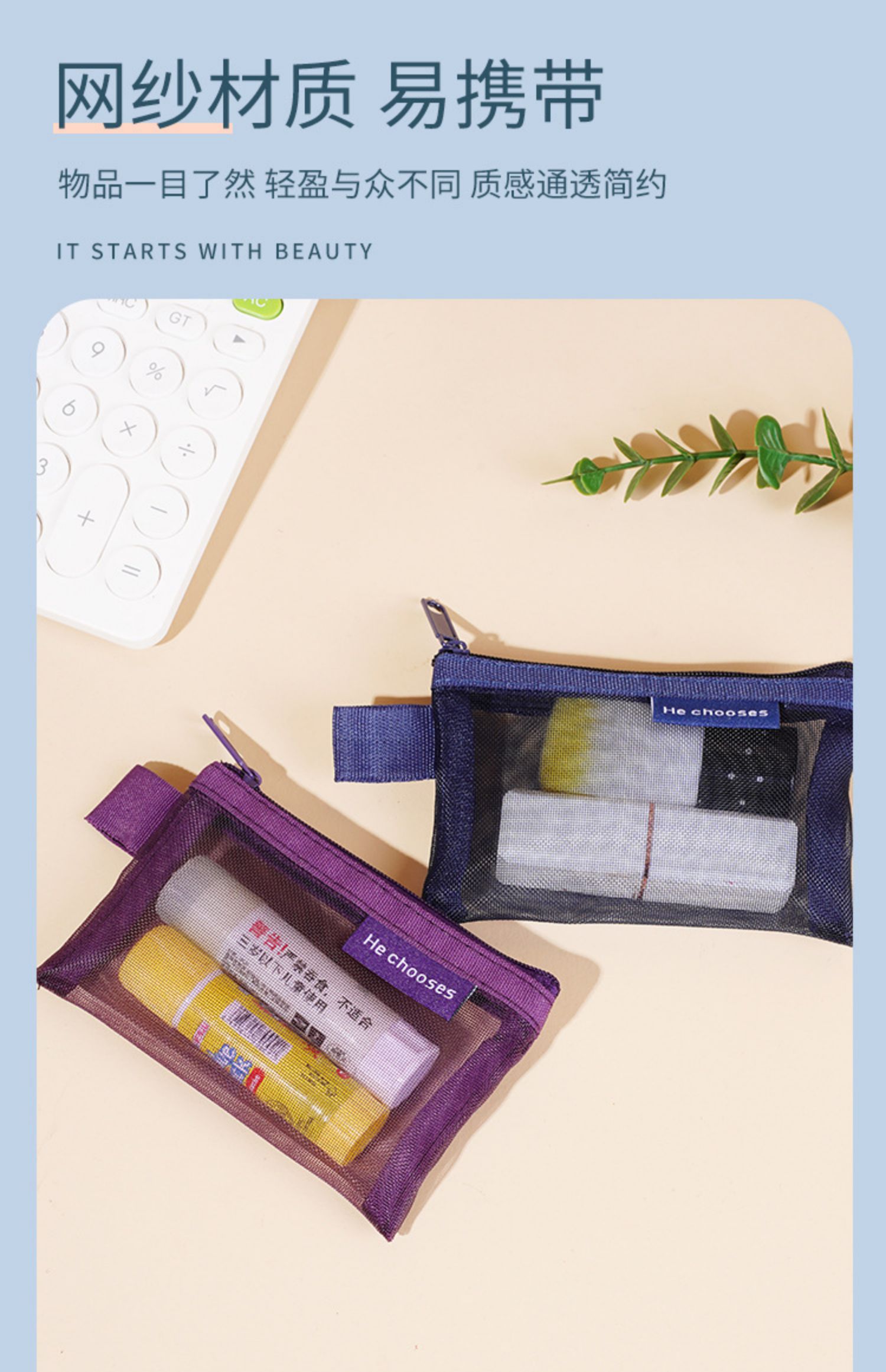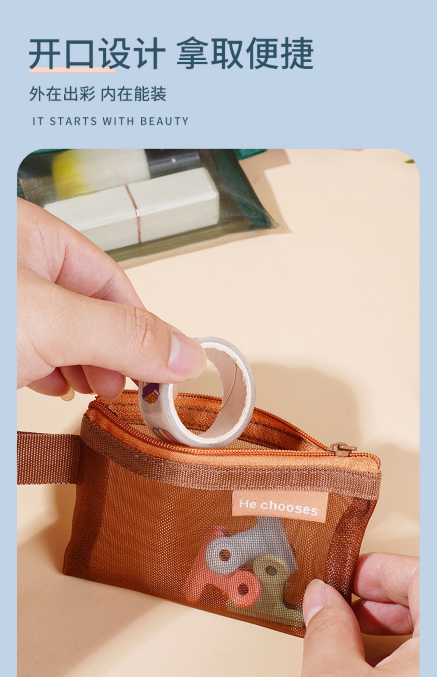 透明网纱收纳袋复古色零钱包分装卡片小包钥匙公交卡口红化妆品尼龙便携大容量时尚迷你身份证袋数据线耳机女