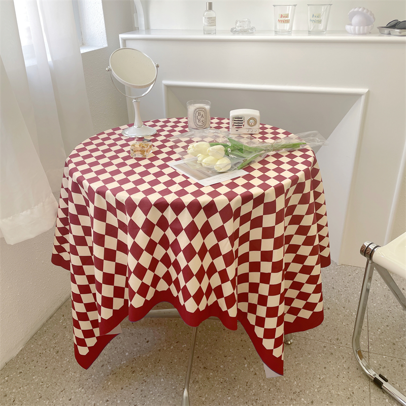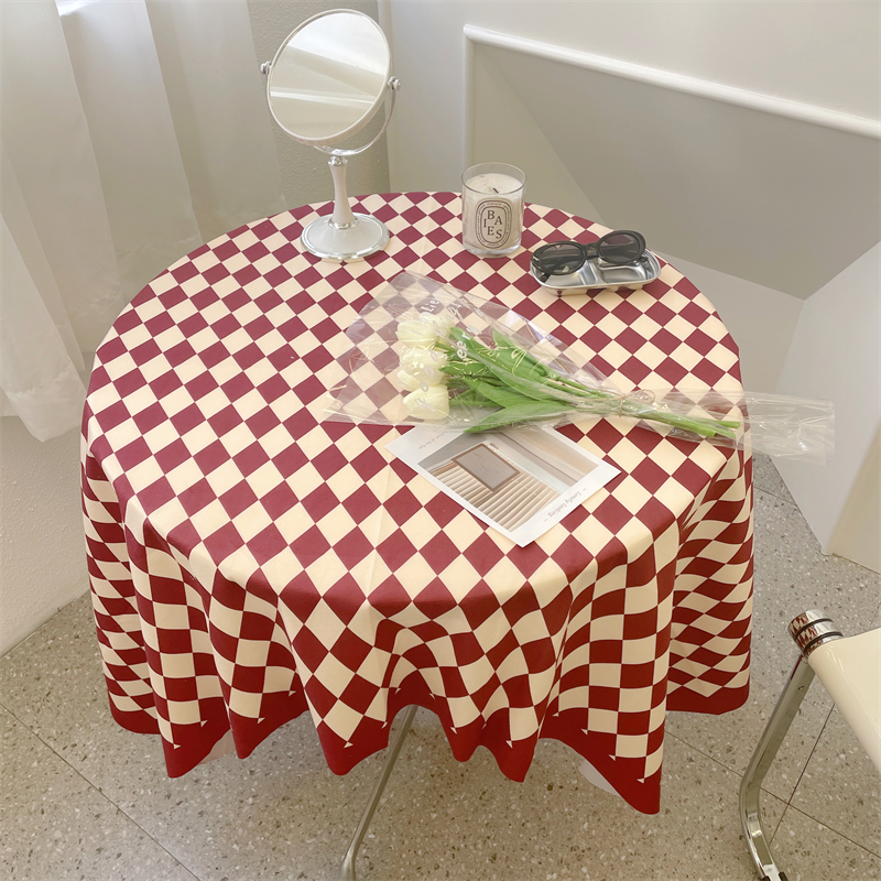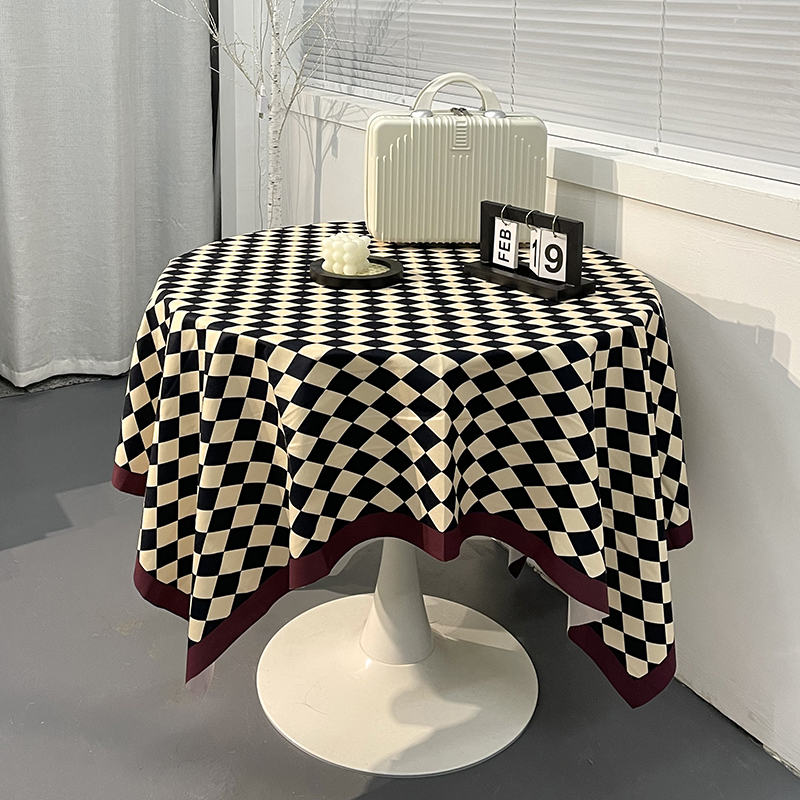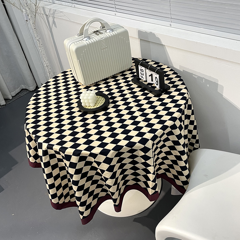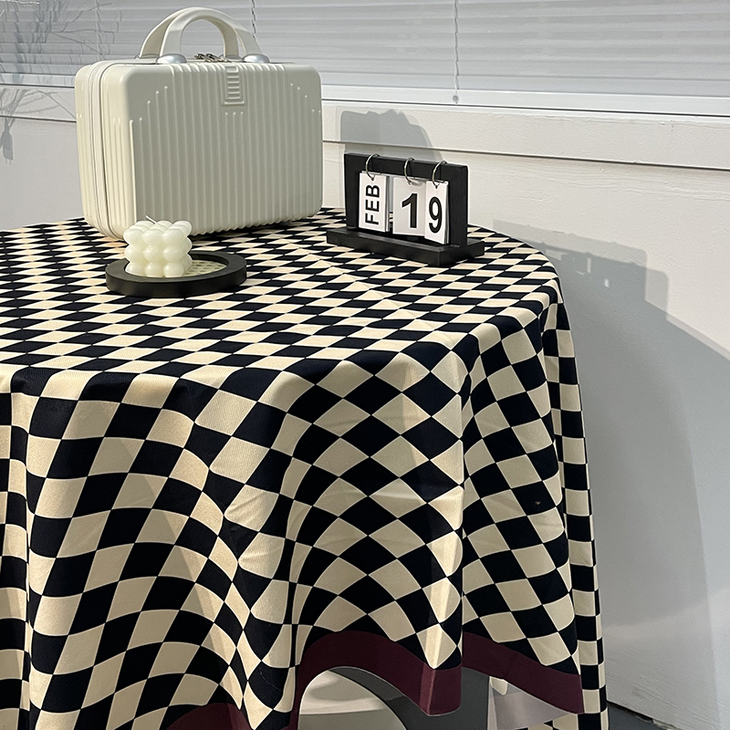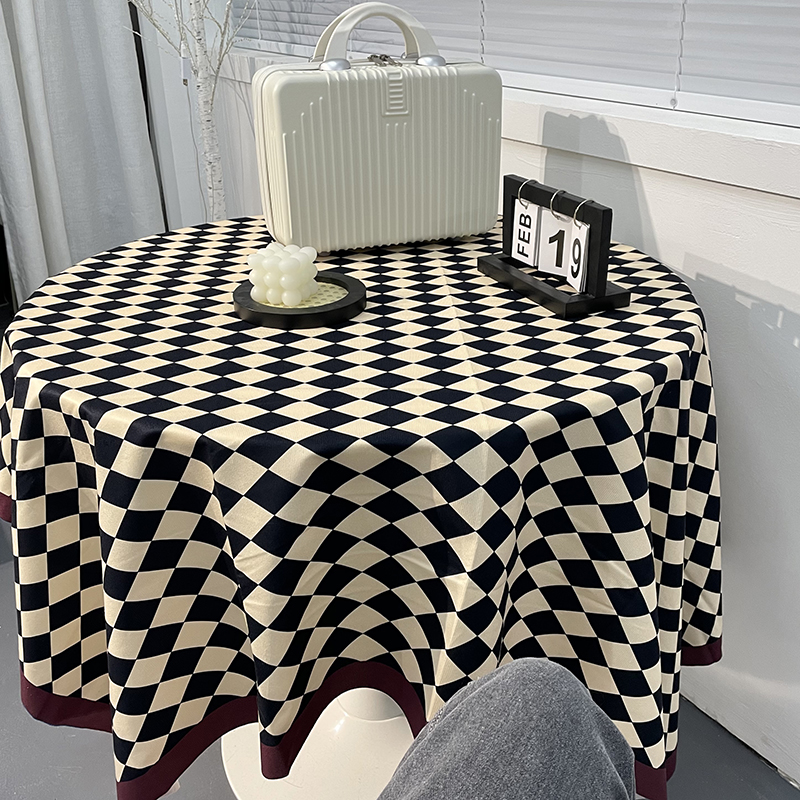 棋盘格桌布ins轻奢复古风长方形圆桌餐桌条纹格子茶几布台布桌垫