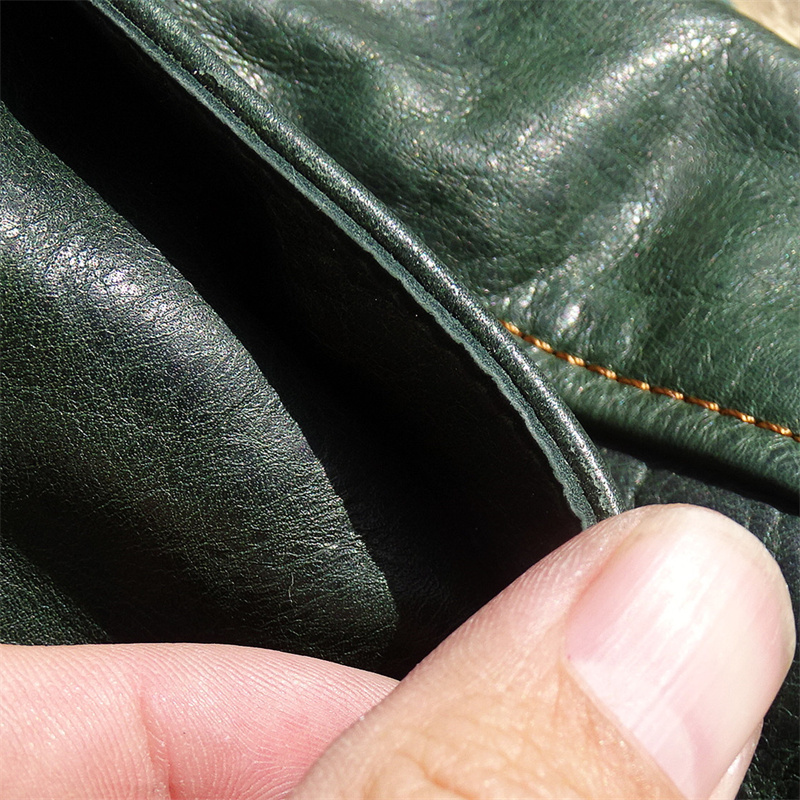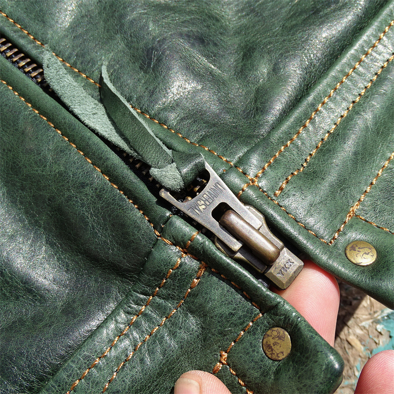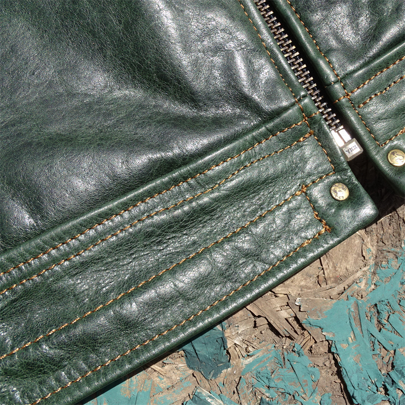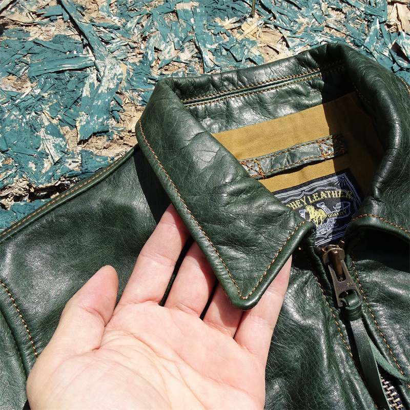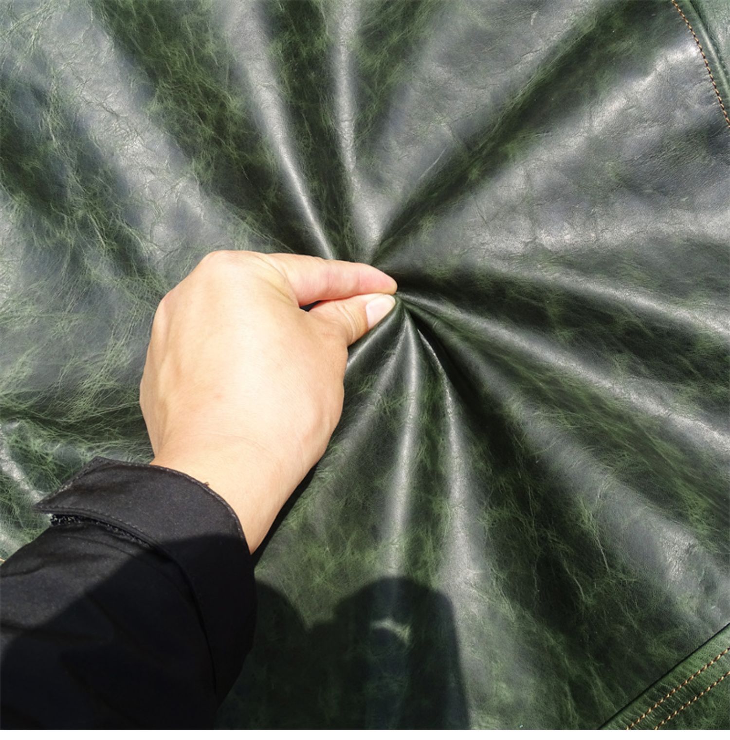 穆赫兰道原版!植鞣蜡染无涂油绿色小幼马皮真皮皮衣男翻领修身款