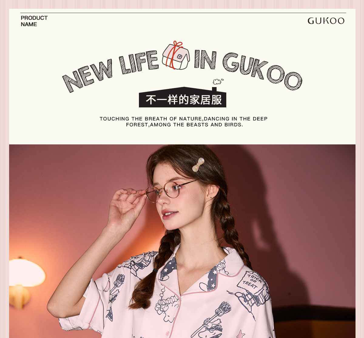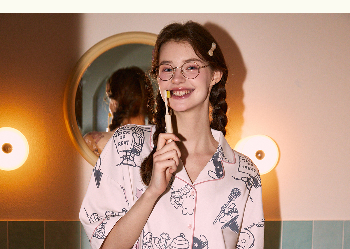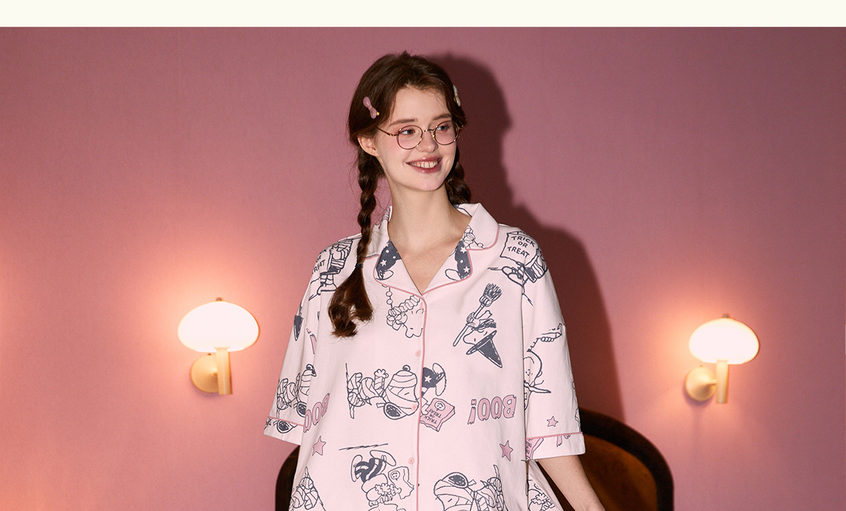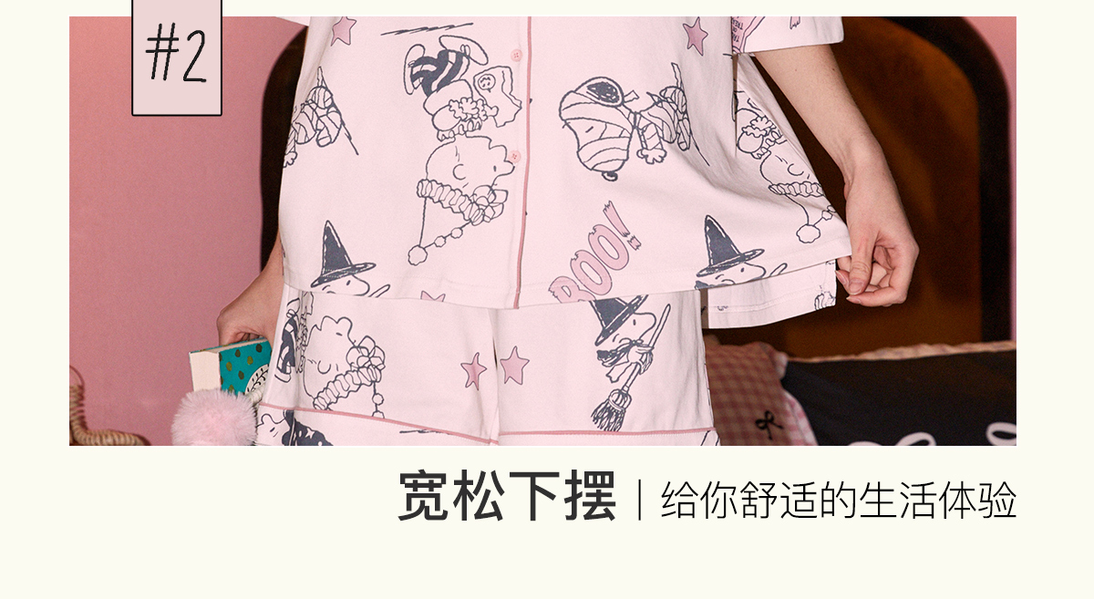 果壳睡衣女夏季史努比联名新款纯棉可爱家居服套装B