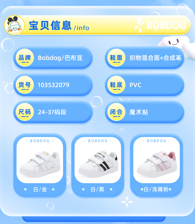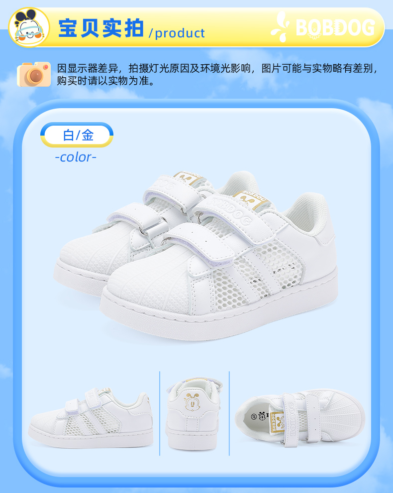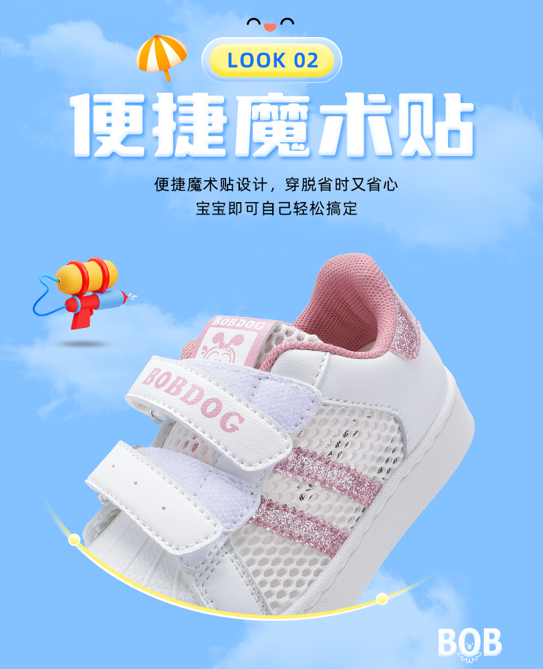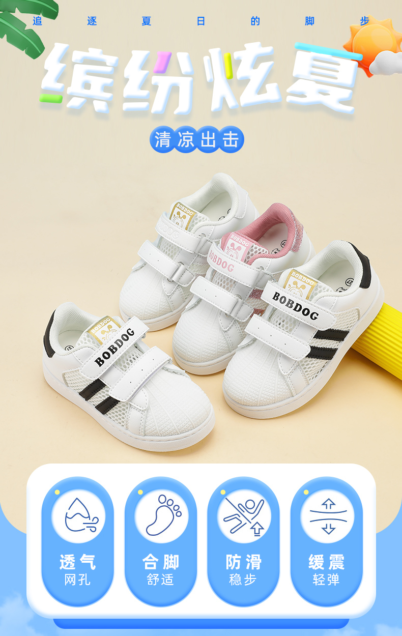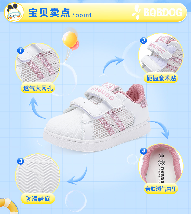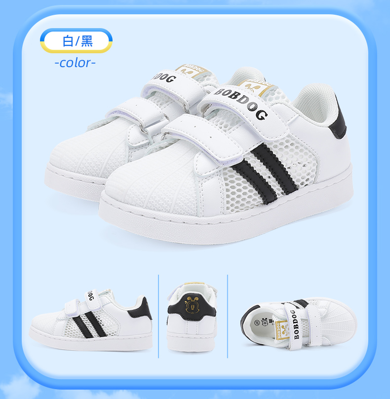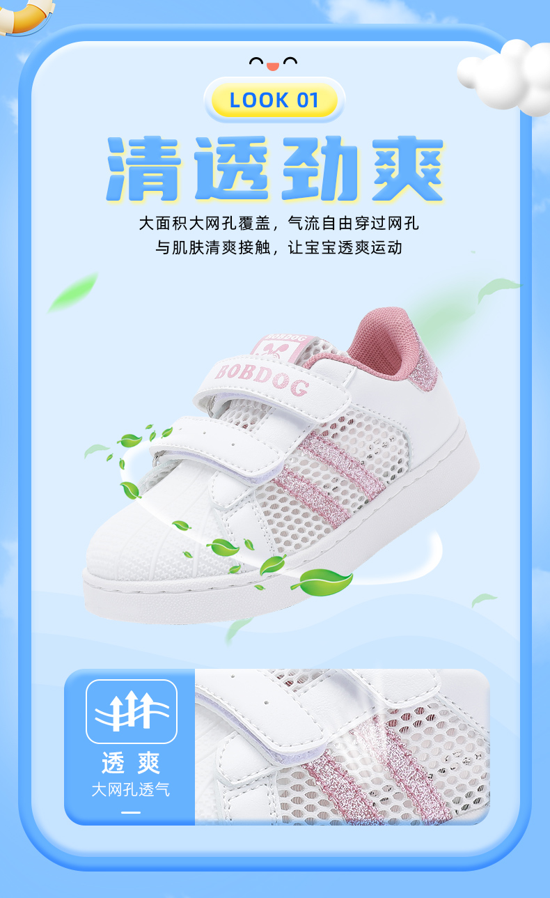 巴布豆童鞋儿童板鞋2025新款夏季透气网鞋女童小白鞋女孩运动鞋男