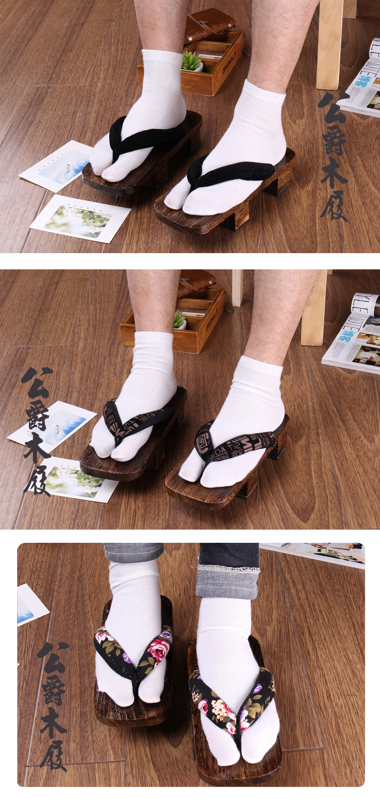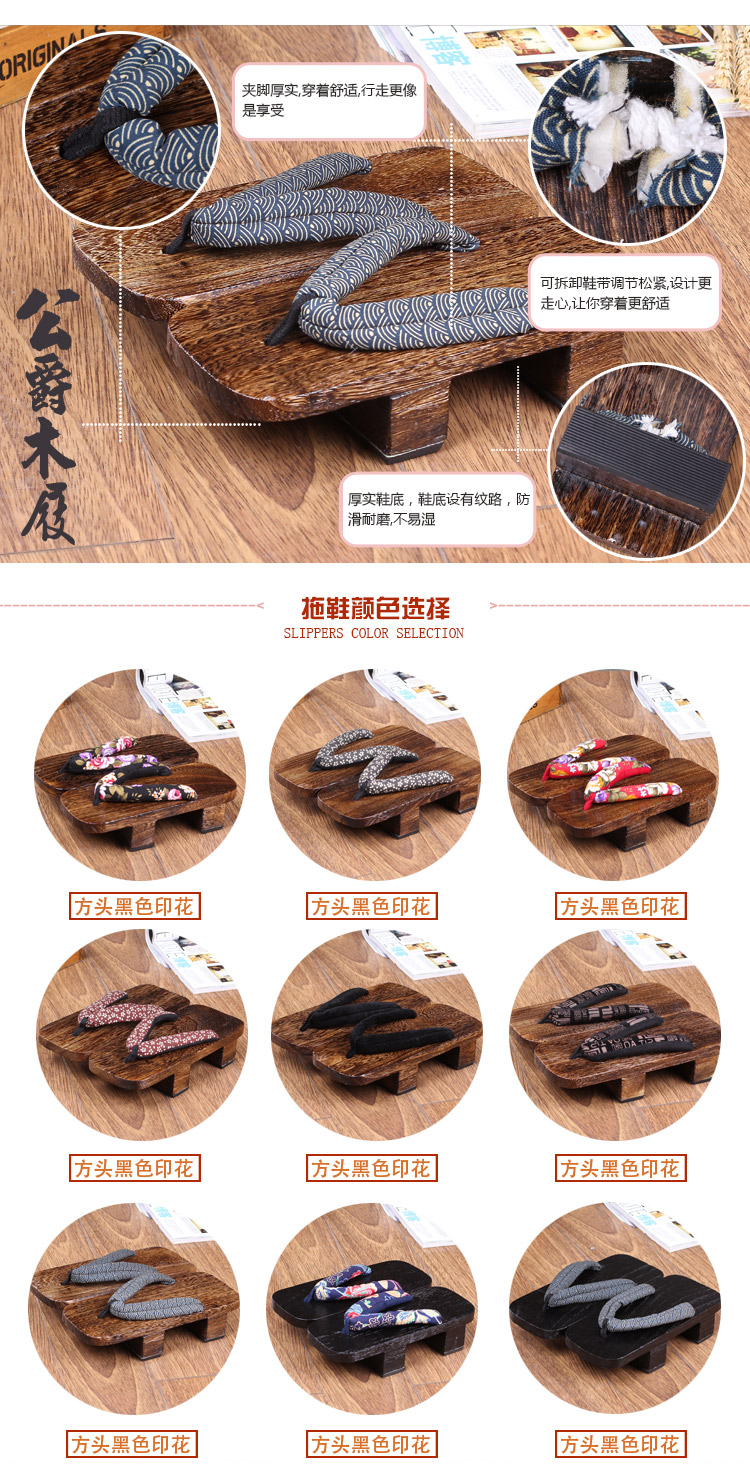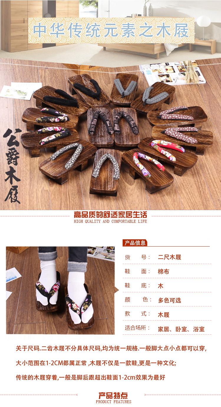 日本式传统男士款足底二齿和服木屐男宽板木拖鞋 木底夹脚 人字拖