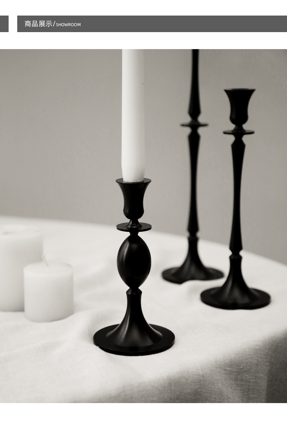 梵其法式复古黑色金属蜡烛烛台摆件家用浪漫高级感罗马柱烛台装饰