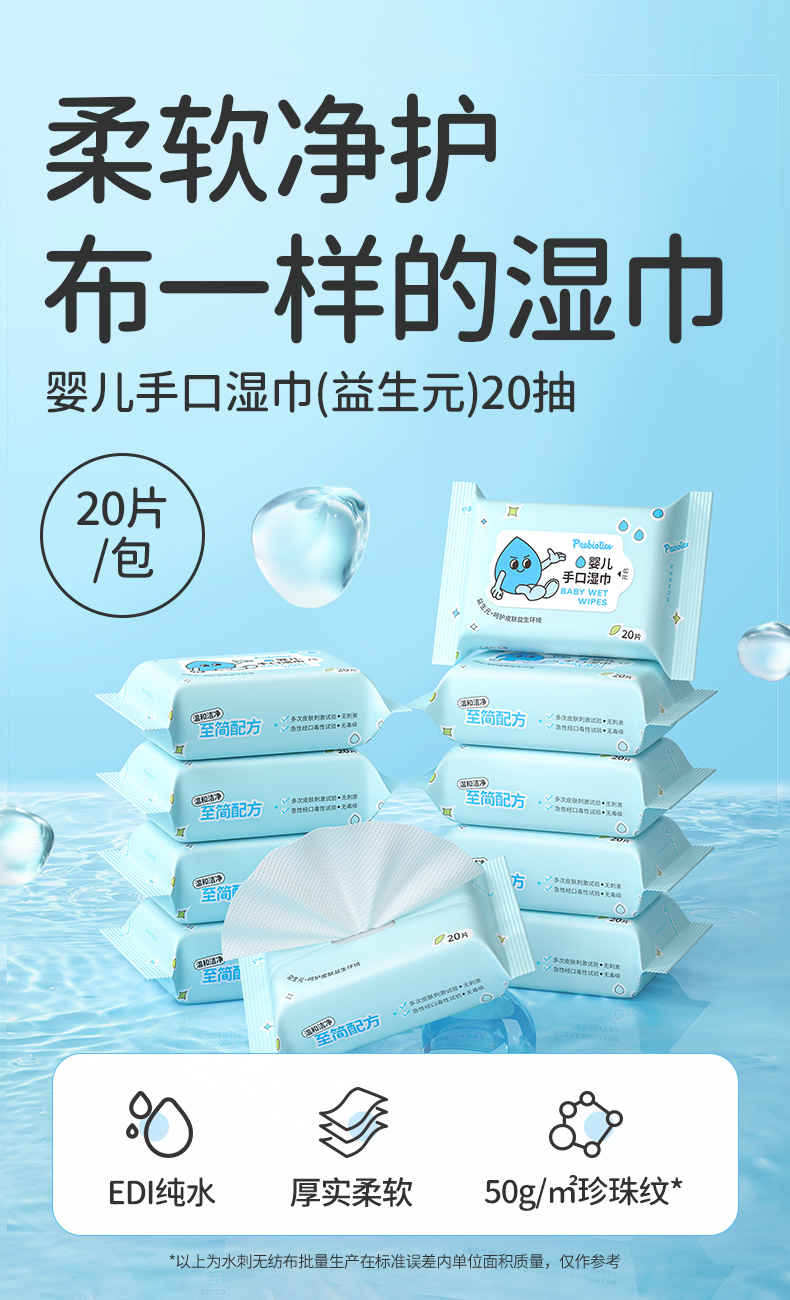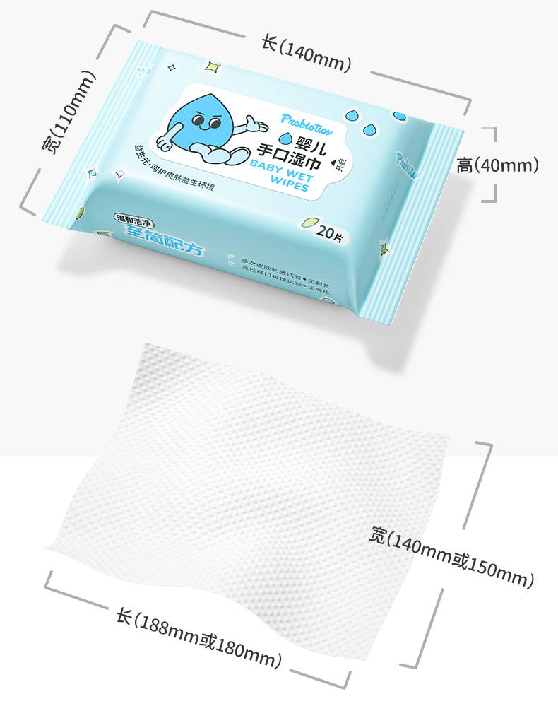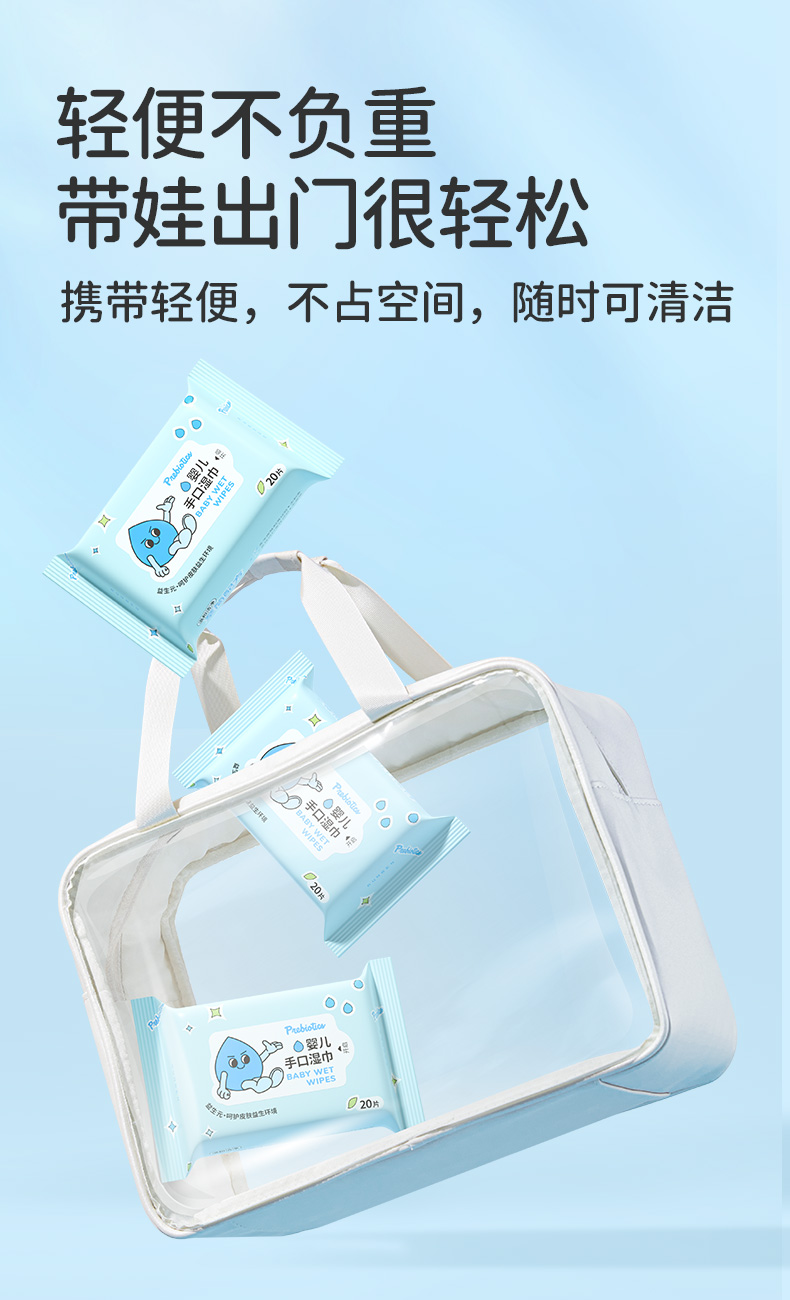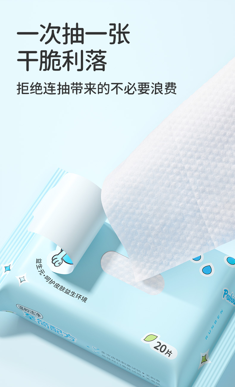 5包 润本新生婴儿手口湿巾20抽宝宝儿童家用便携屁屁用擦纸巾正品