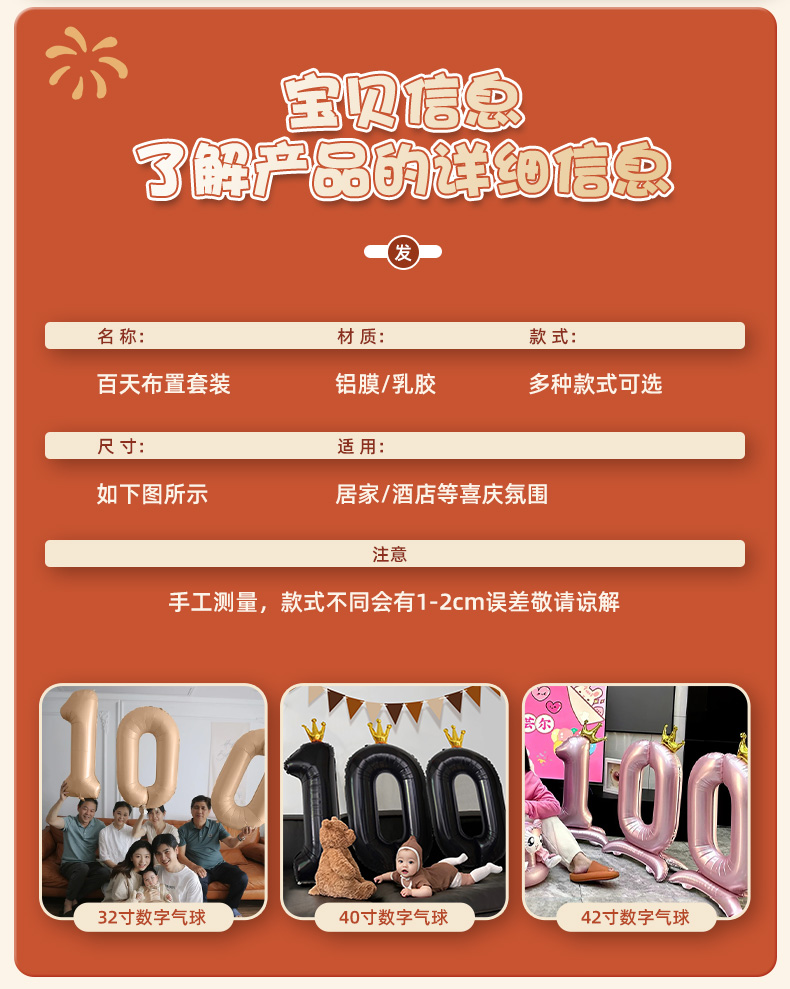 数字气球龙宝宝100天百岁百日宴装饰布置婴儿拍照道具百天照家里