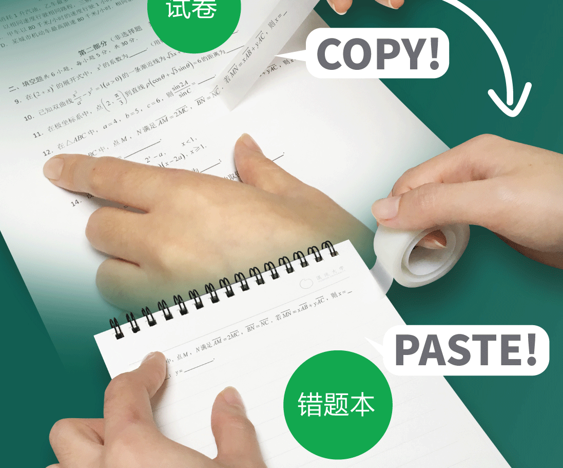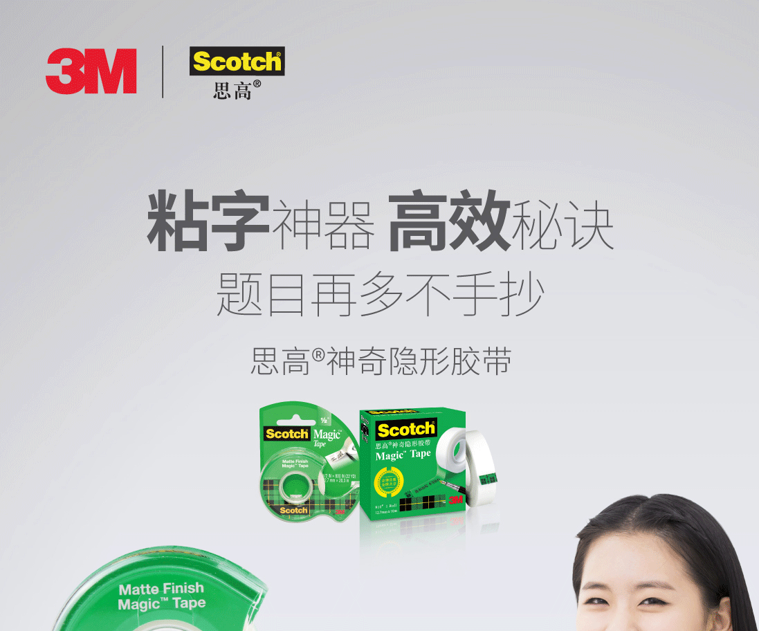 3M思高隐形胶带复印错题胶带粘贴复印学生用手账透明磨砂无痕改错贴纸学霸笔记免抄题复印纠错胶带