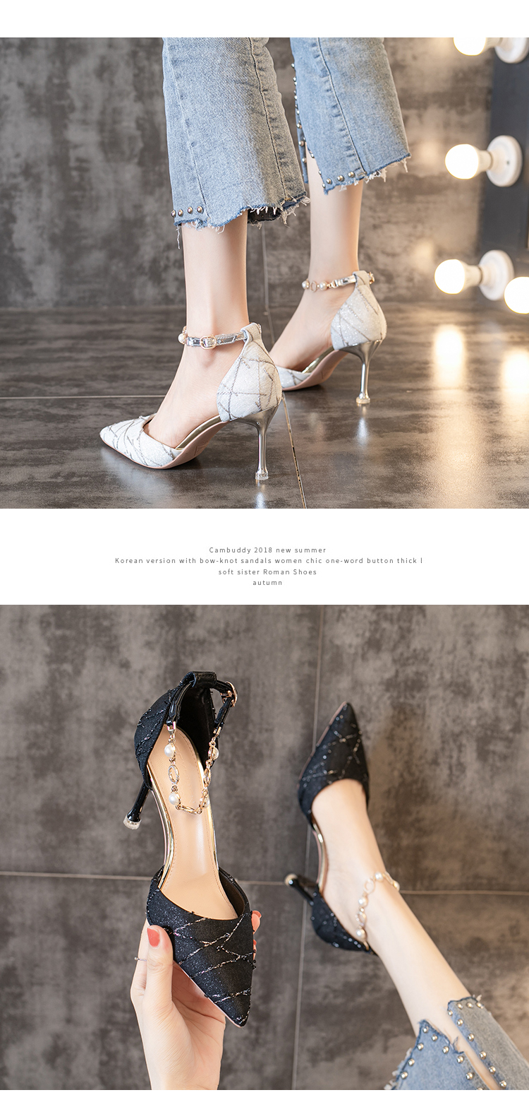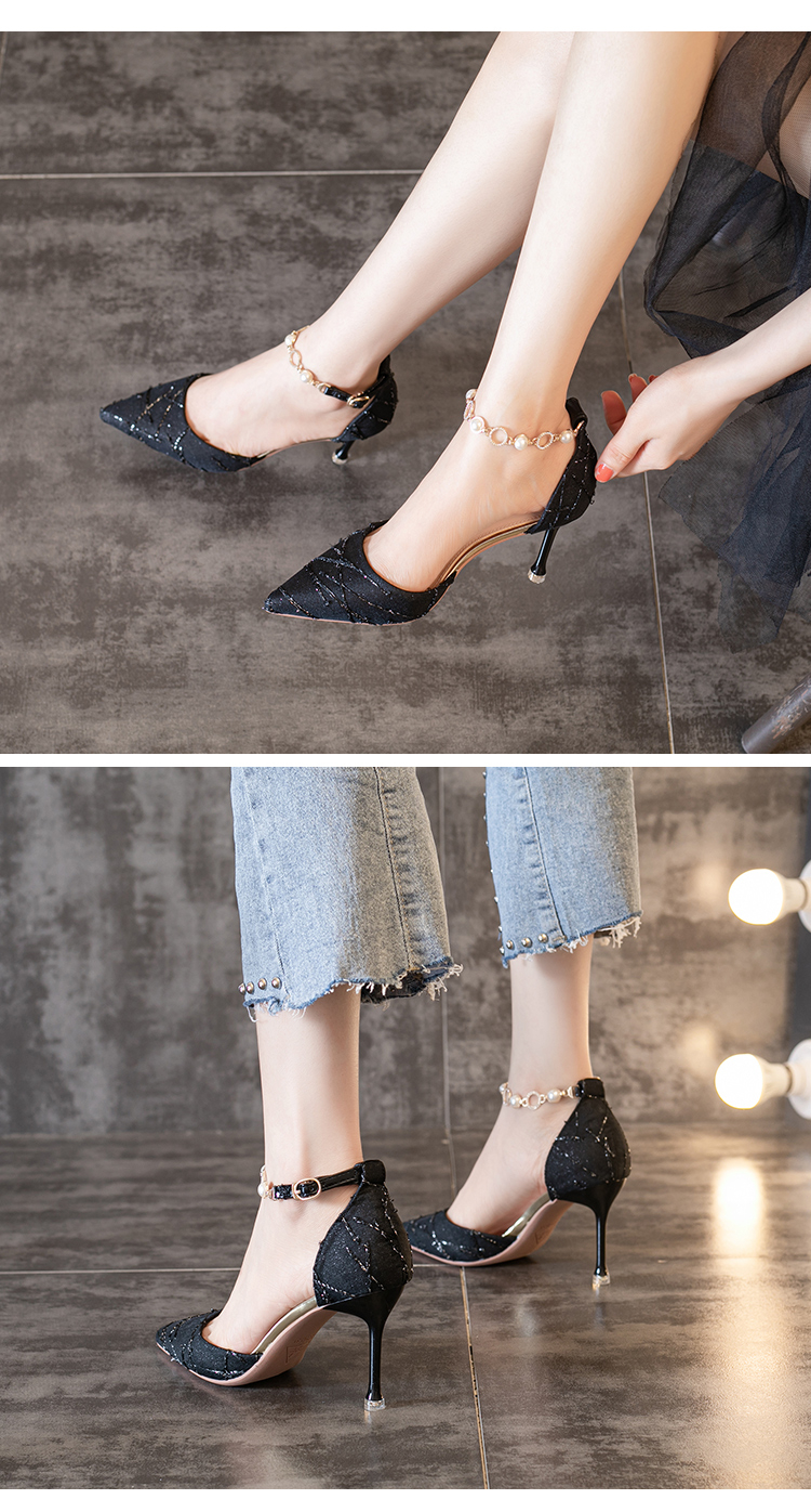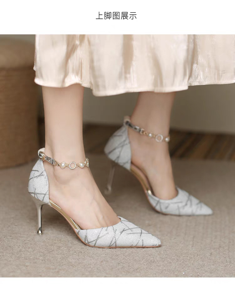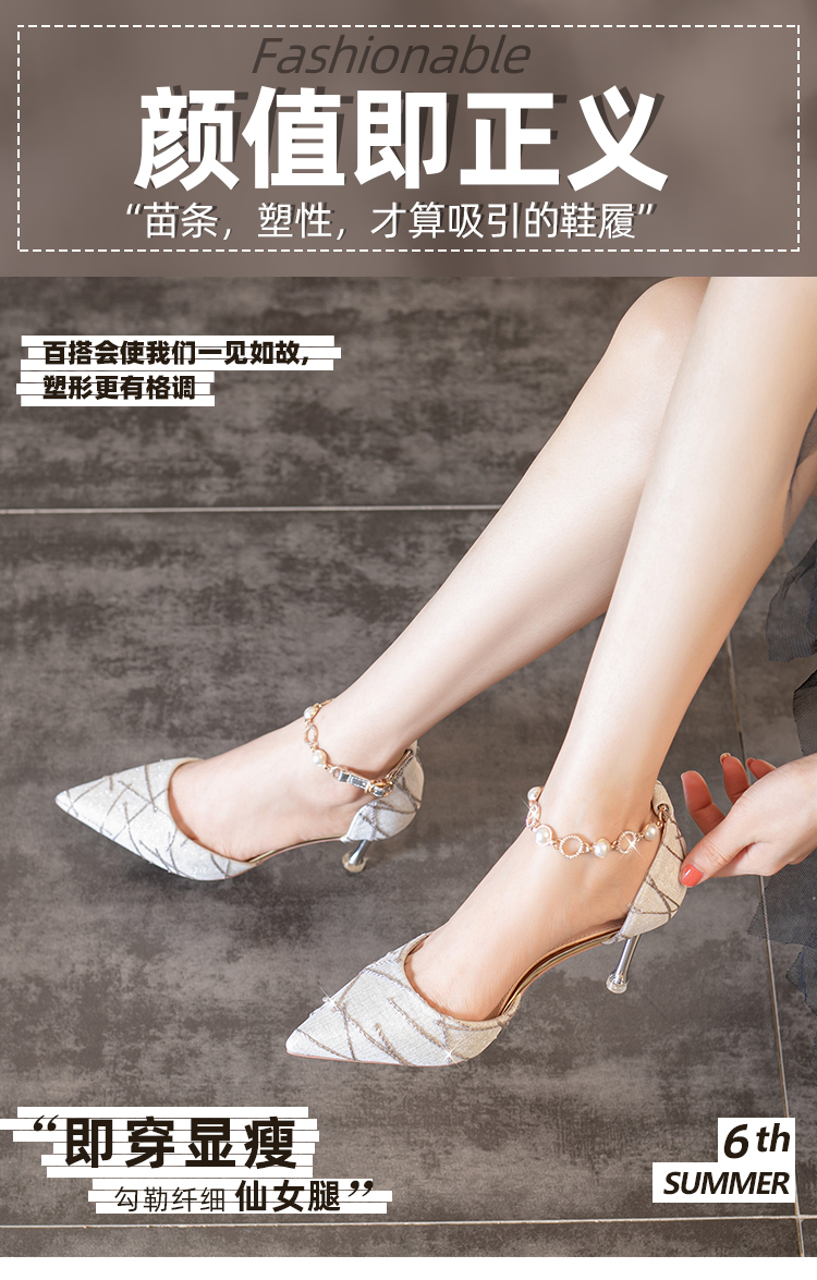 高跟鞋女夏2025年新款性感尖头中空气质名媛法式细跟一字扣女凉鞋