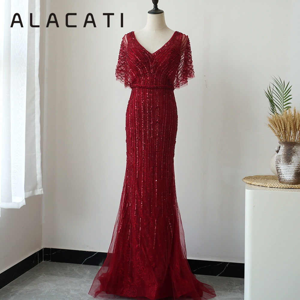 2020新款晚礼服女 高端大气 遮手臂 显瘦气场优雅女王V领重工鱼尾