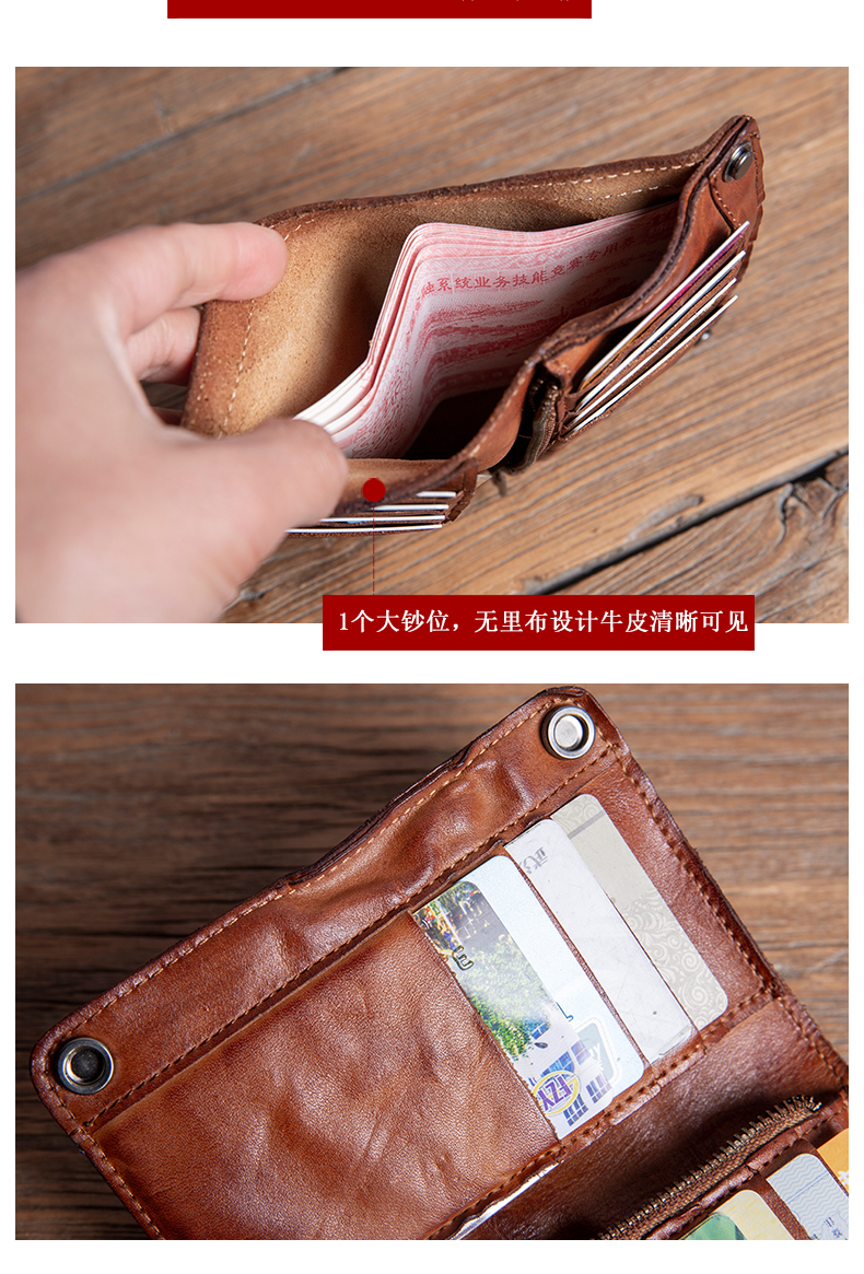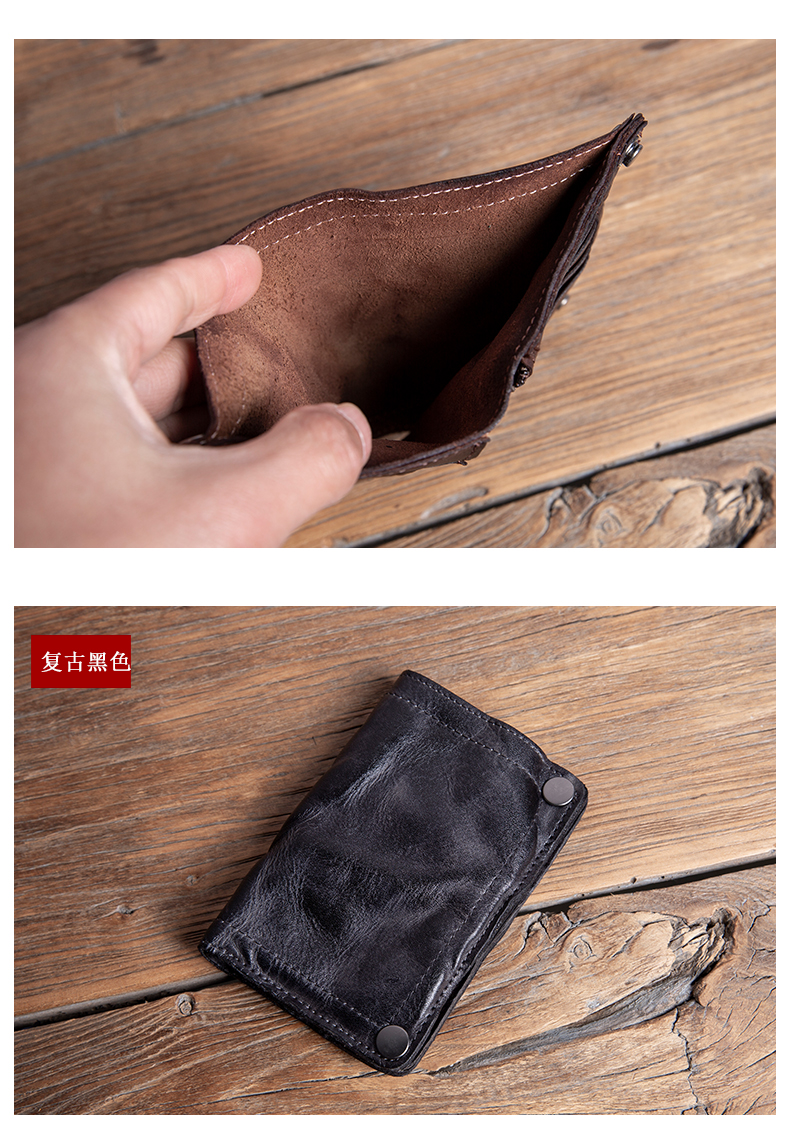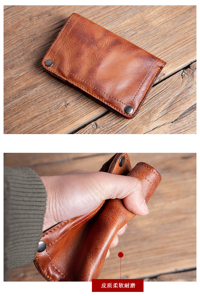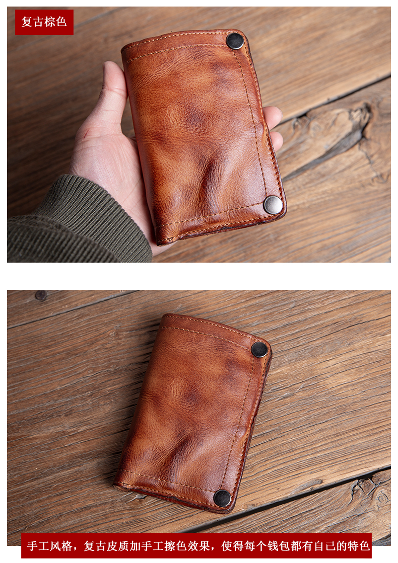 复古手工钱包男真皮短款拉链小众设计高级感潮牌头层牛皮竖款皮夹