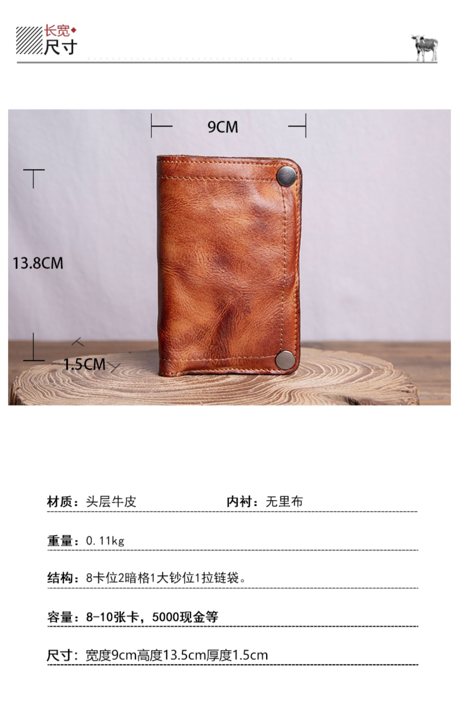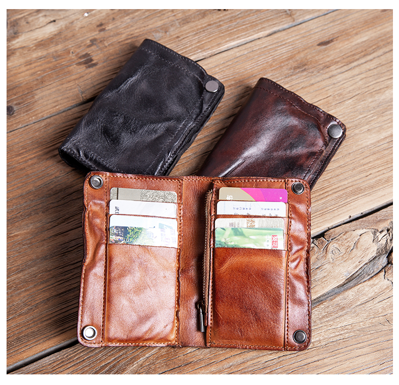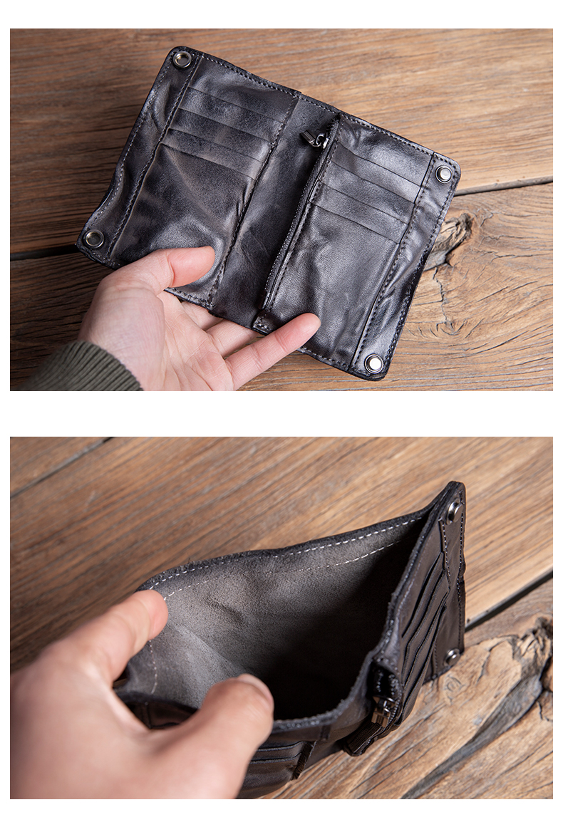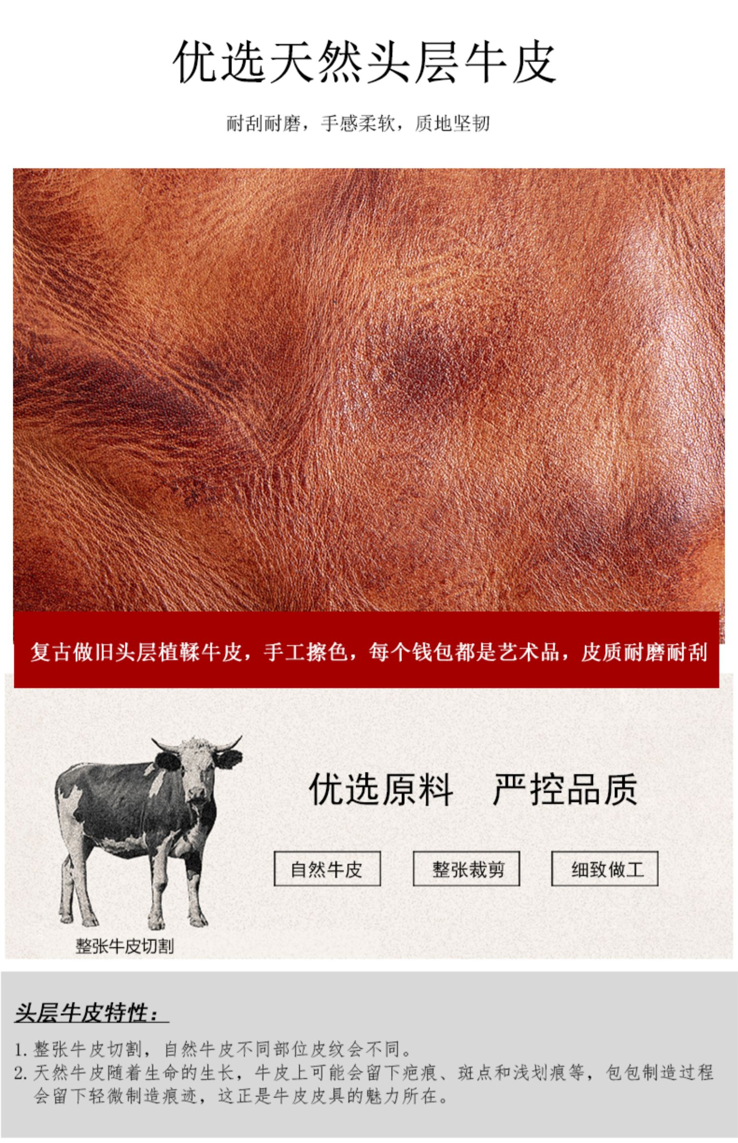 复古手工钱包男真皮短款拉链小众设计高级感潮牌头层牛皮竖款皮夹
