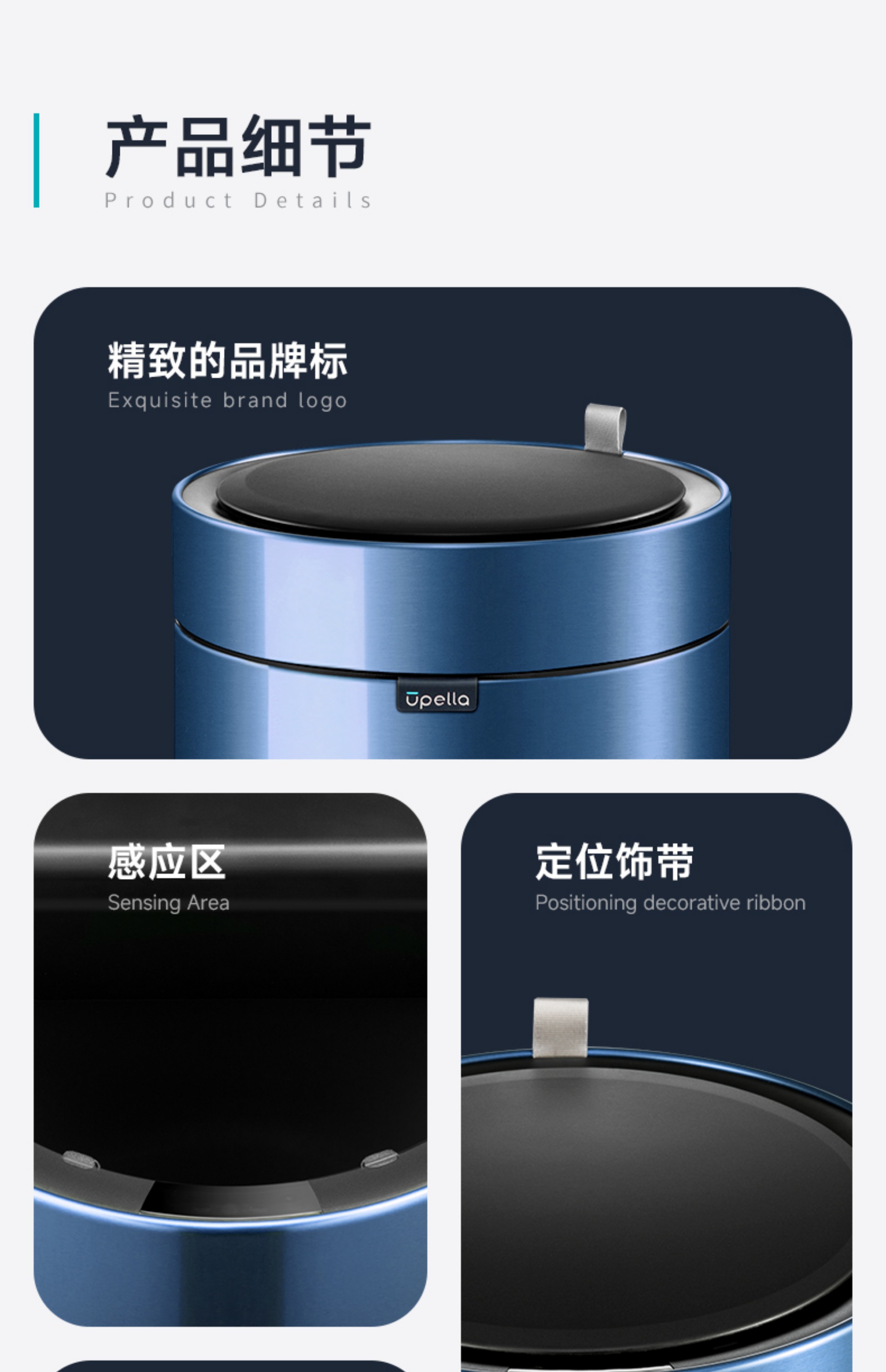 优百纳轻奢智能自动感应垃圾桶家用不锈钢客厅厨房卫生间卧室