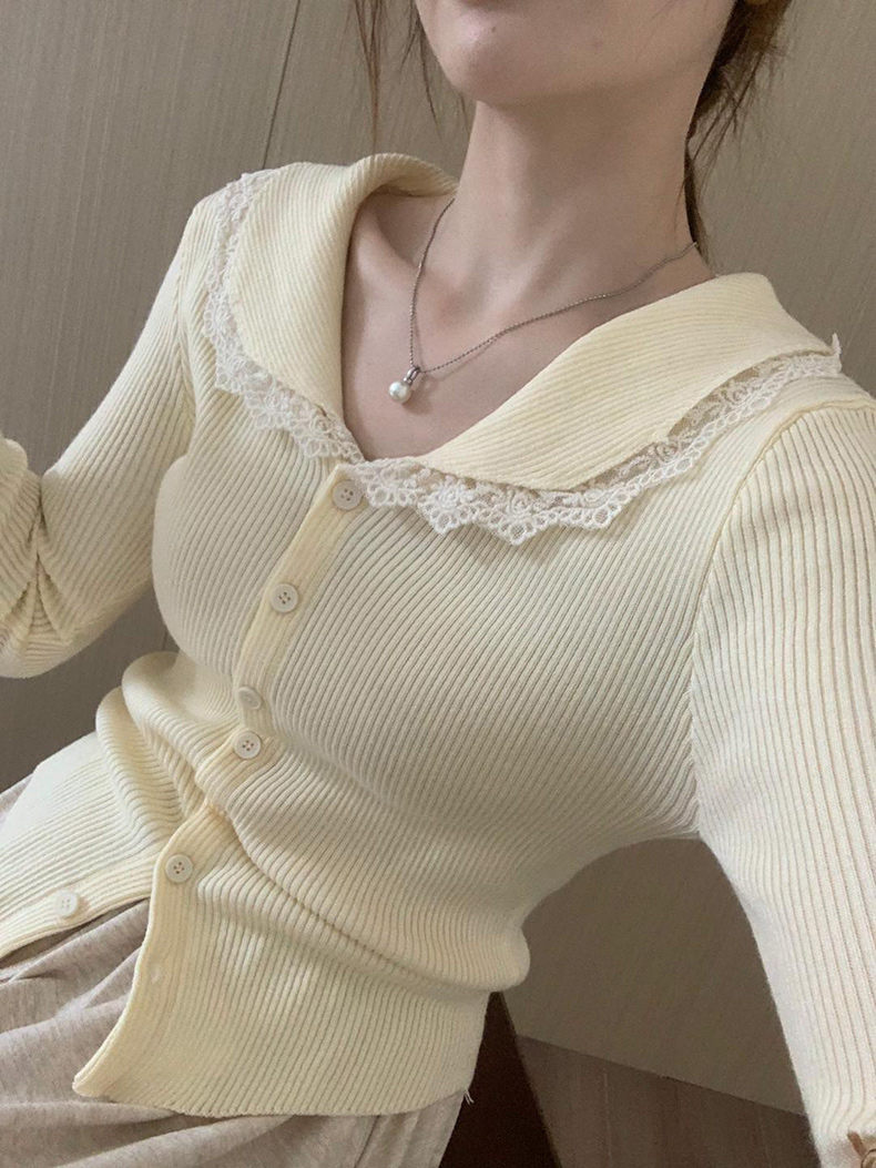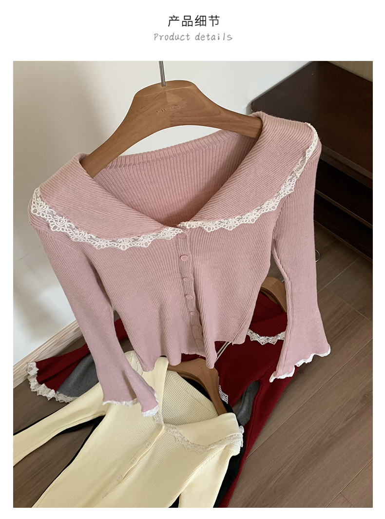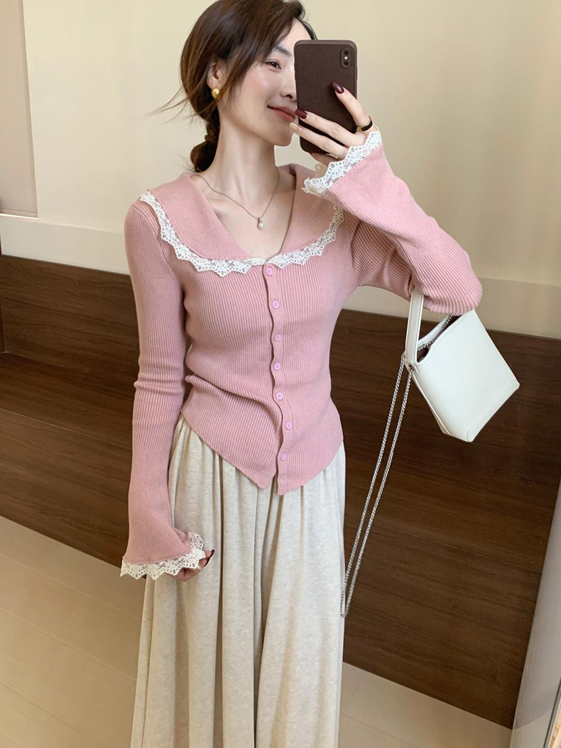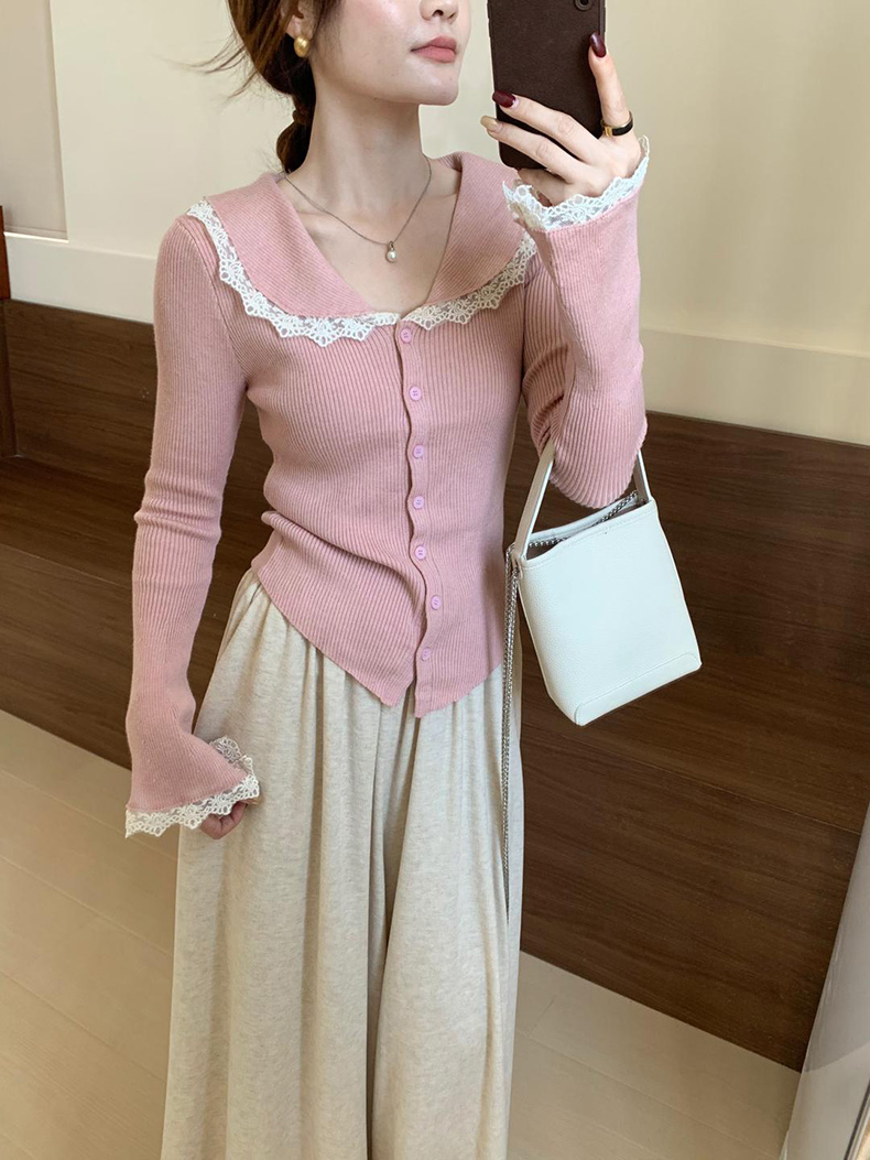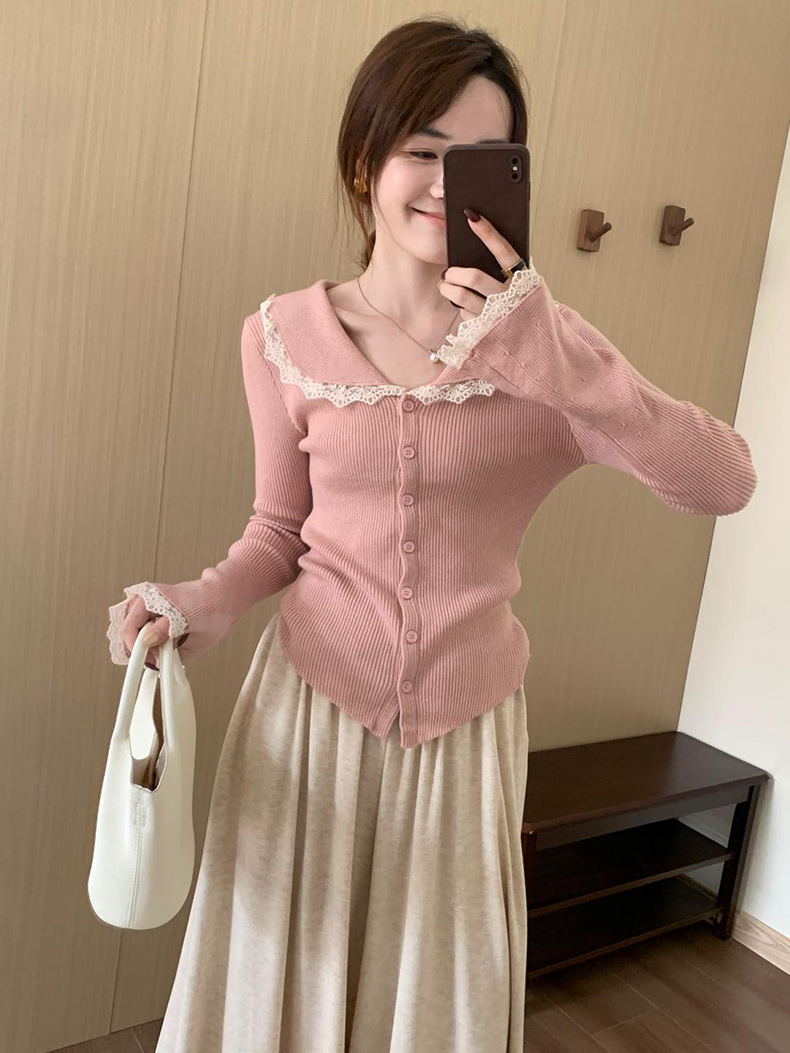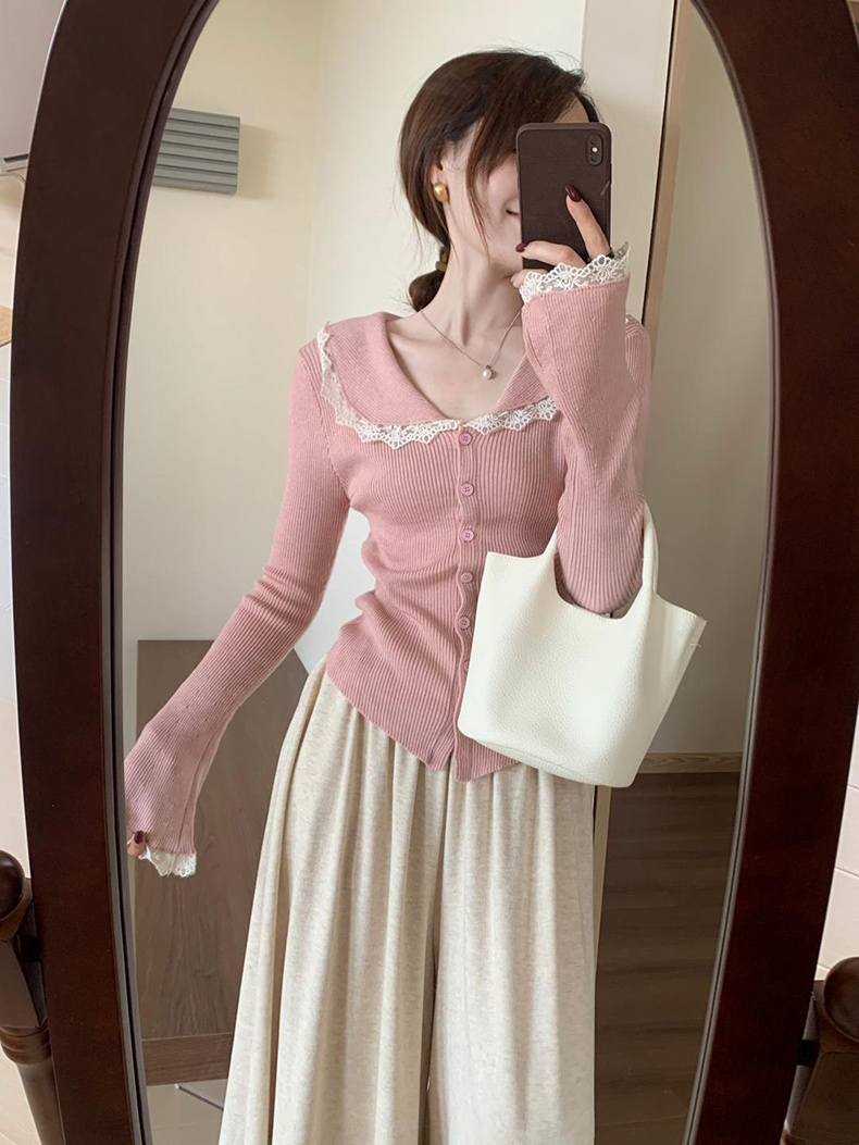粉色针织开衫女娃娃领春秋冬内搭2025新款花边高级感毛衣打底上衣