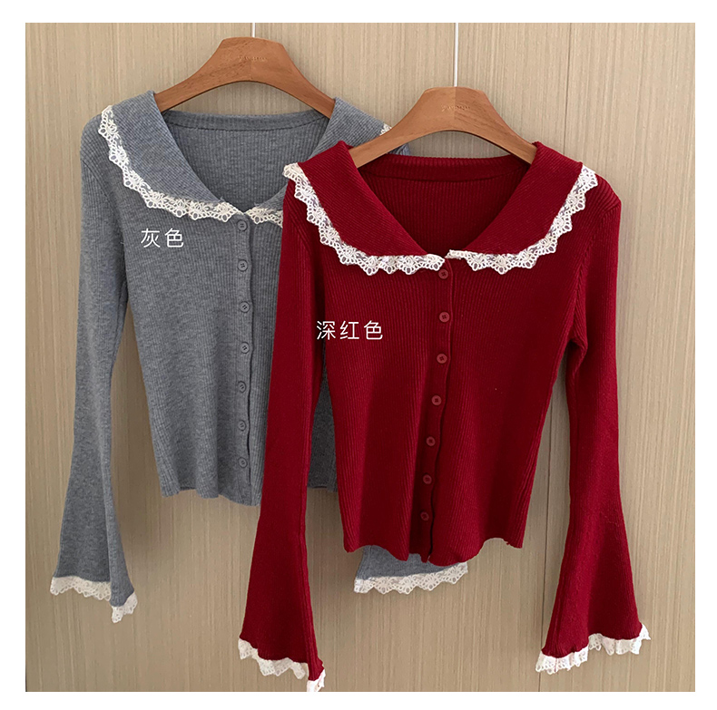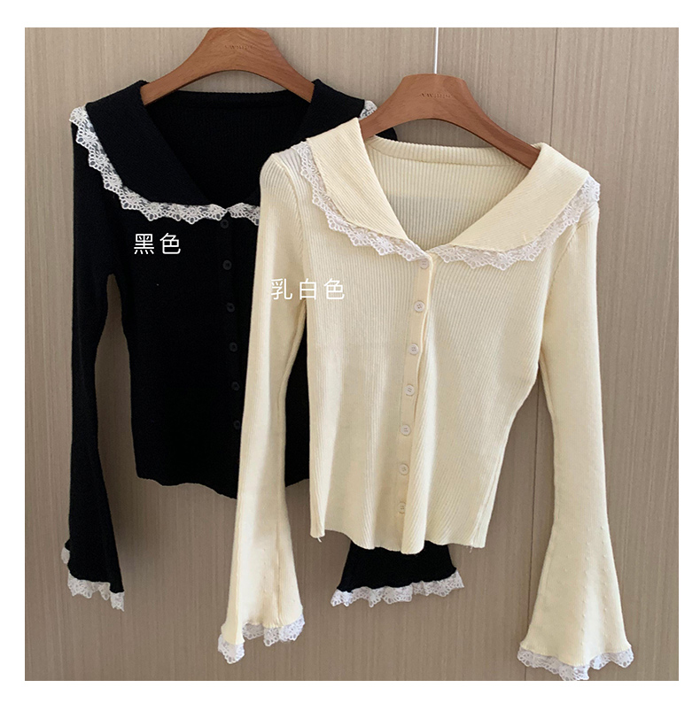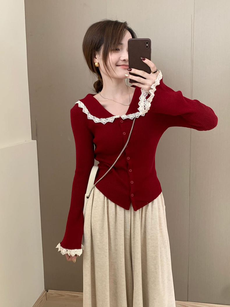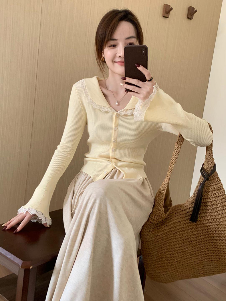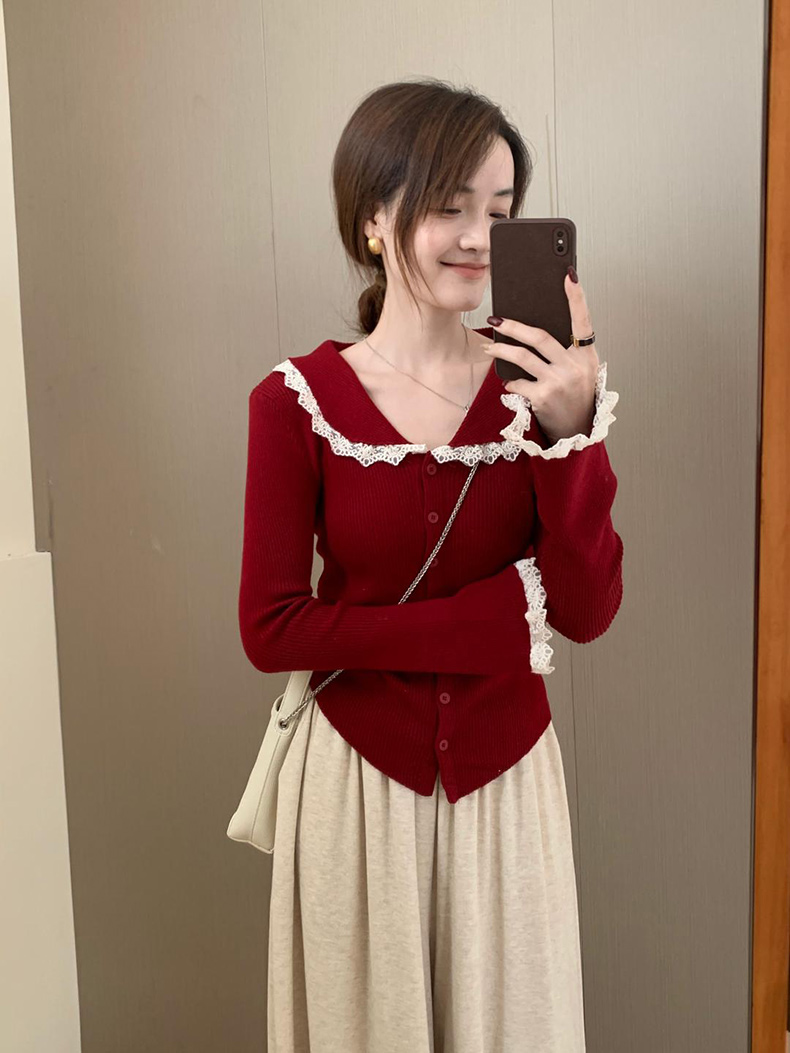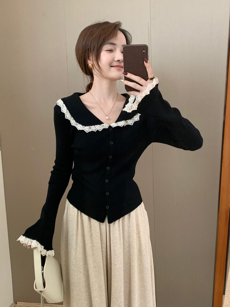 粉色针织开衫女娃娃领春秋冬内搭2025新款花边高级感毛衣打底上衣
