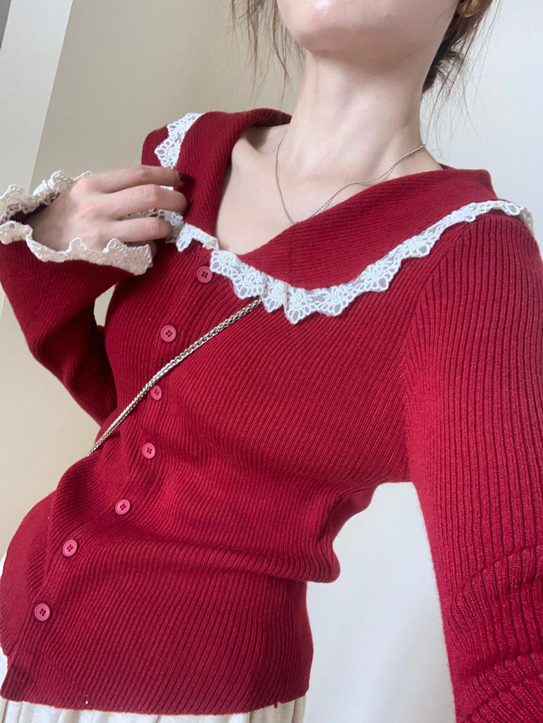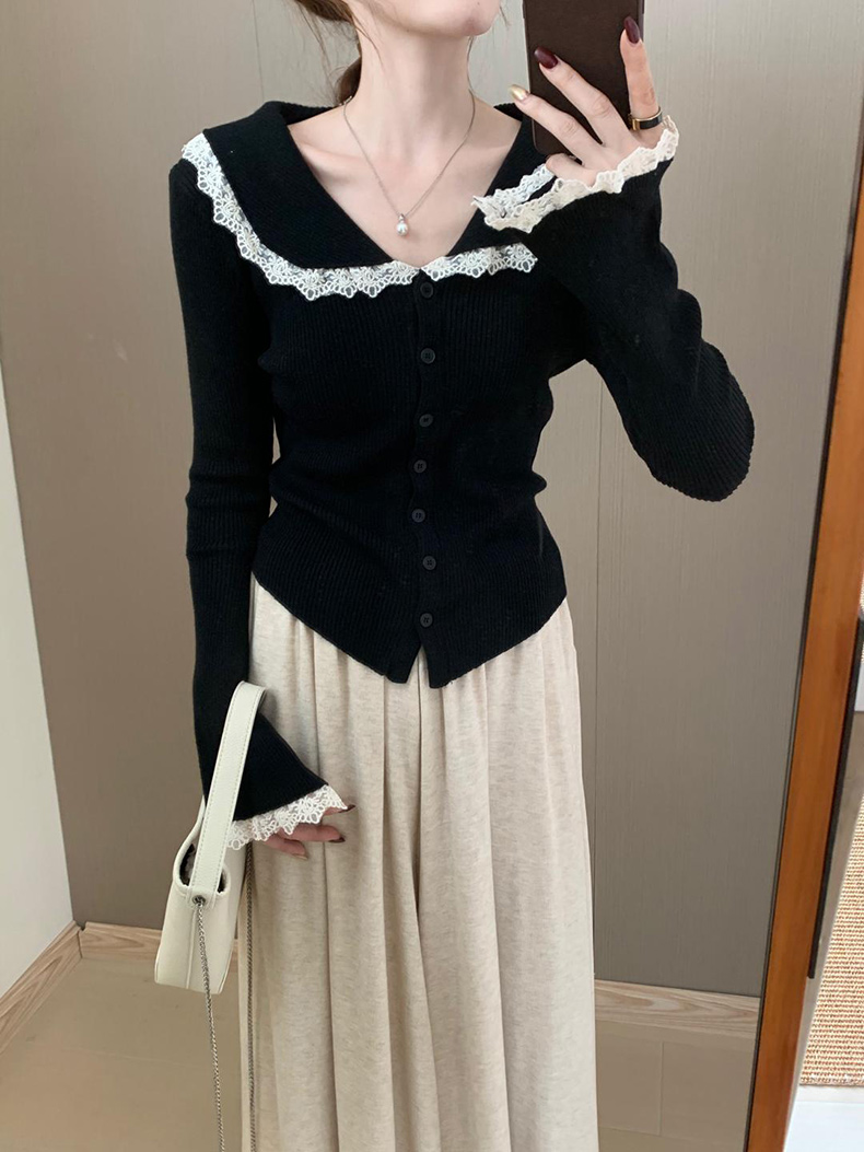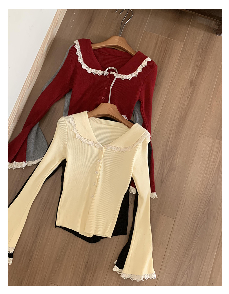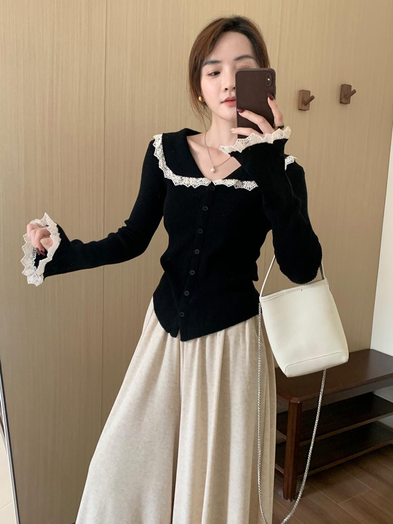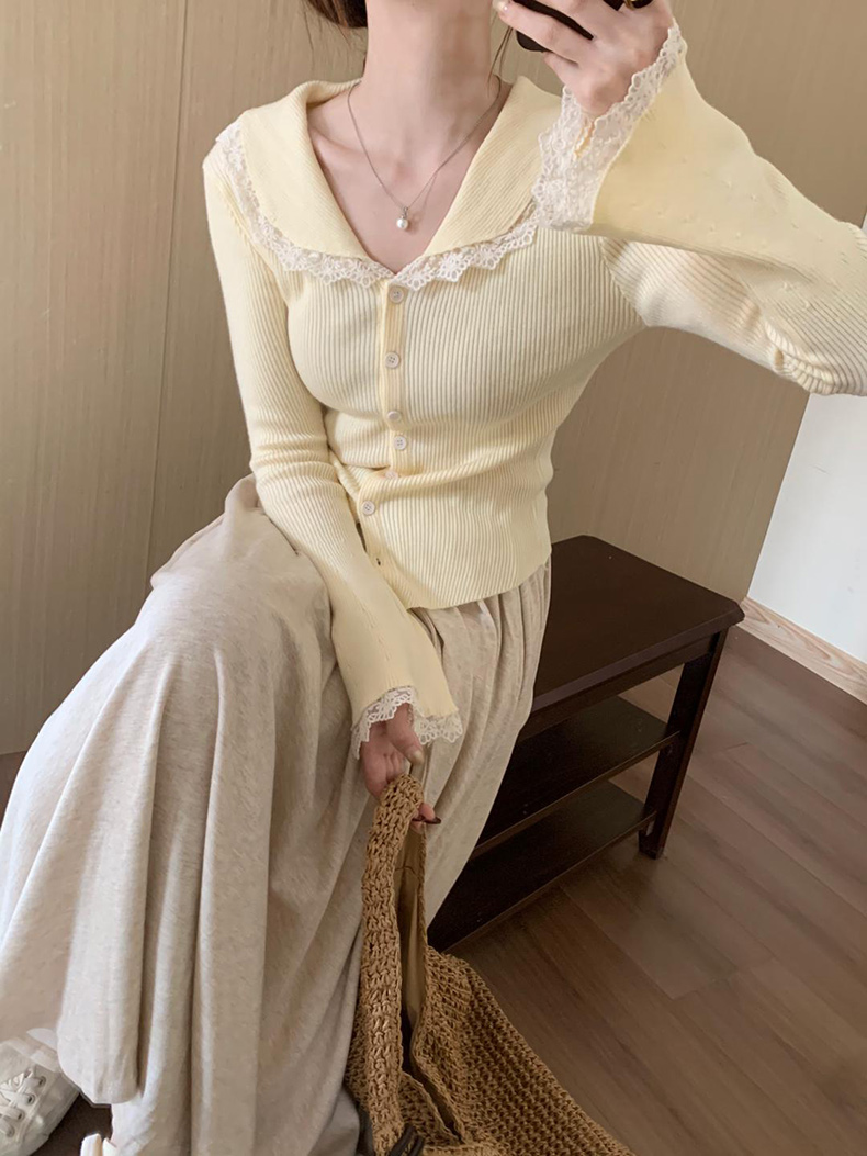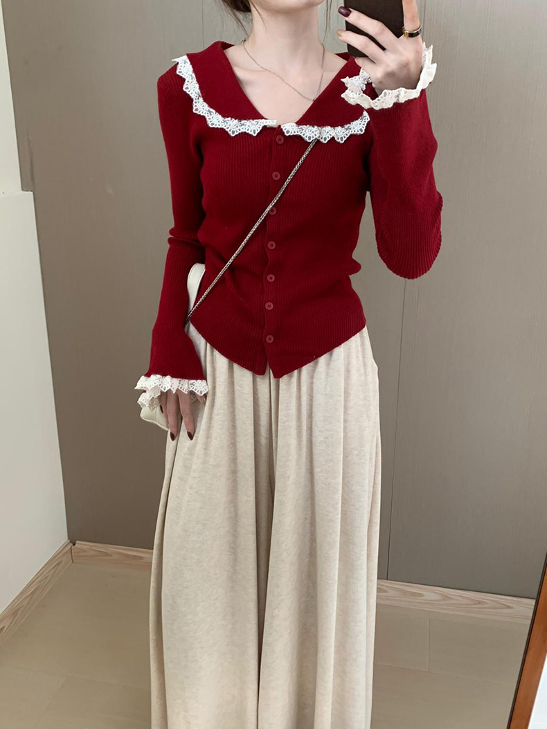 粉色针织开衫女娃娃领春秋冬内搭2025新款花边高级感毛衣打底上衣