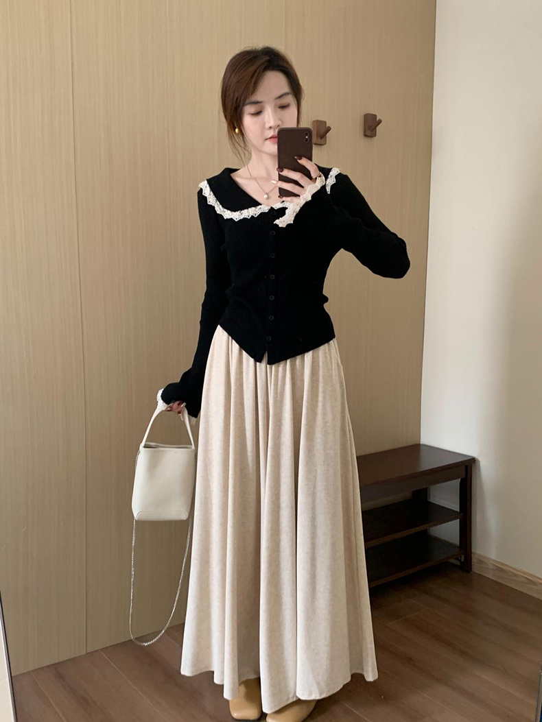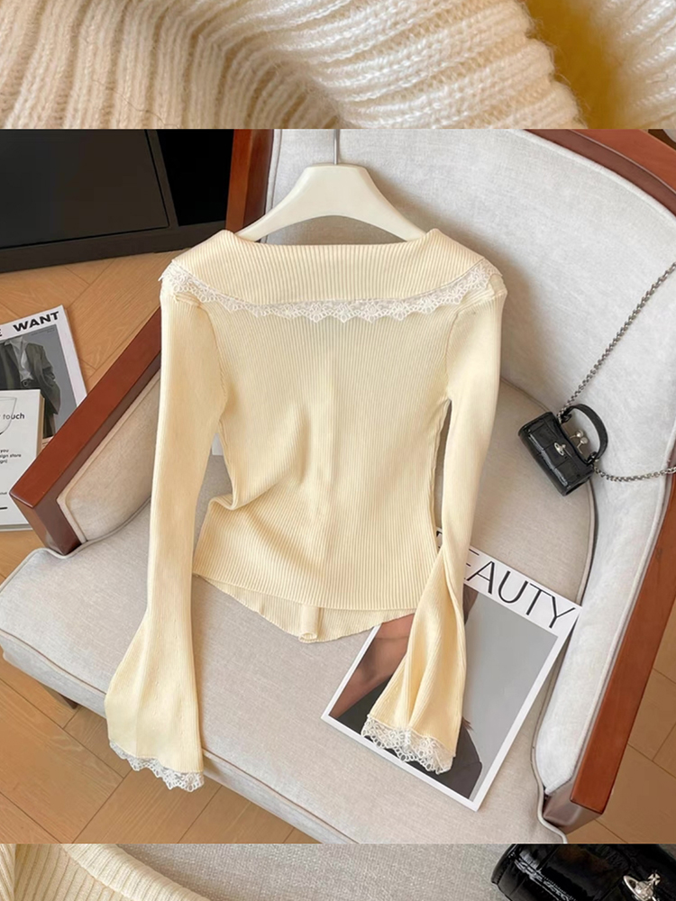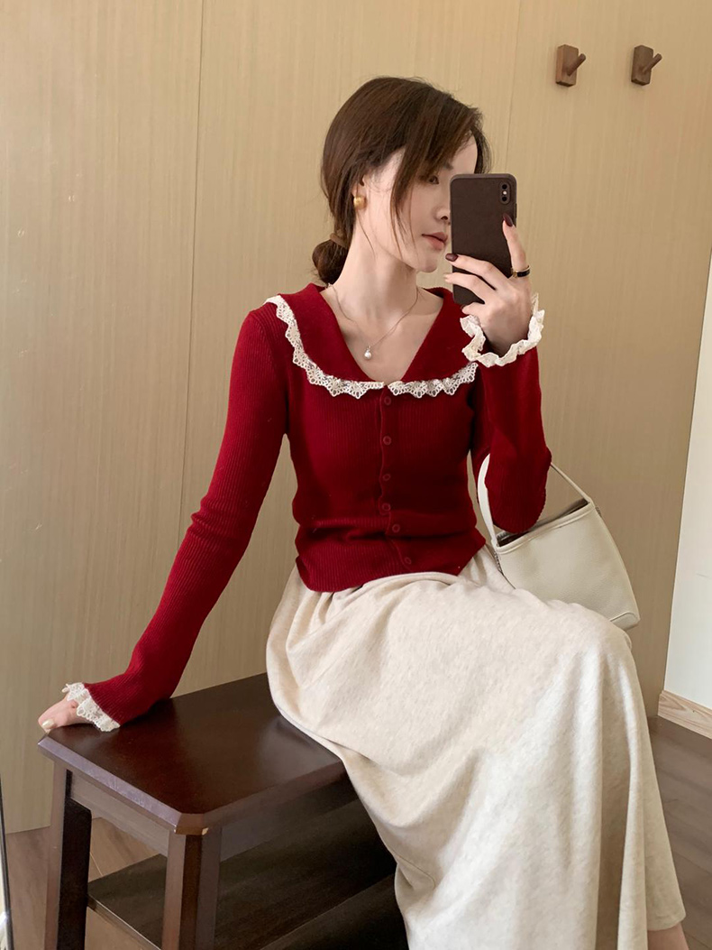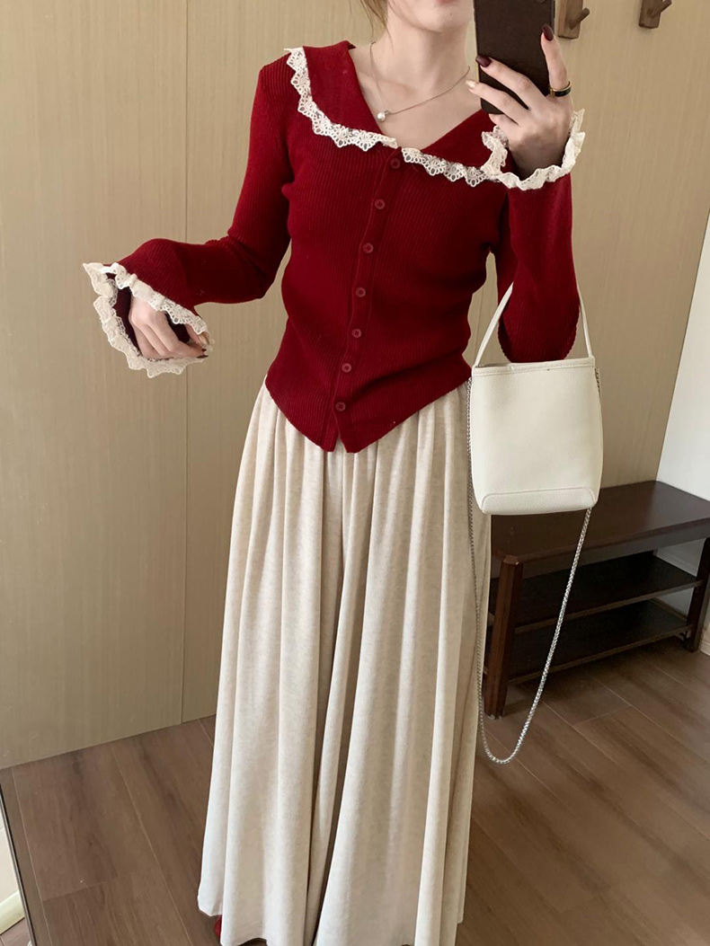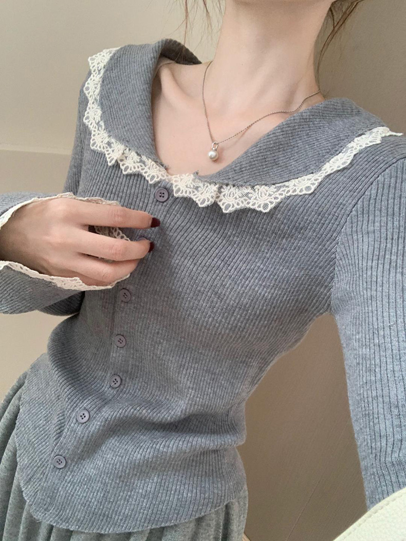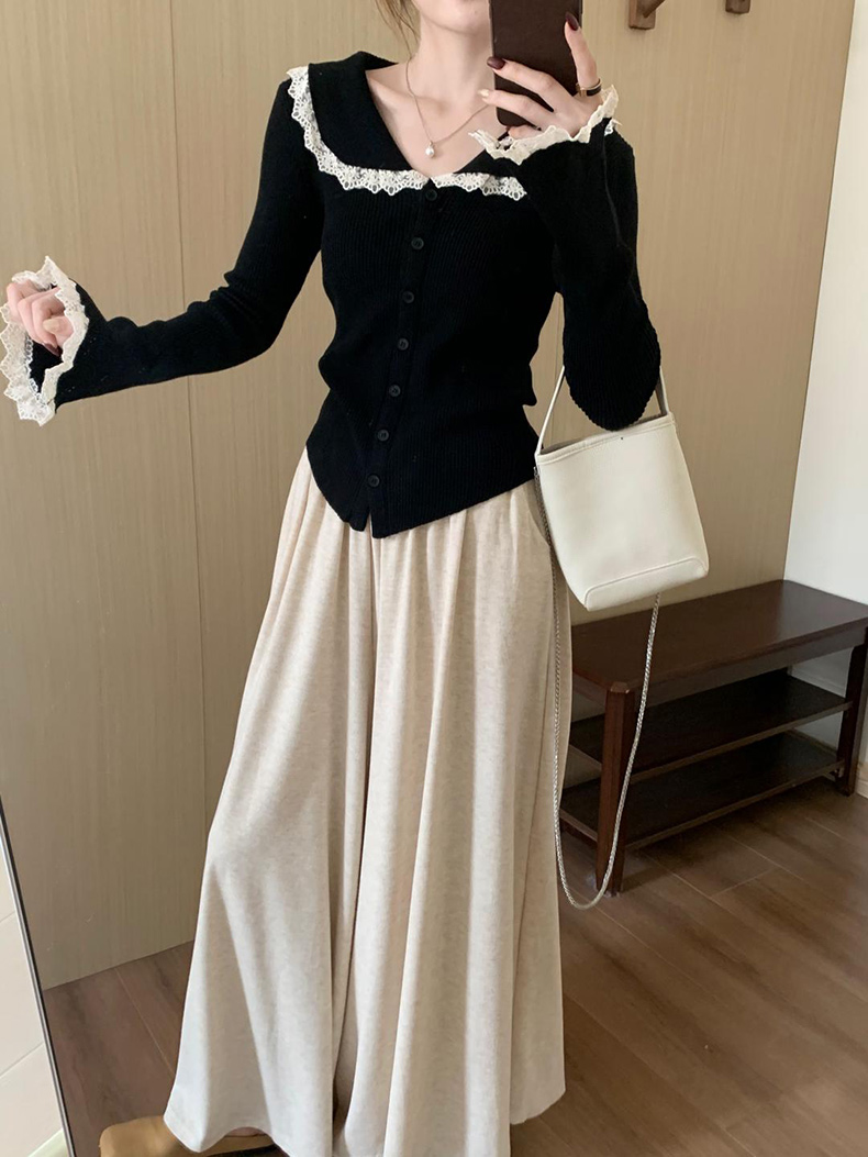 粉色针织开衫女娃娃领春秋冬内搭2025新款花边高级感毛衣打底上衣