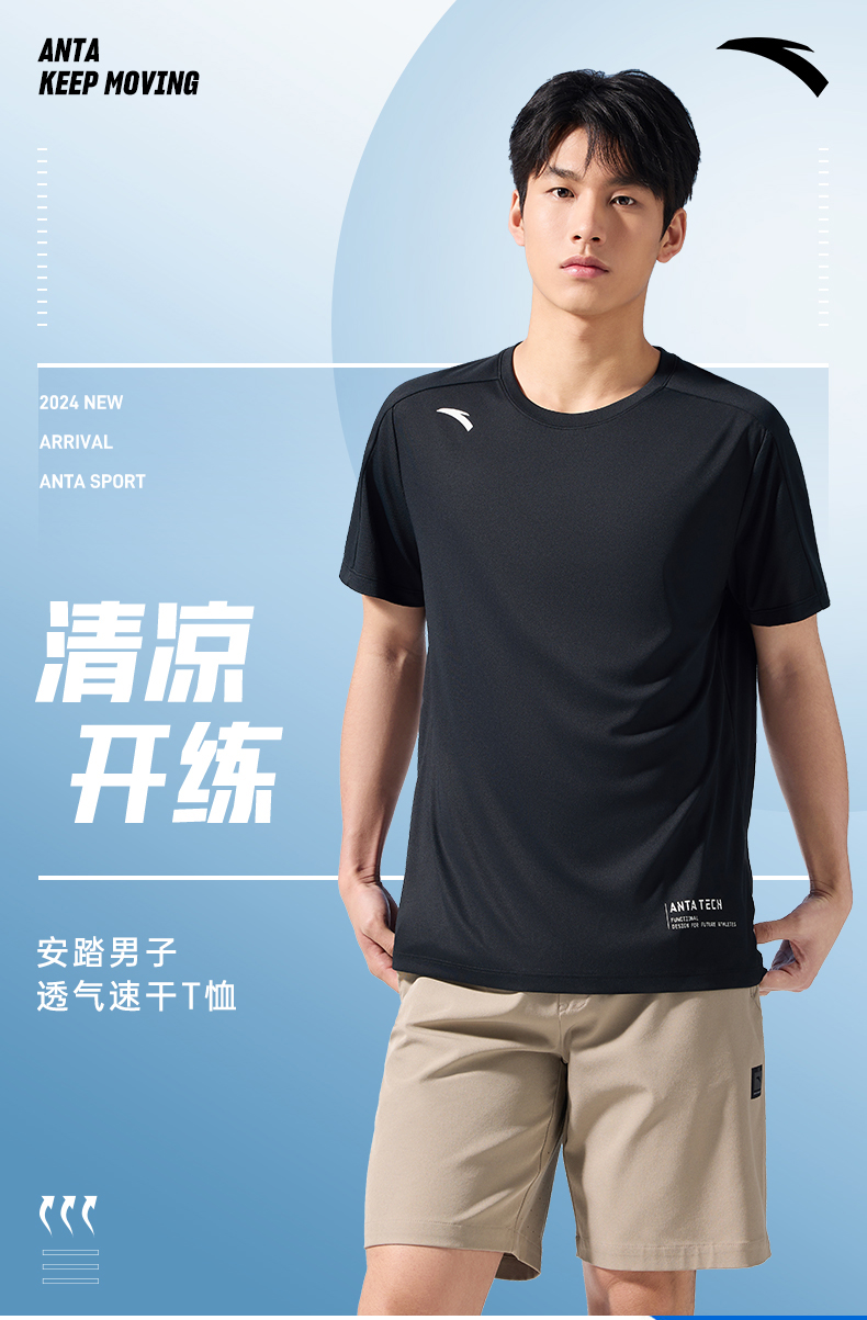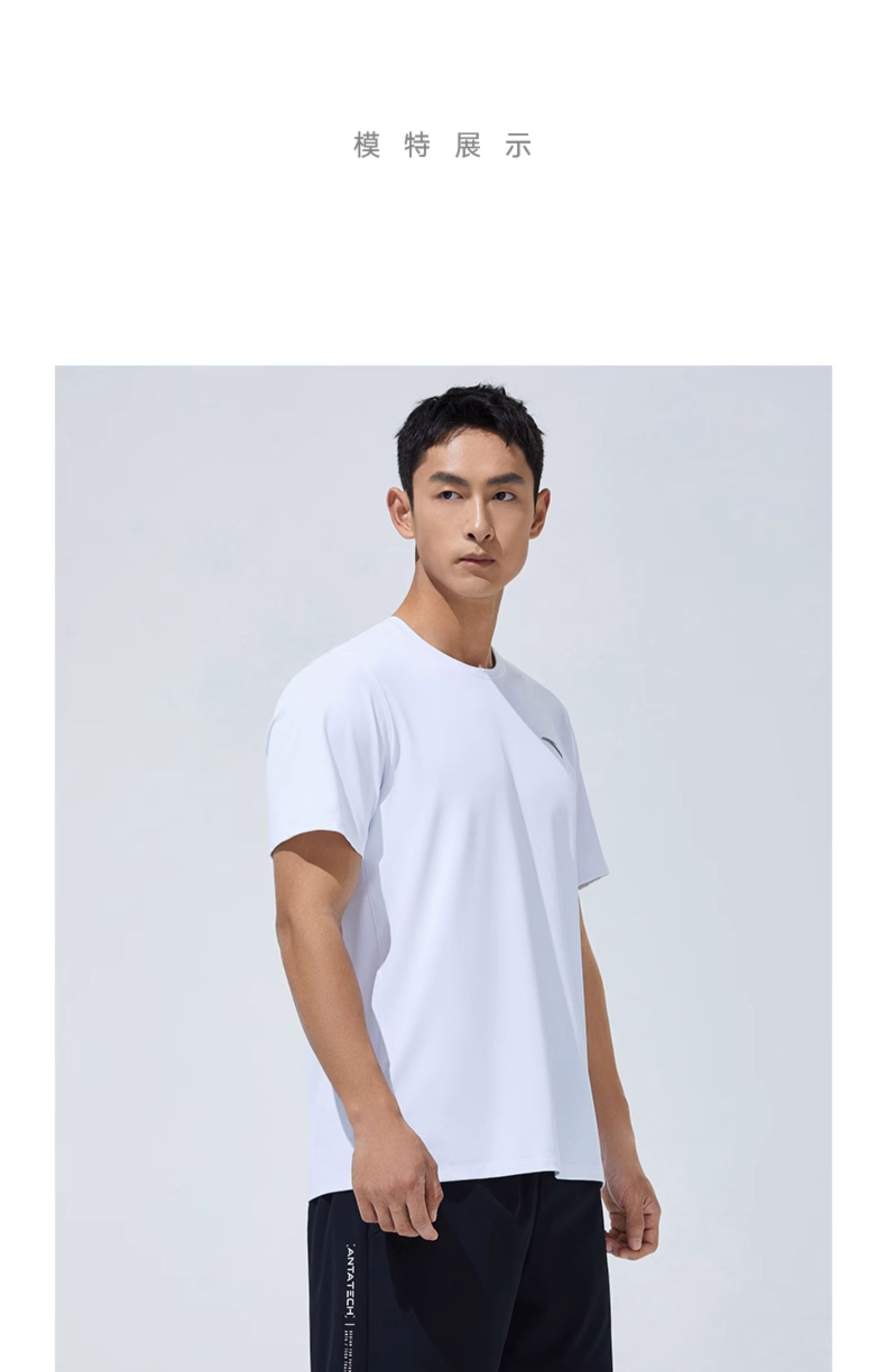 安踏短袖男款白色t恤衫2025夏季半截袖体恤休闲运动上衣男士纯棉t