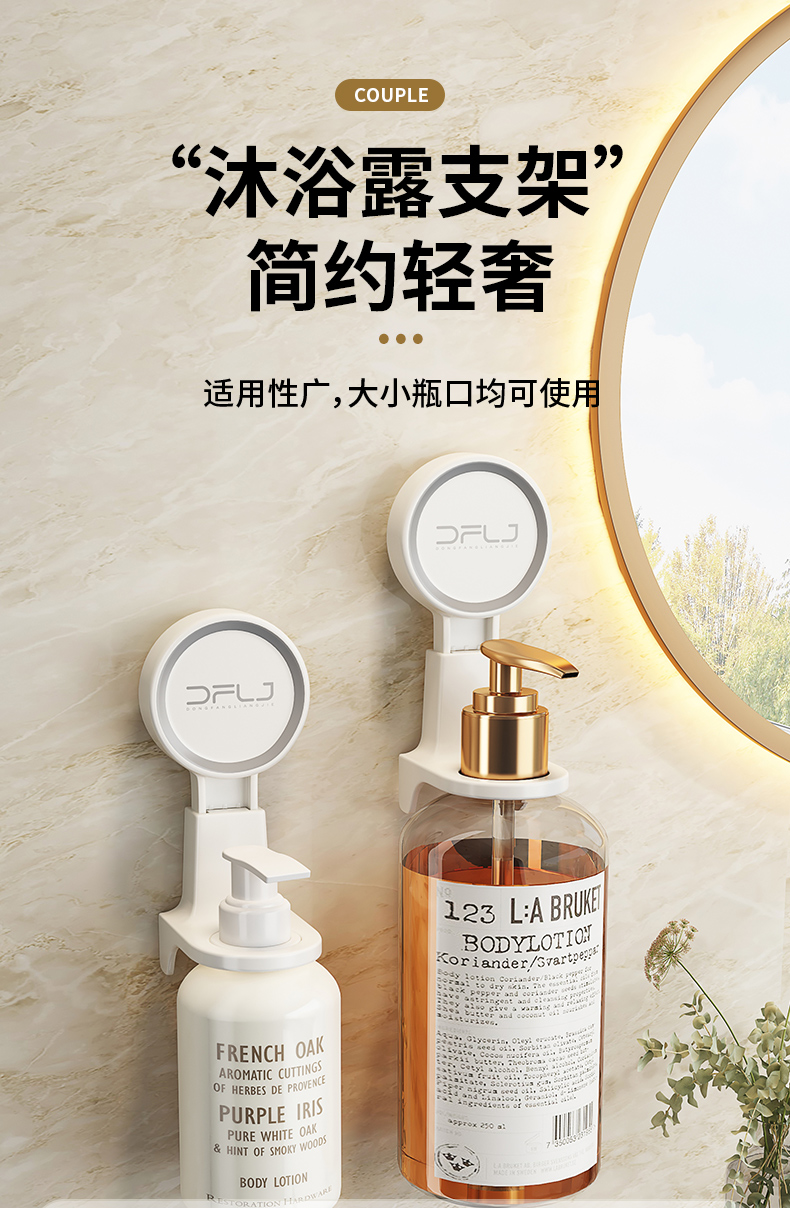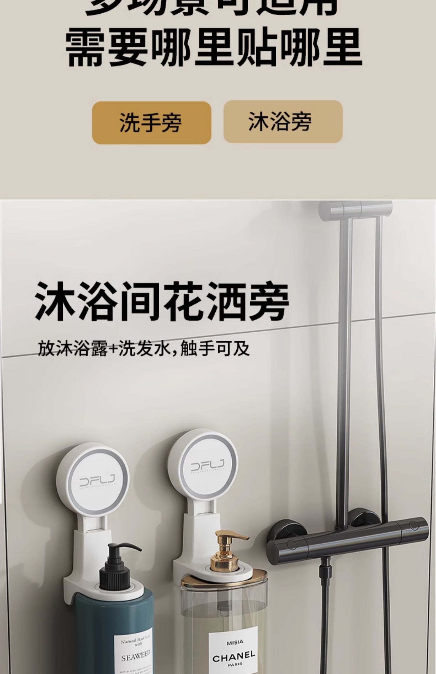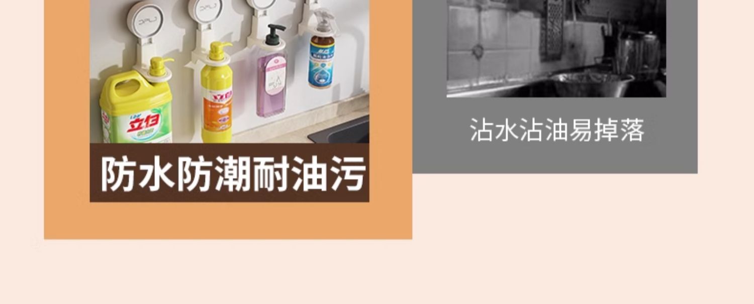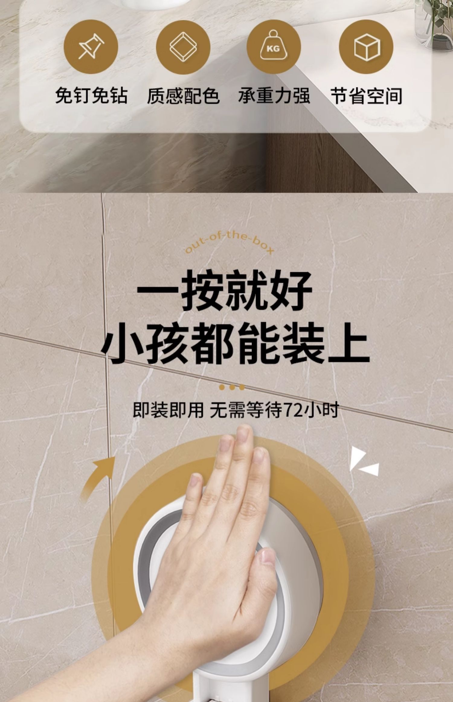 免打孔厨房卫生间挂瓶吸盘器浴室墙壁收纳挂钩沐浴露无痕置物架子