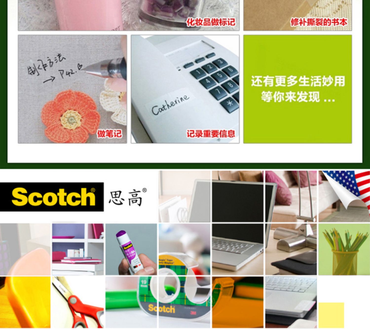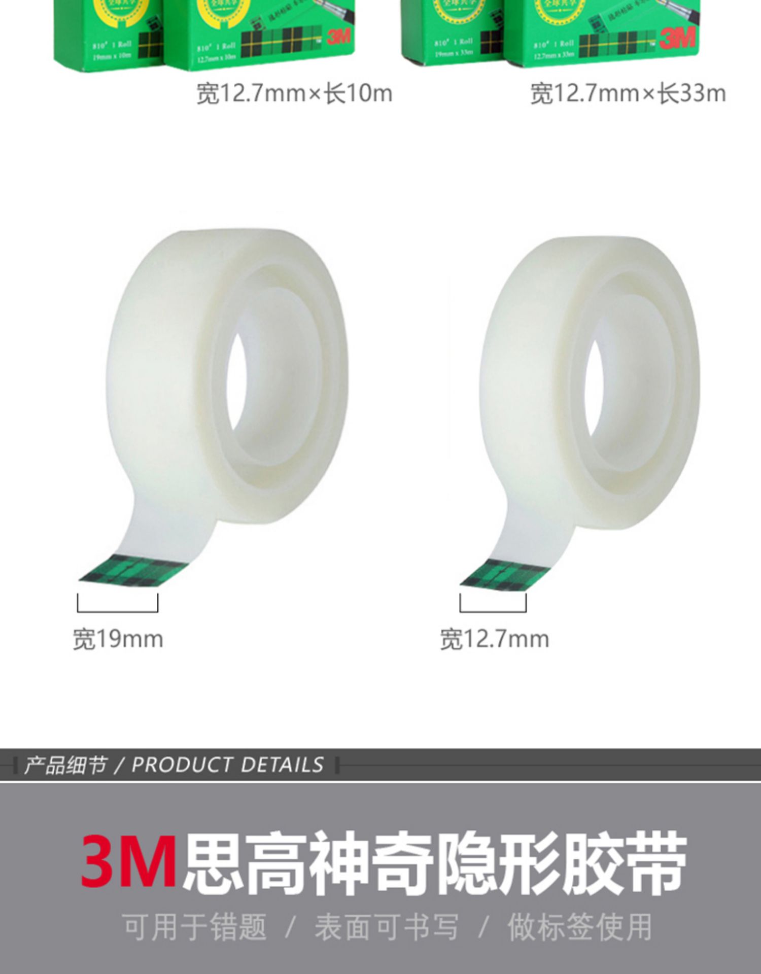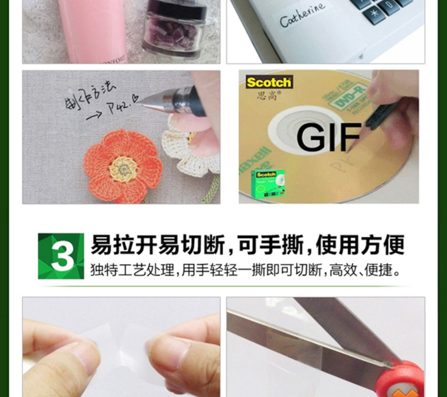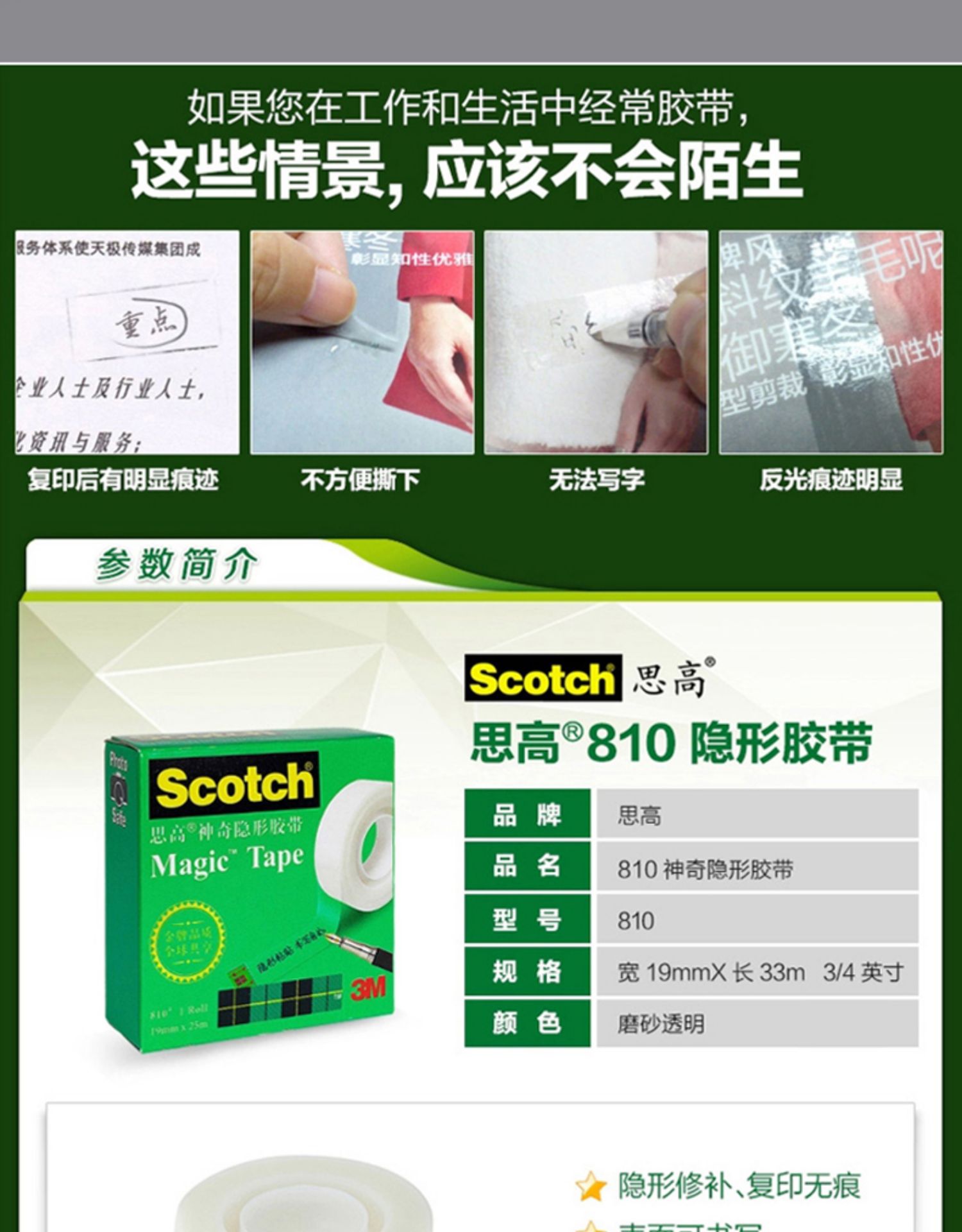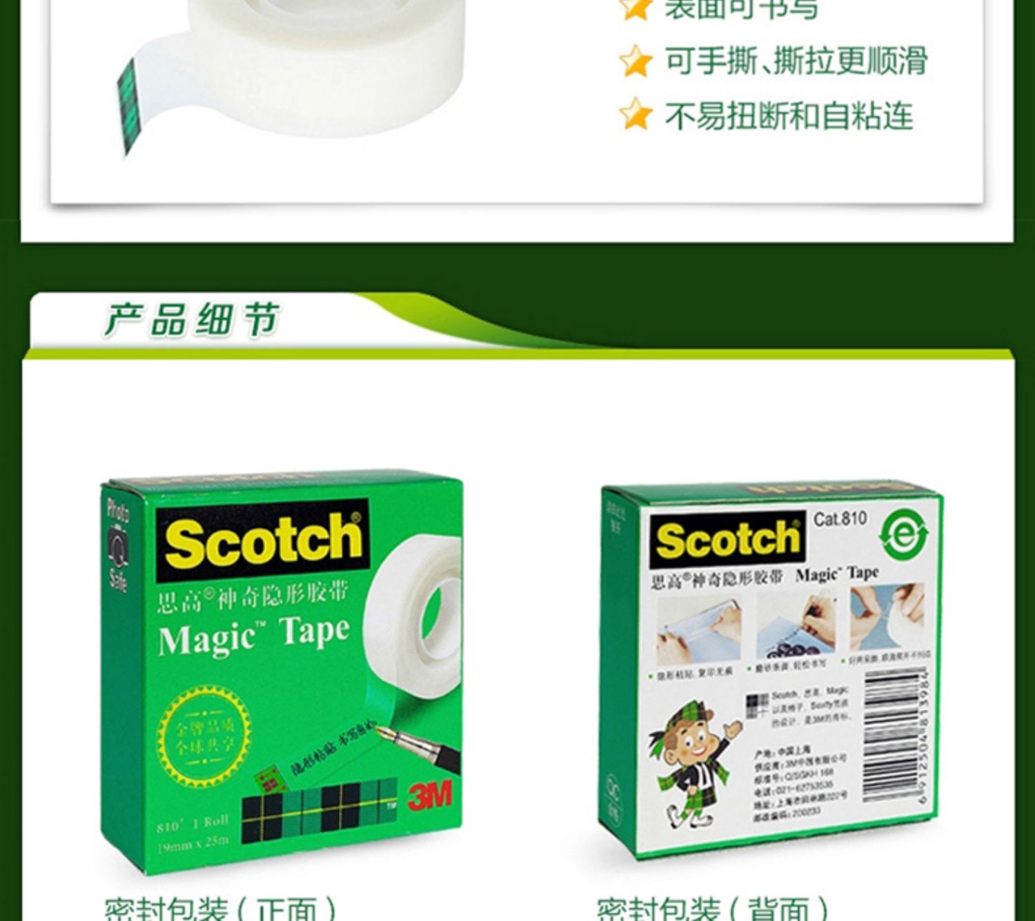 美国3M思高神奇隐形胶带810可书写可手撕胶带多用途透明胶带