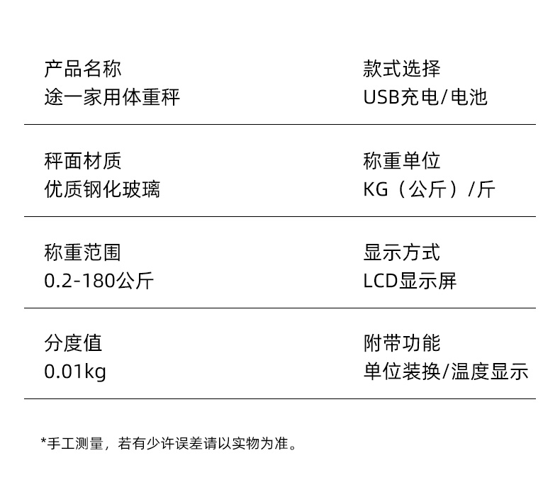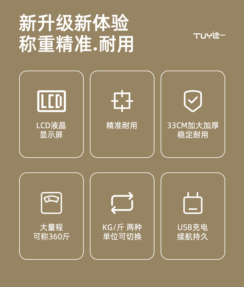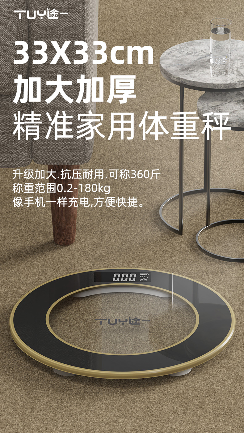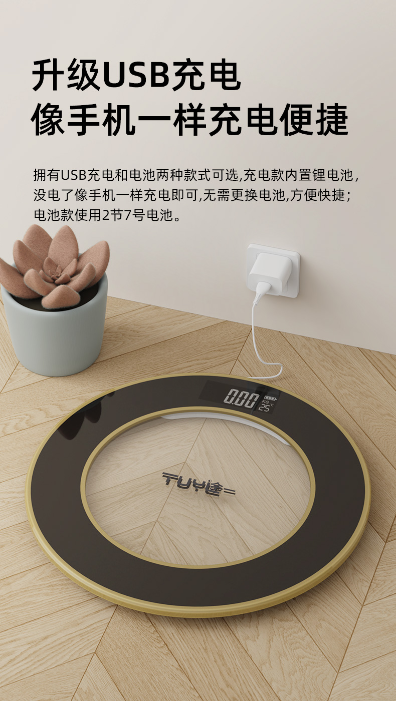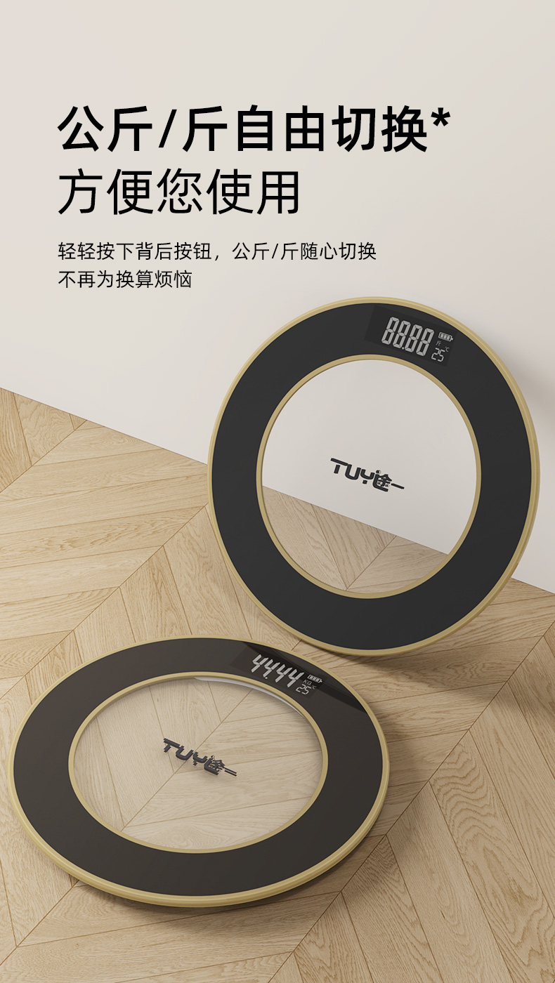 途一体重秤家用精准耐用小型充电电子称人体称重计升级加大电子秤