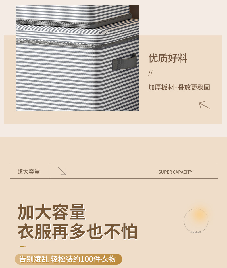 家用布艺衣服收纳箱可折叠衣物收纳盒衣柜整理箱大容量储物箱筐袋