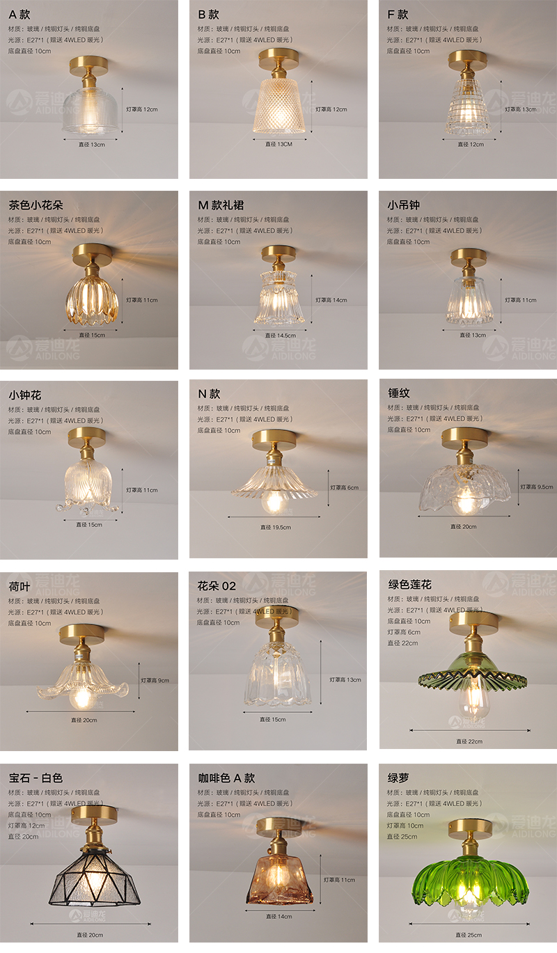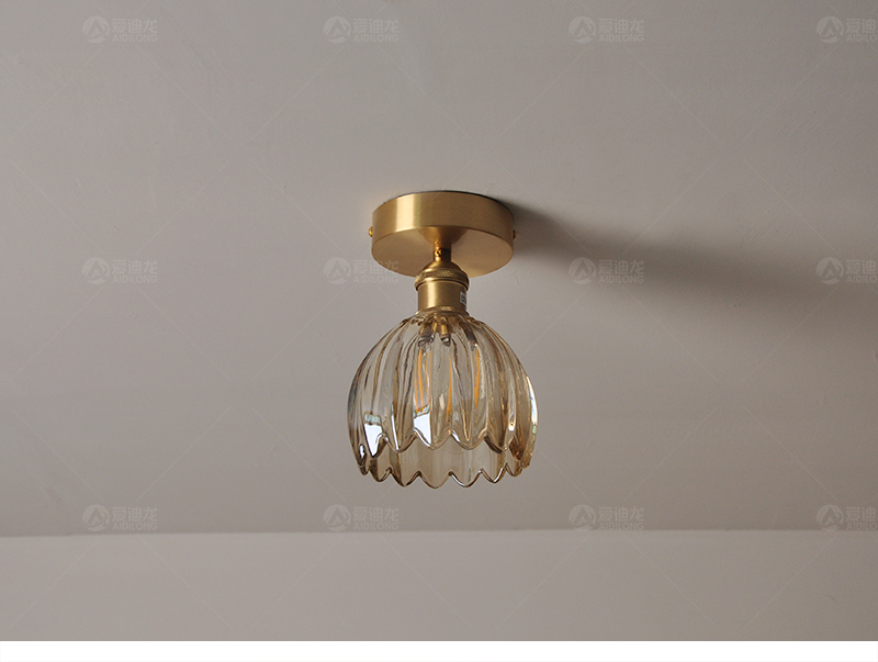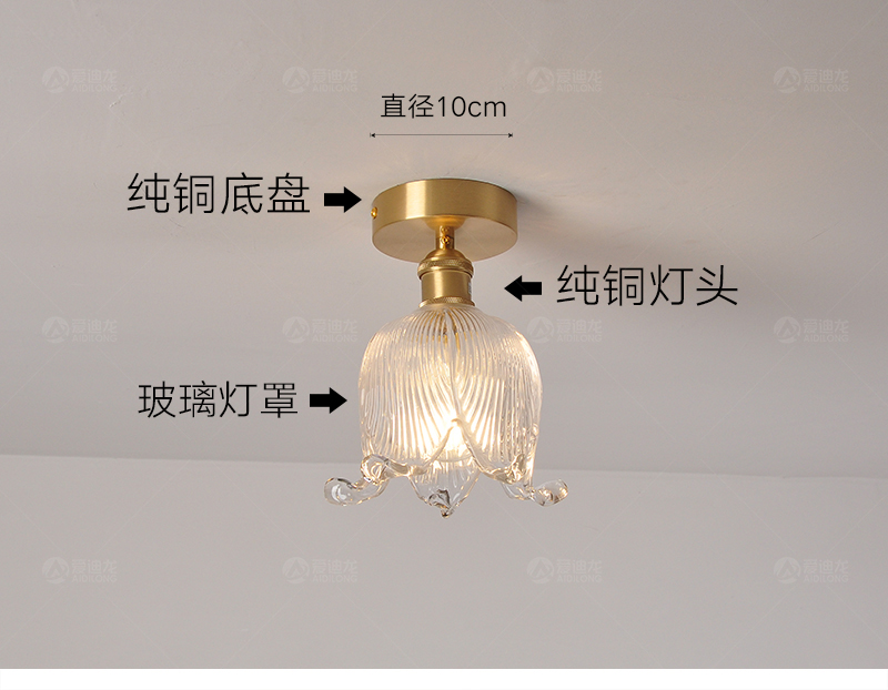 阳台灯走廊灯过道灯北欧现代简约玄关灯小房间卧室纯黄铜吸顶灯