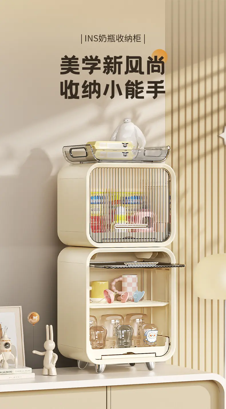 奶瓶收纳架婴儿桌上卧室家用沥水架宝宝餐具多功能杯子防尘置物柜