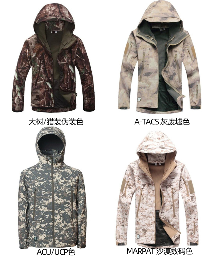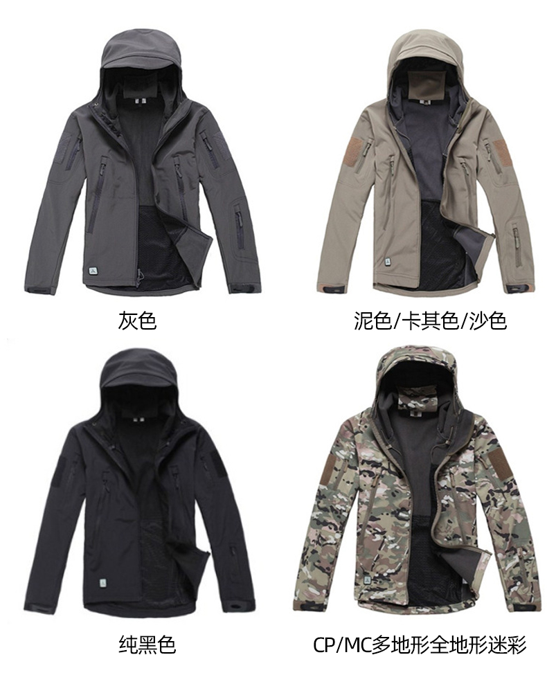 鲨鱼软壳风衣战术冲锋衣 防泼水国产抓绒防寒保暖抗风TAD风格外套